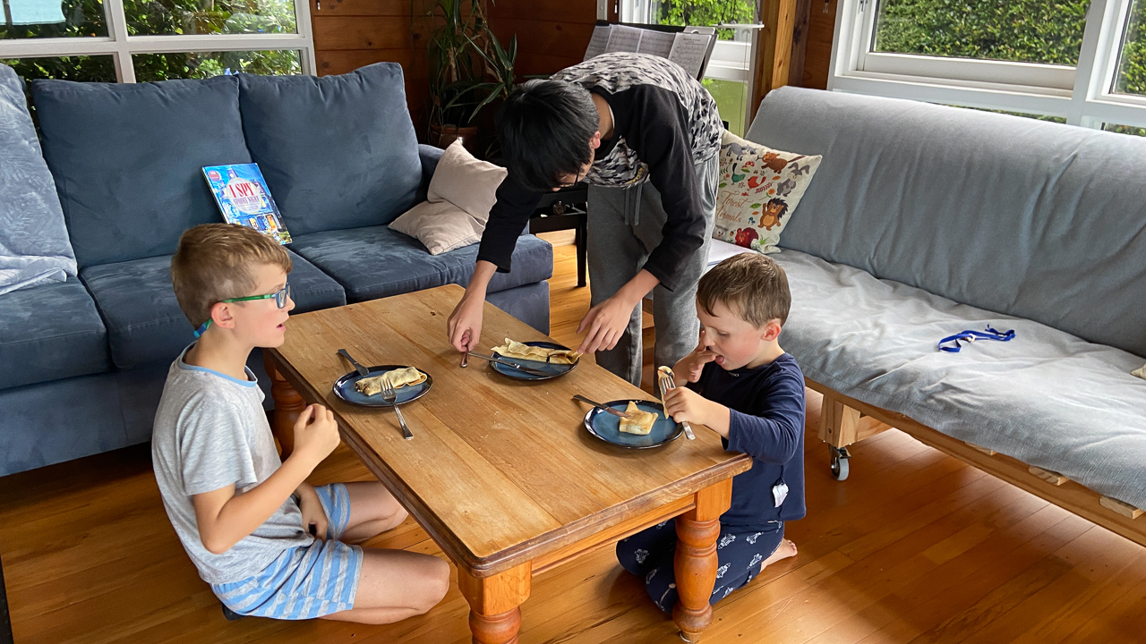 68. Soiree crepes: c'est un sejour franco-kiwi pour notre etudiant Japonais