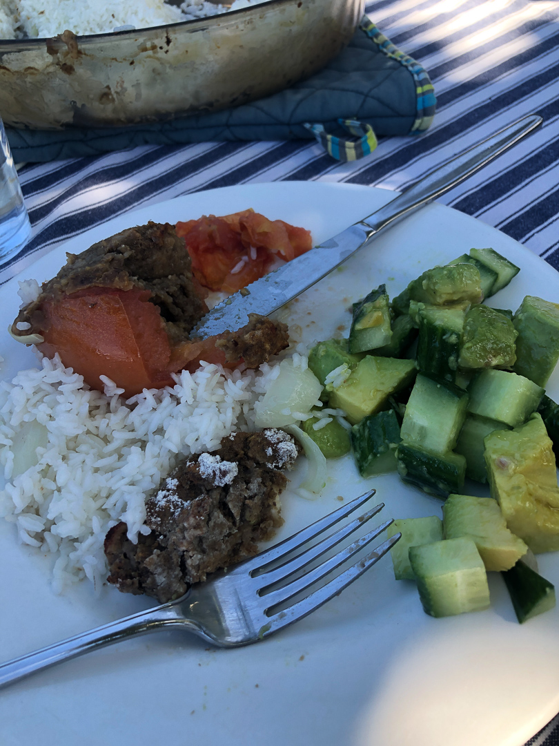 95. Nous avons ete invites par Aline a diner chez elle. Ryota s'est joint a nous, et elle a choisi de faire un repas typiquement francais: gratin dauphinois avec roti de boeuf!