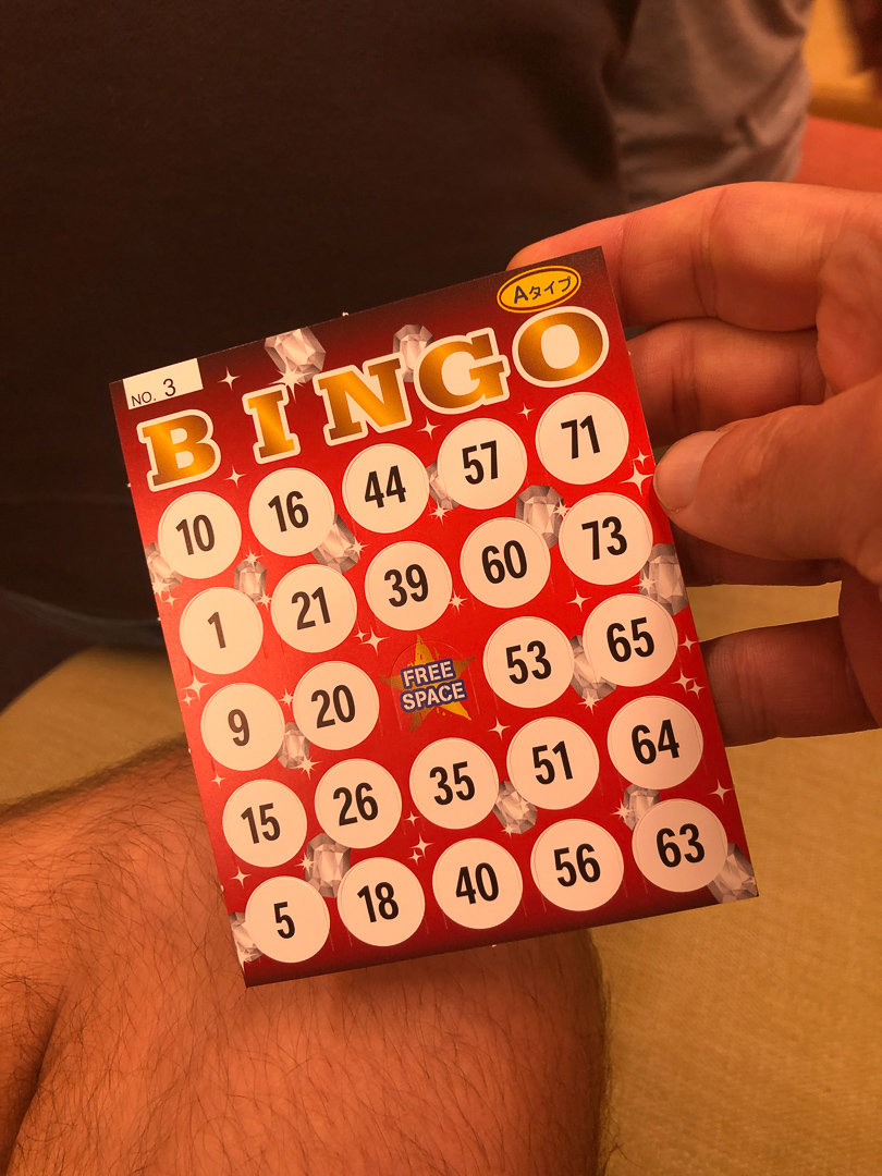 99. Puis les etudiants nous ont organise une seance de Bingo. Tout le monde gagnera un prix: un petit objet du Japon.