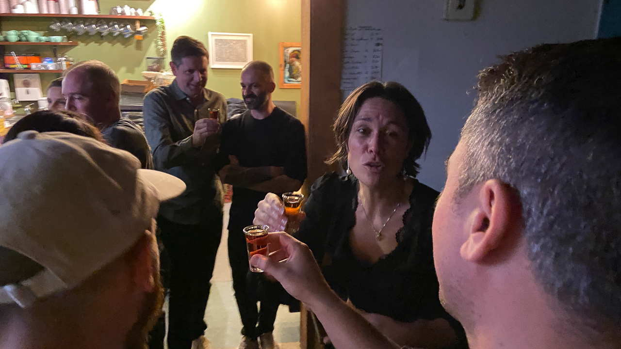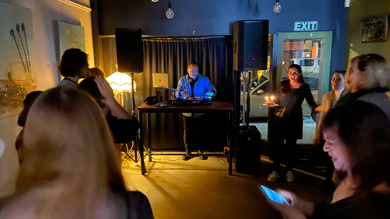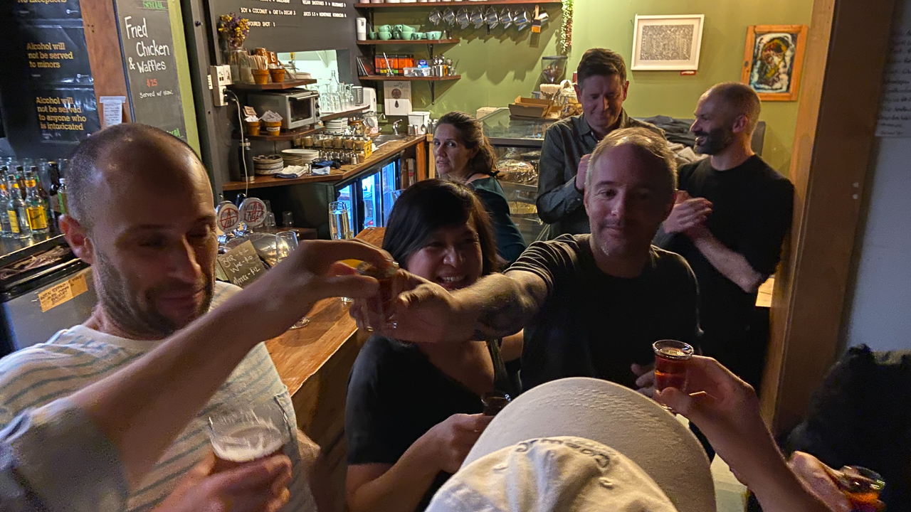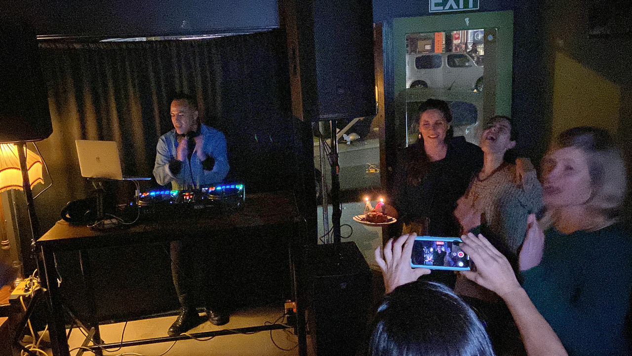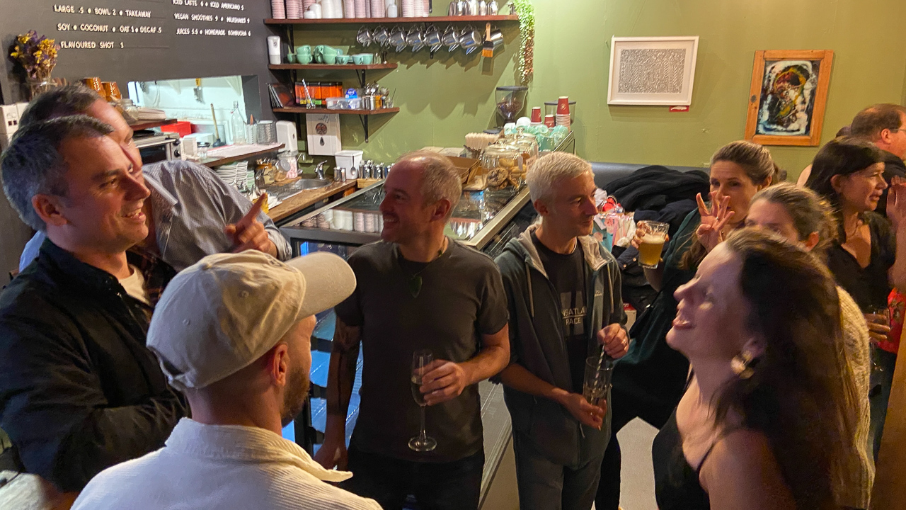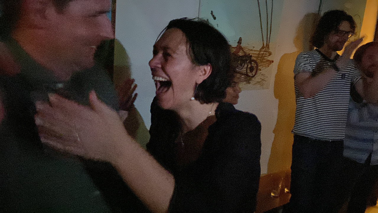 Amelie a 40 ans et elle a organise une soiree pour feter l'evenement. Et la, miracle: tous les adultes du groupe d'ami.e.s a accepte l'invitation! On s'est donc toutes et tous retrouves, sans enfant, au Baobab cafe, un samedi soir, pour une soiree reminiscente des soirees etudiantes. L'ambiance et l'humeur, en tout cas, etaient la!