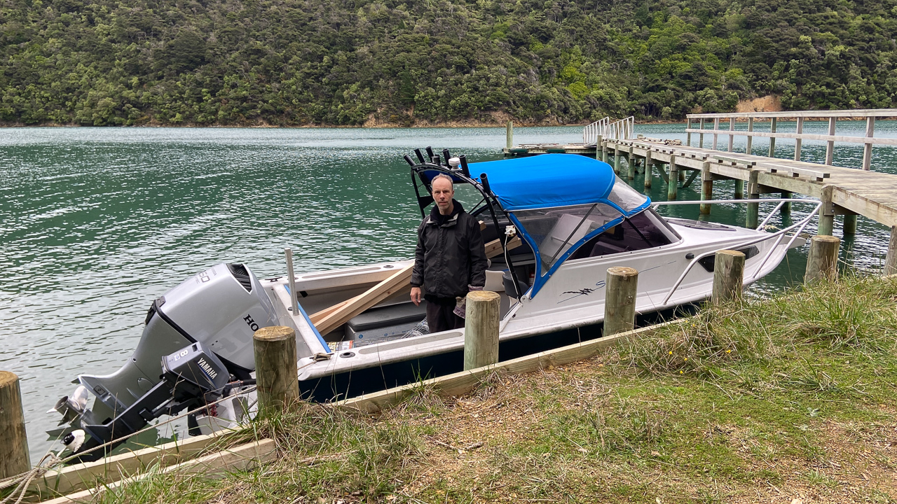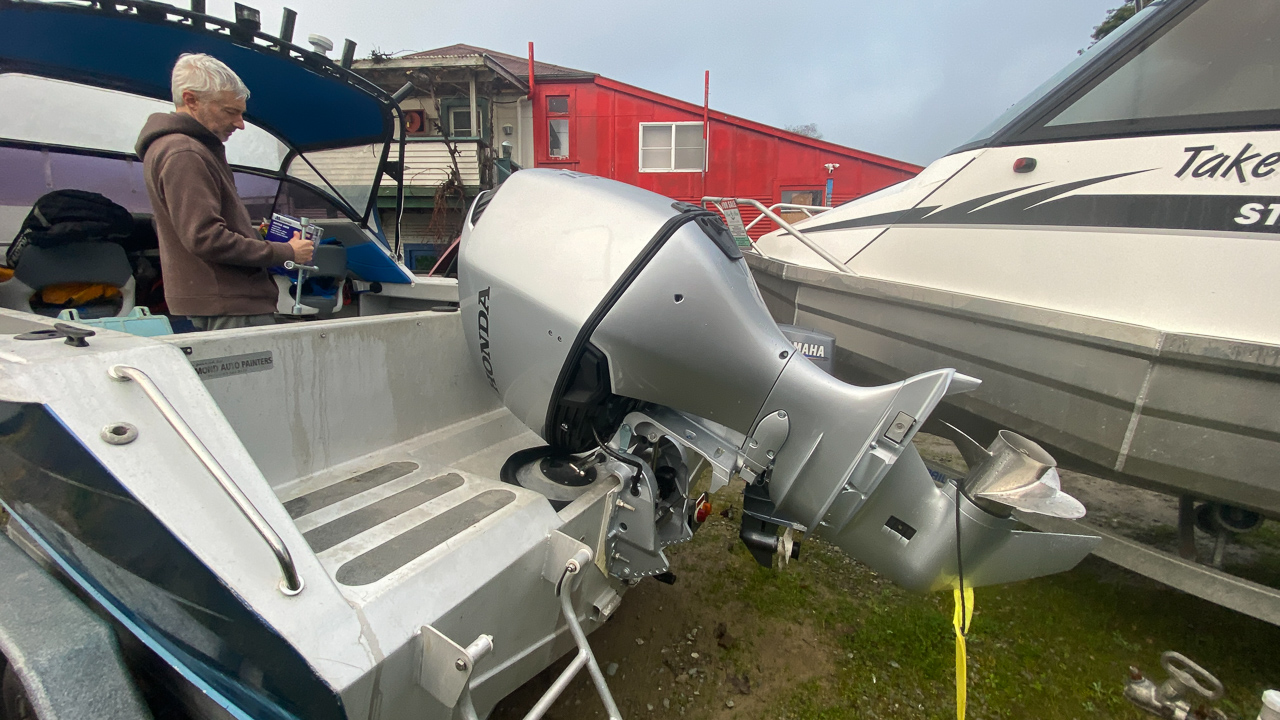 3. Notre tout nouveau moteur, un 4 temps, qui va nous permettre de traverser French Pass avec plus de securite, de confort, et en consommant moitie moins d'essence!