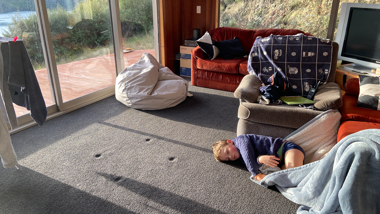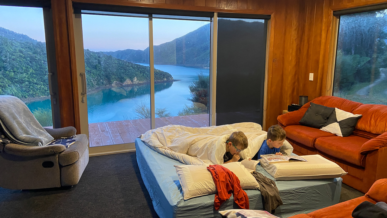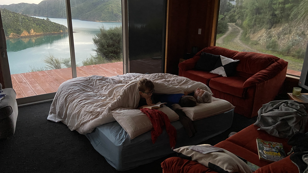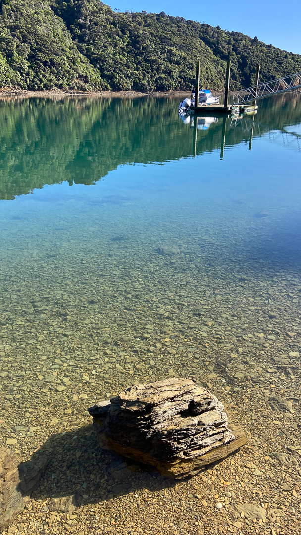 Notre d'Urville nous manquait: nous n'etions pas venus depuis Avril! Aussi, l'impatience etait a son comble, et nous sommes partis des qu'une fenetre meteo nous a ete offerte, a minuit, de Wellington. Au programme: recentrage (de l'esprit), travail, retrouvailles en famille, nature et quelques menus travaux.