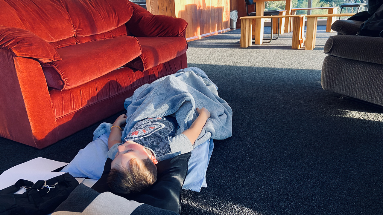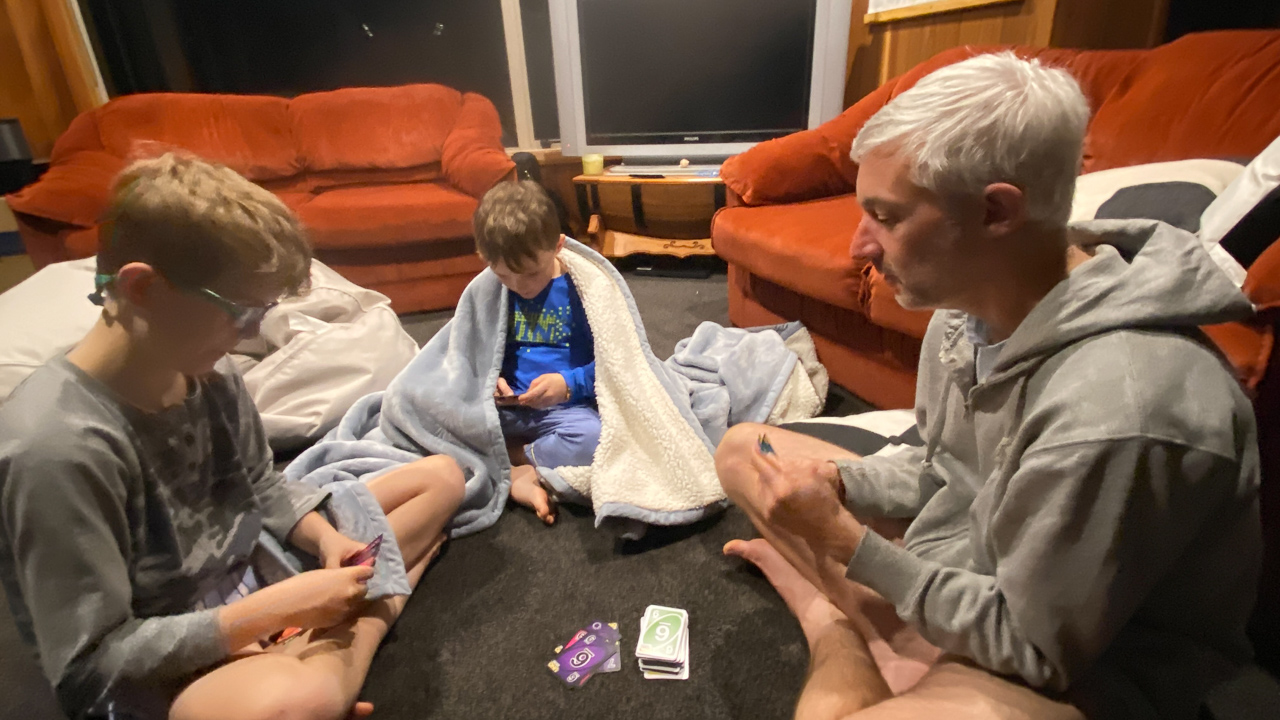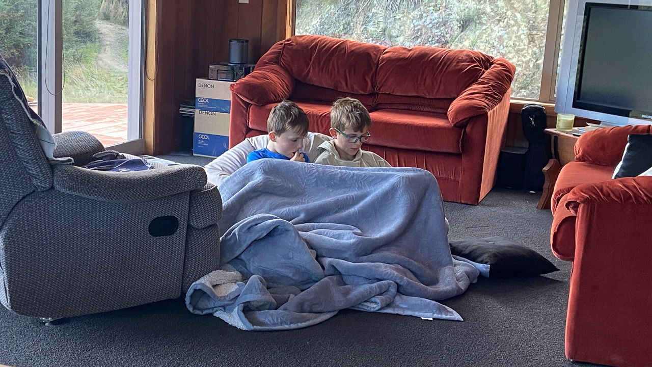 42. Apres le petit-dejeuner, les garcons s'installent au chaud avec l'iPad et jouent pendant une heure, une routine qu'ils adorent.