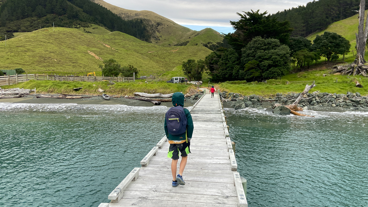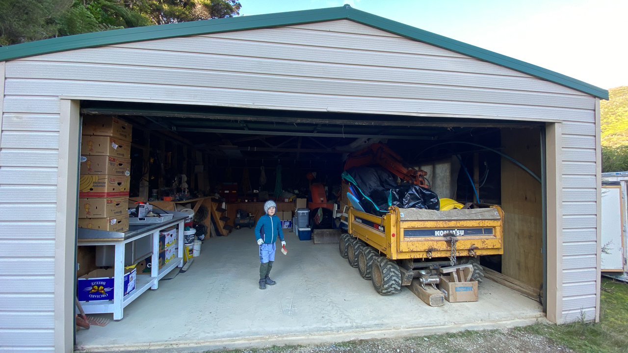 141. Le jour du depart est un peu precipite: on essaye de saisir une fenetre meteo qui nous semble praticable (ici, et a Nelson, comme nous a renseigne Graeme). Alors on ferme la maison super vite, aides par la remorque: grace a elle, on ne fera qu'un voyage pour tout descendre au bateau, plutot que trois ou quatre. Le gain d'efficacite est incroyable! Finalement, on arrivera a rejoindre Okiwi Bay, subissant peu de vent mais une houle solide de 1.5 metres environ. Le soir, nous avons meme pu rejoindre directement Wellington. Un choc pour Adan, qui l'exprime haut et fort, mais un sentiment partage par tous.