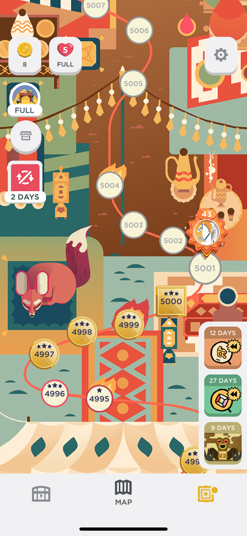 49. Voila. J'ai atteint le niveau 5000 de Two Dots, apres 6 annees a y jouer. J'ai decide de m'arreter la, et d'effacer le jeu apres ce niveau.