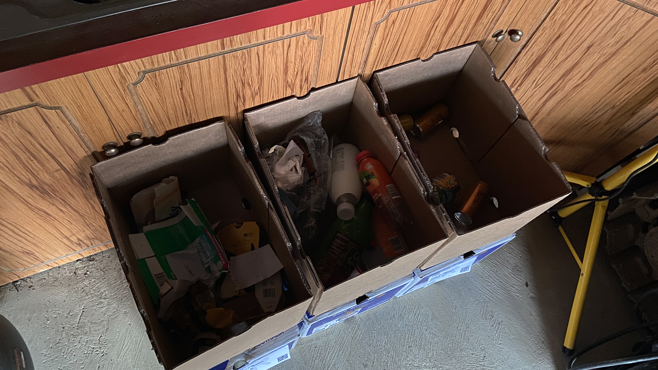51. Nos poubelles de recyclage: et ouais, on est sur une ile, mais on trie quand meme!
