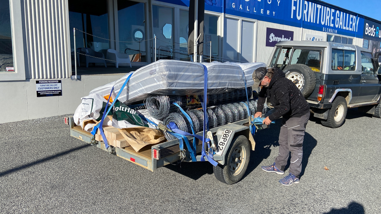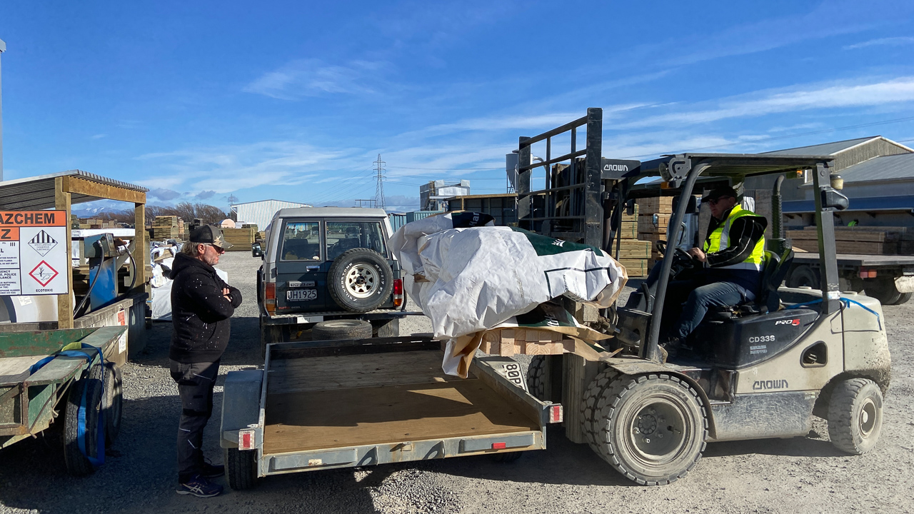 65. Arrives a Blenheim vers 11h (j'ai quitte la maison a 6h), on prend livraison du bois ...