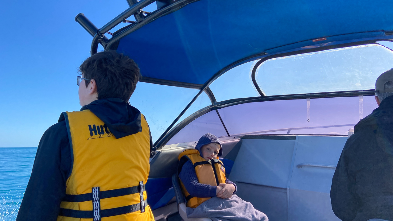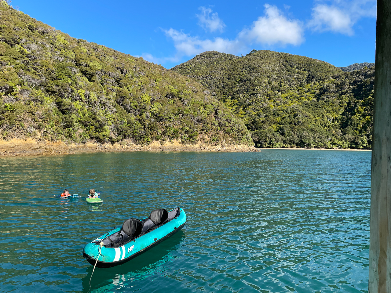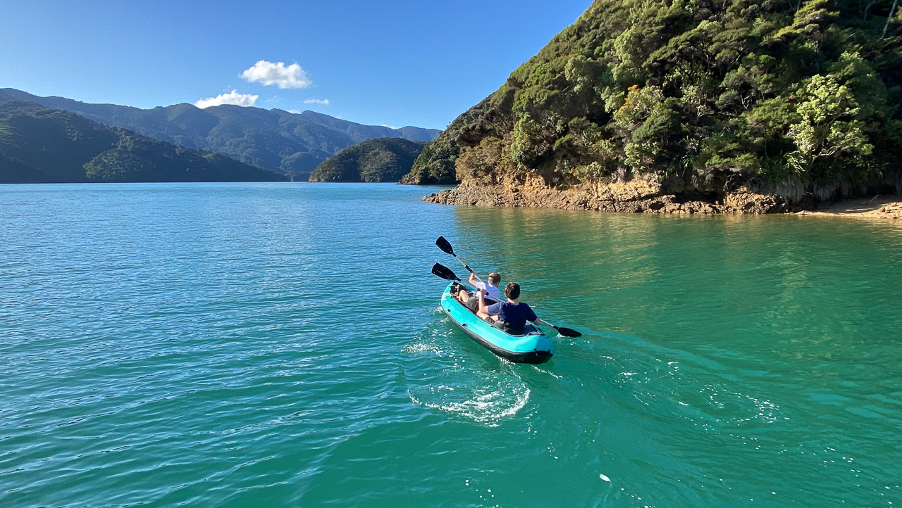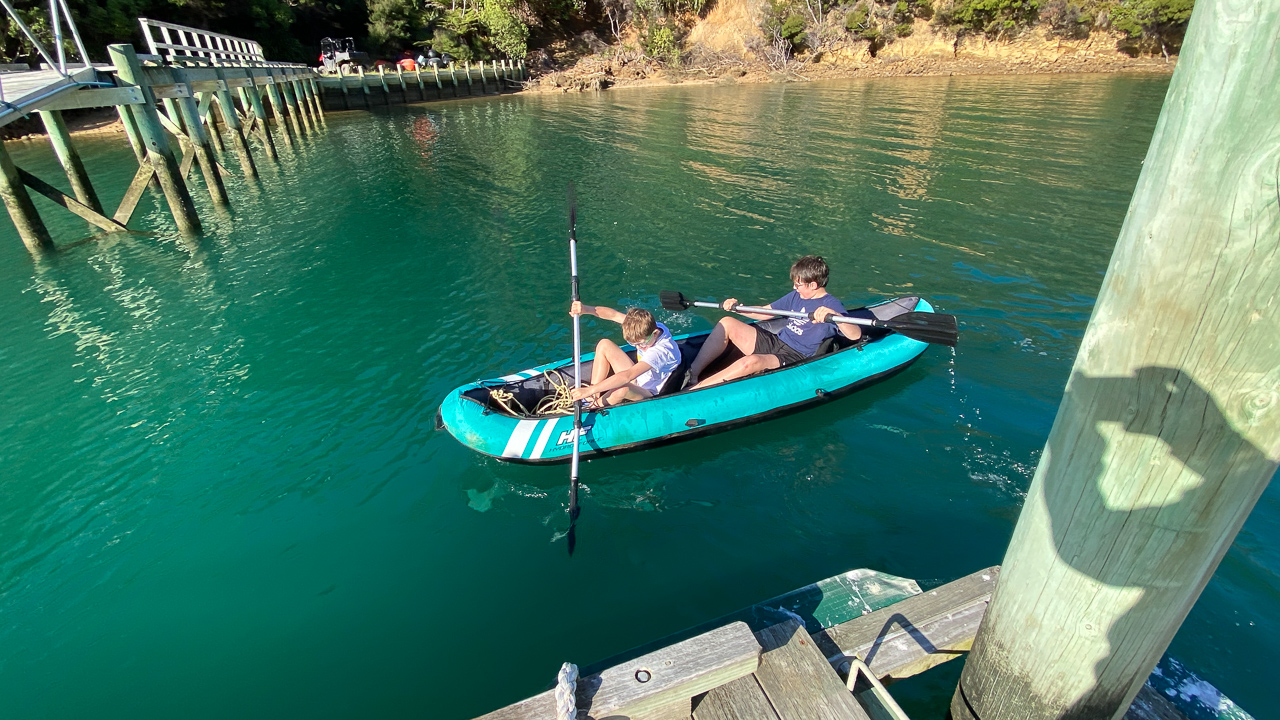 64. Lucas, Cosmo et moi partons rejoindre la plage en kayak.