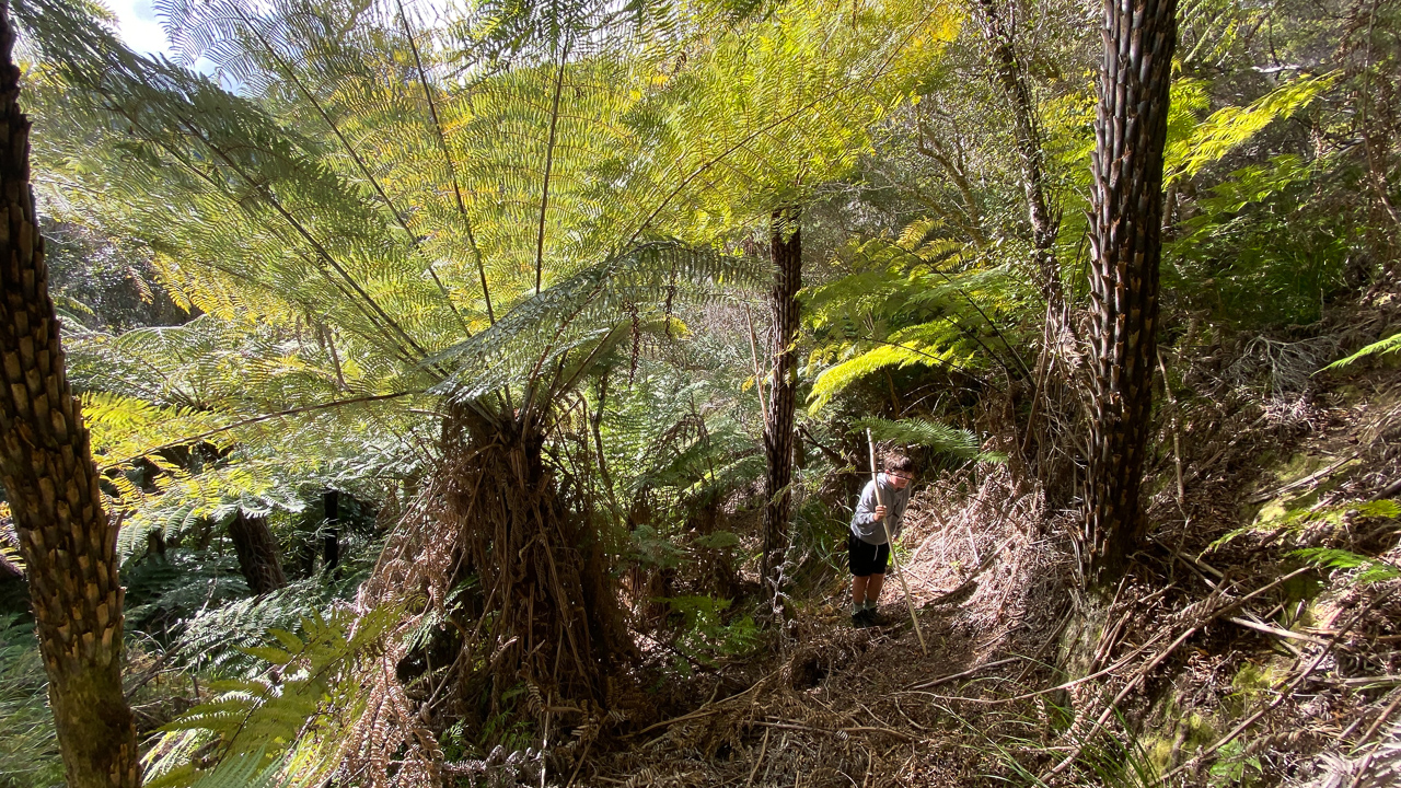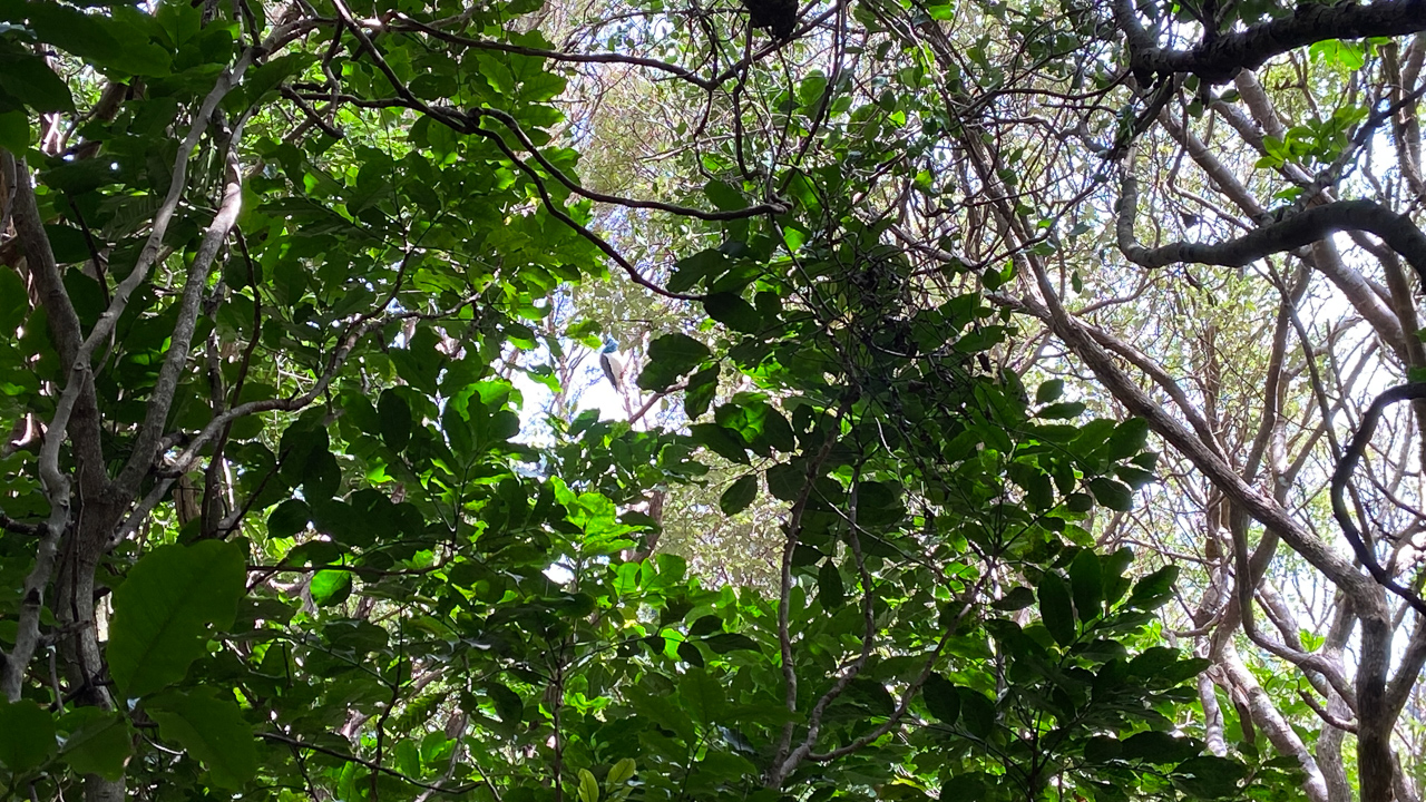 39. Je me suis enfoui dans la foret et allong sur un tronc couche. Au travers d'un trou de la canopee, un kereru se remplit la panse.