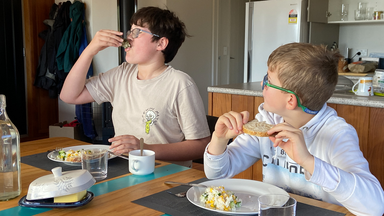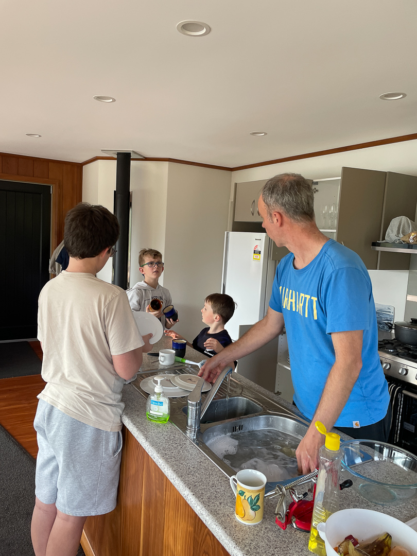 57. Cette fois ci, les deux grands ont ete bien briefes: ils vont devoir aider! Ici, en train d'essuyer la vaisselle.