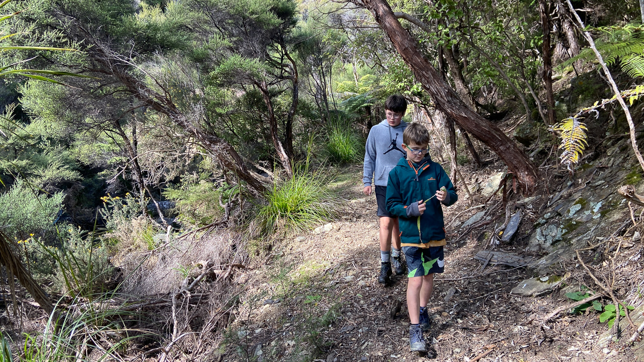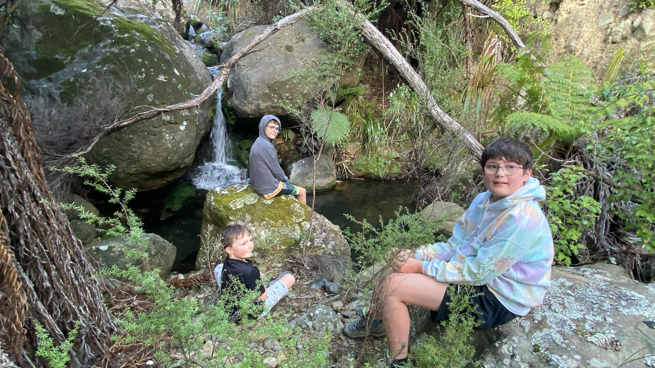 90. J'emmene les deux grands a Little Spring Creek pour leur donner un peu d'air. C'est un petit defi pour Lucas, mais on en revient ravis.