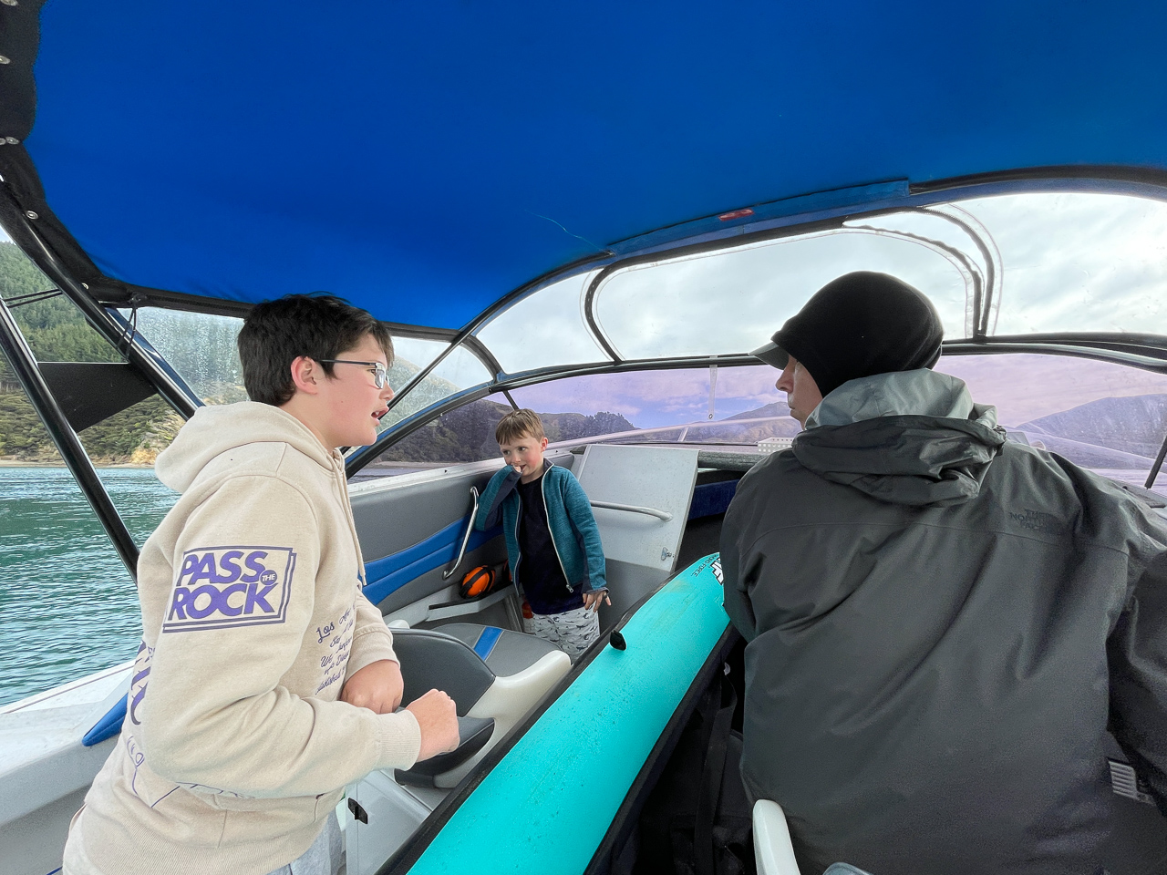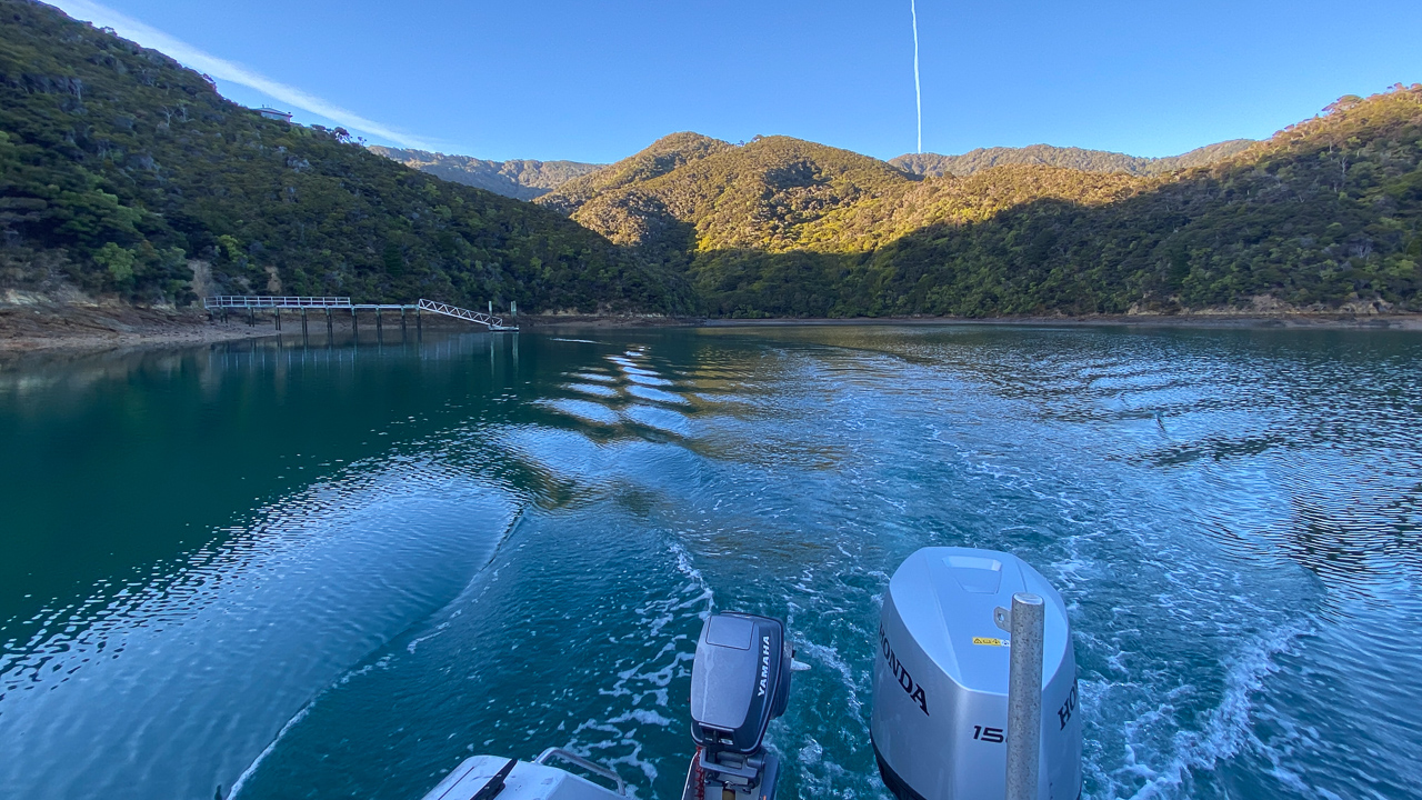 8. Samedi matin. On quitte Havelock aux aurores pour arriver au plus vite a d'Urville et profiter d'une fenetre meteo favorable.