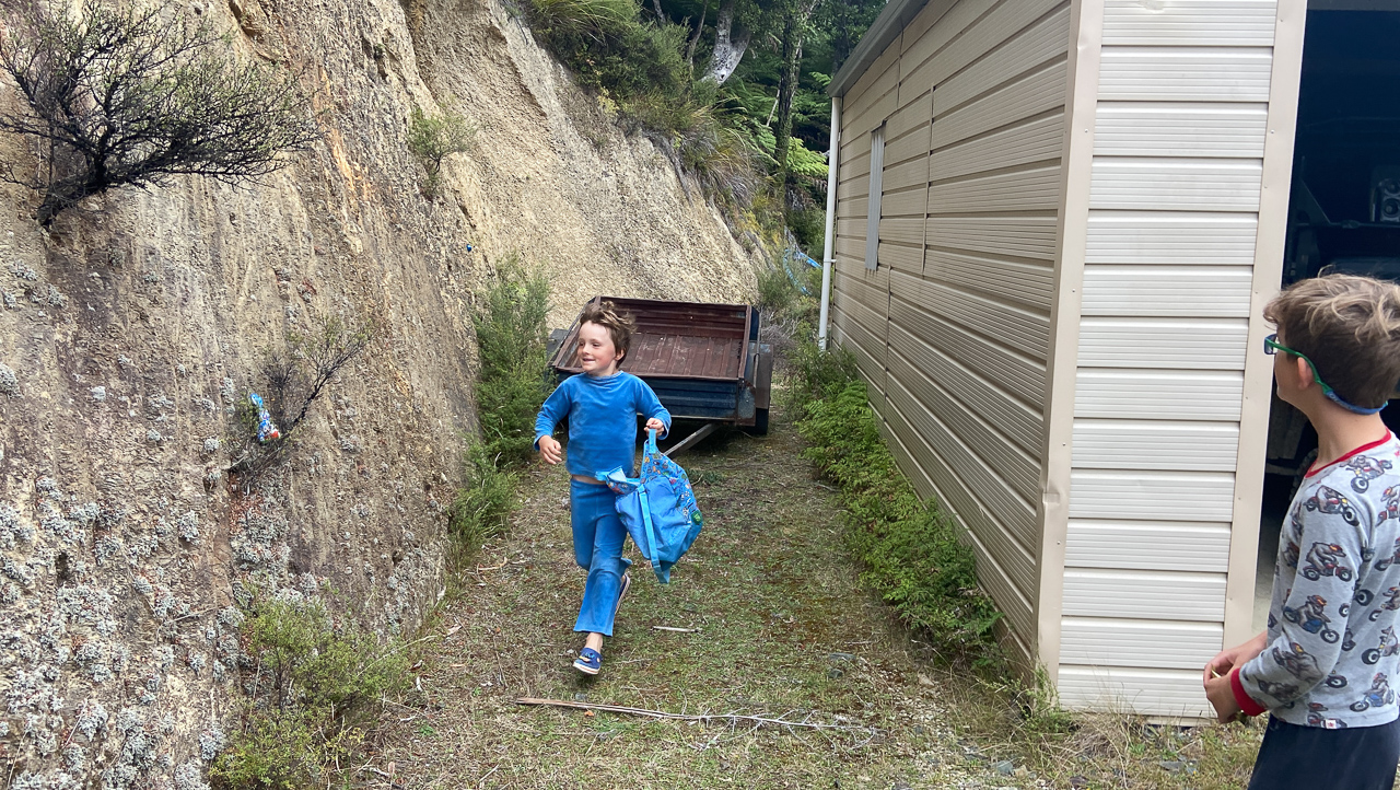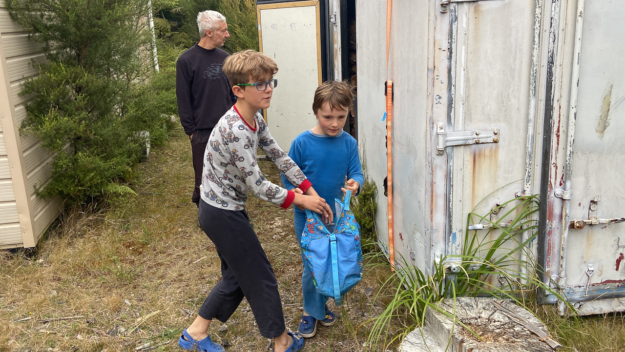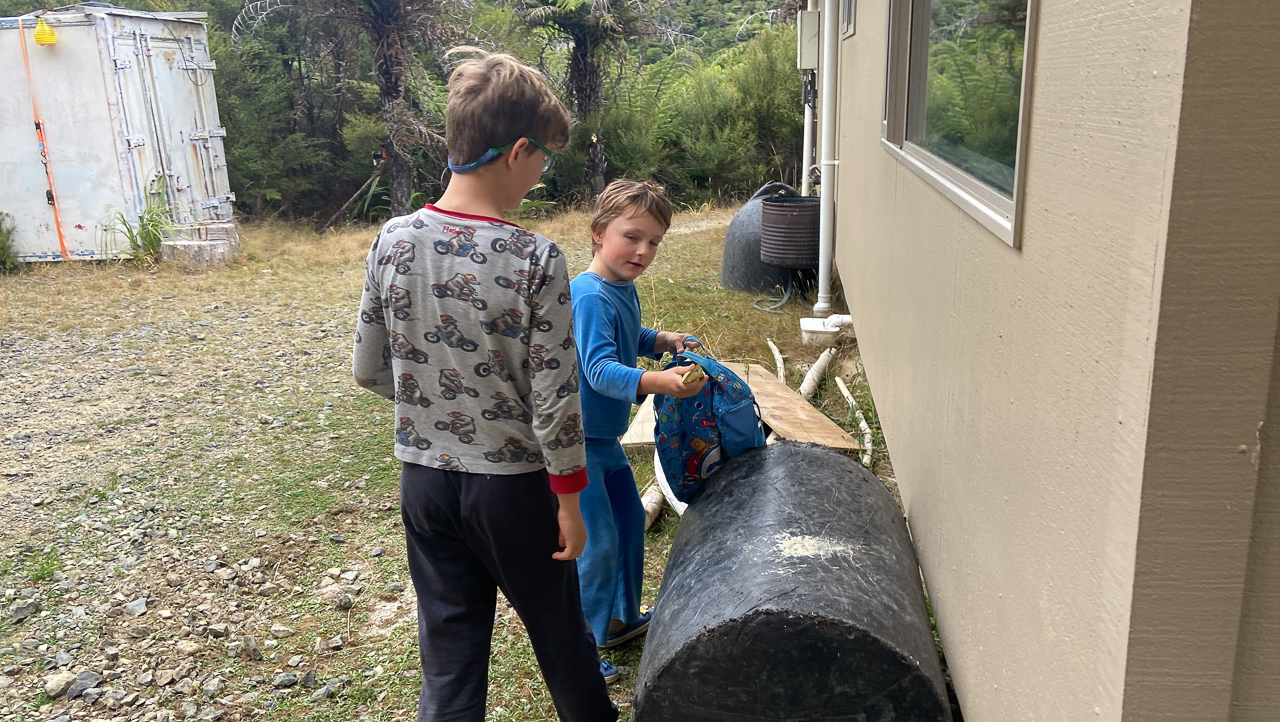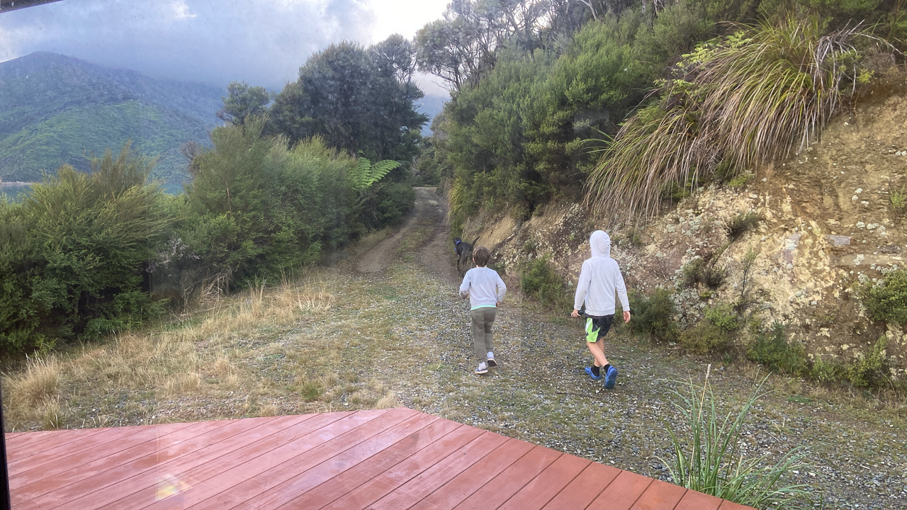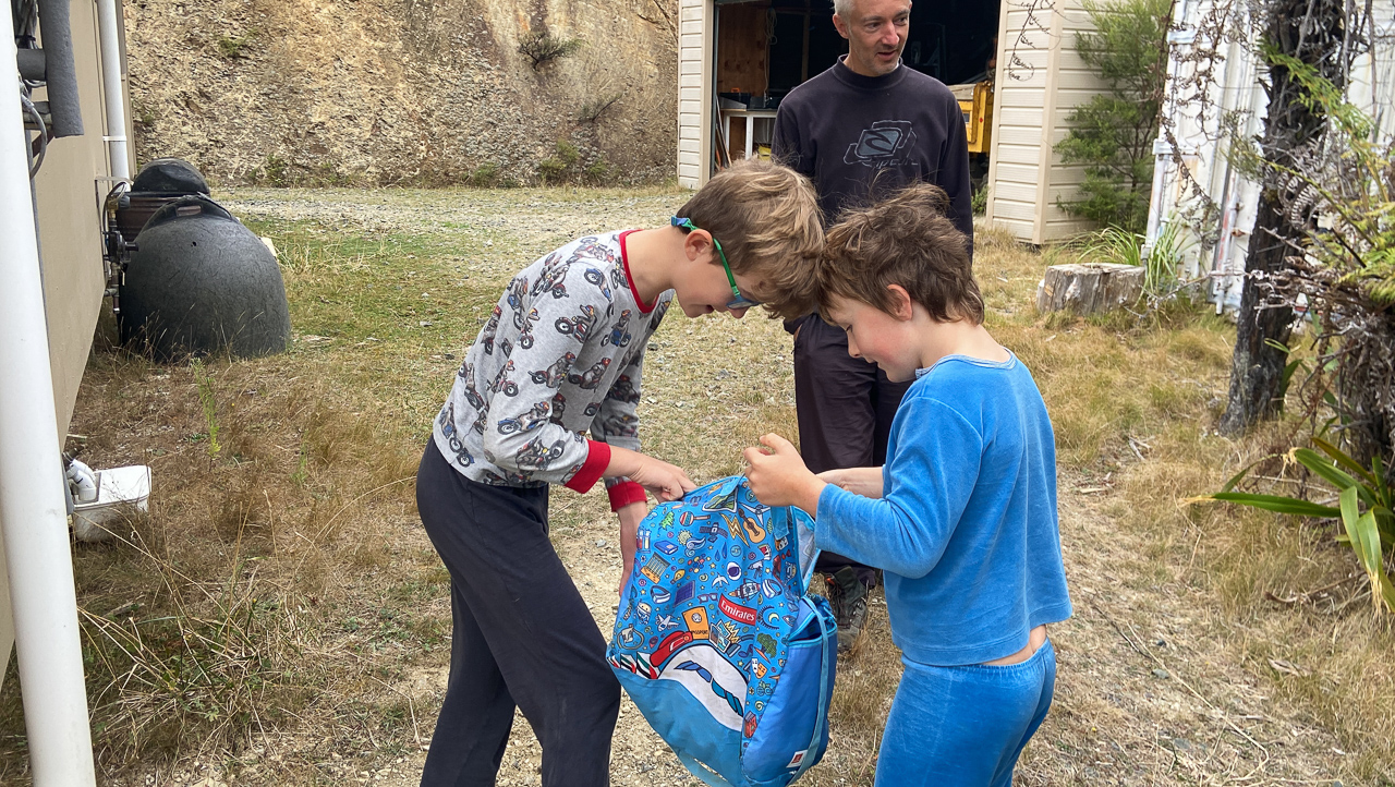 57. Le weekend de Paques est termine, et il est temps pour moi de ramener Seb et les enfants a Okiwi Bay.