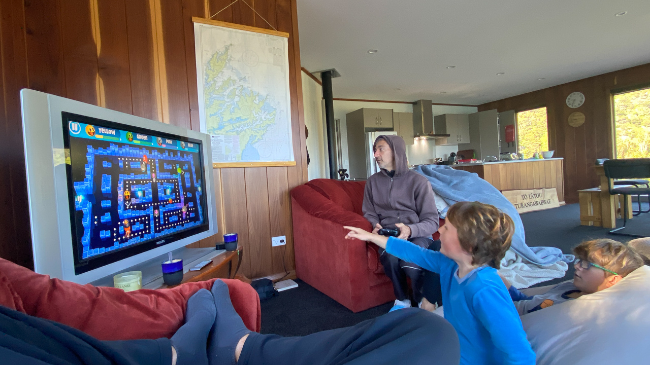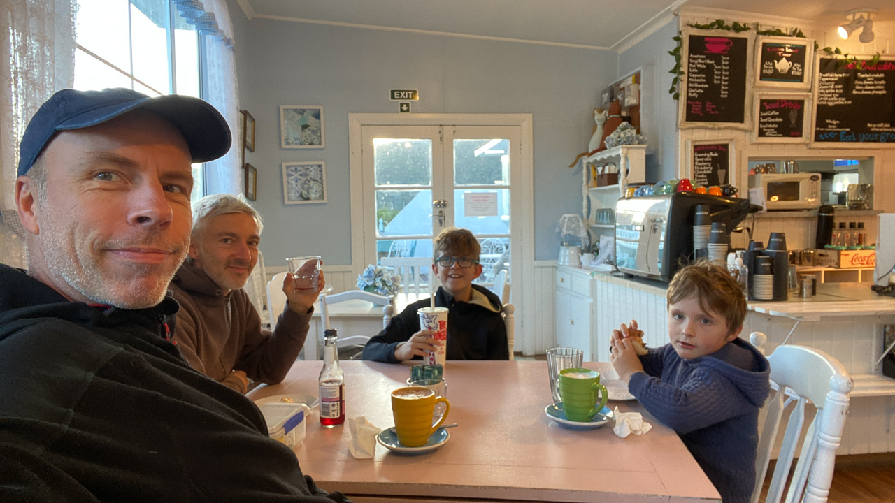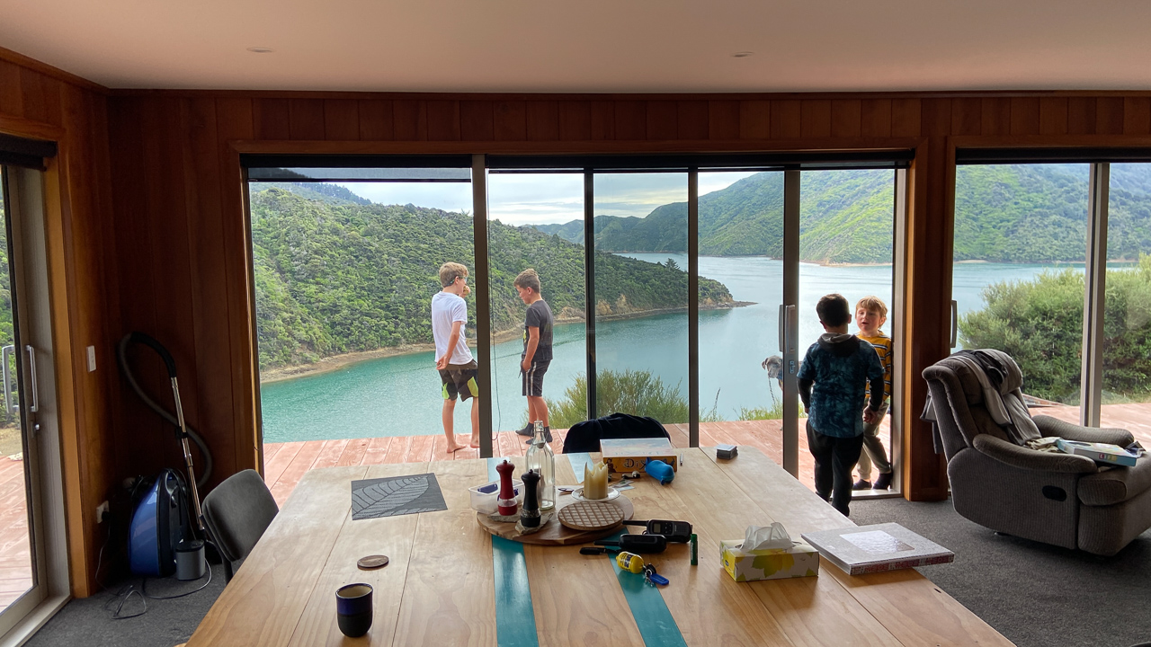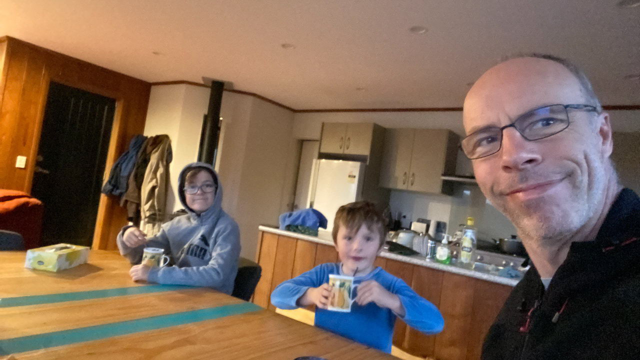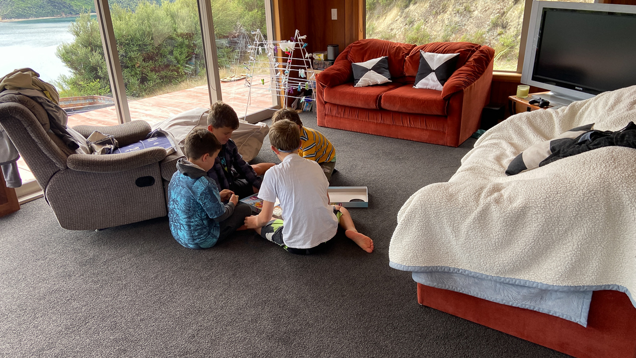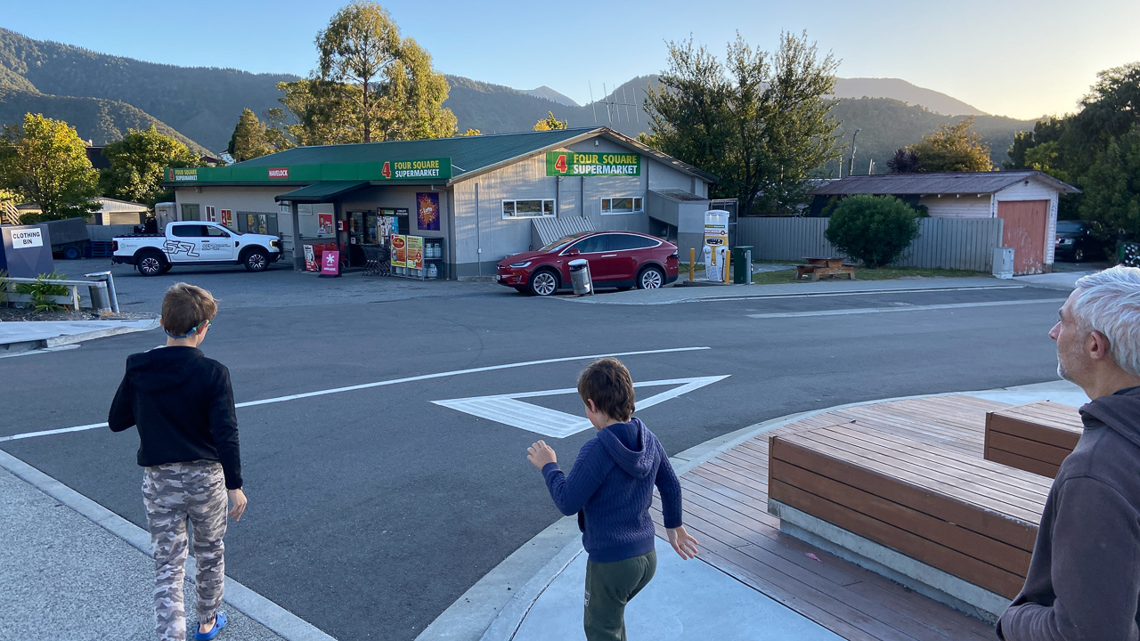 57. Le weekend de Paques est termine, et il est temps pour moi de ramener Seb et les enfants a Okiwi Bay.