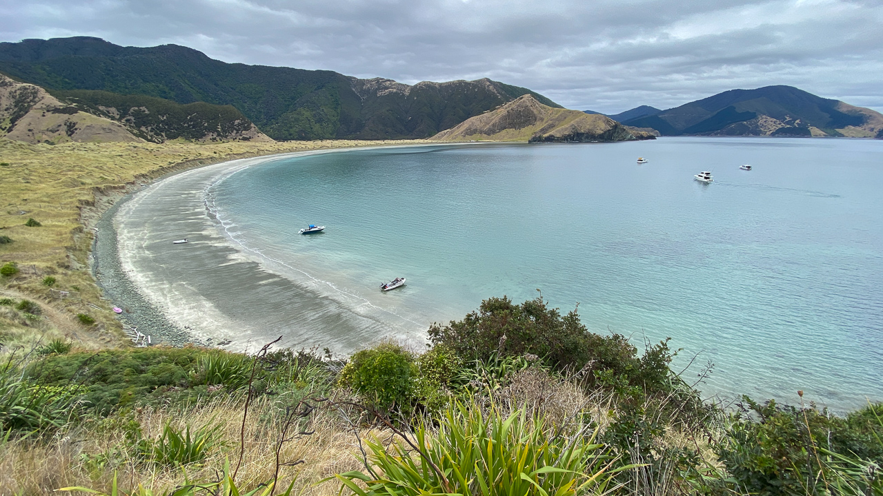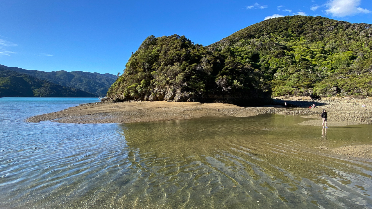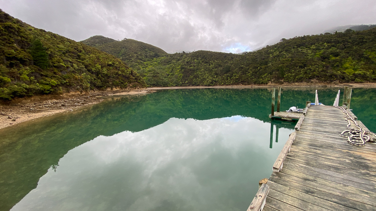 16. C"est Paques et a la fin du long weekend, Seb et les enfants vont rentrer a Wellington, et je vais rester a seul a d'Urville pour etre present quand eSolar, l'installateur solaire, viendra deployer les panneaux et composants. Du coup, je m'entraine a faire des appontages et mouillages tout seul, ici, dans une baie voisine.