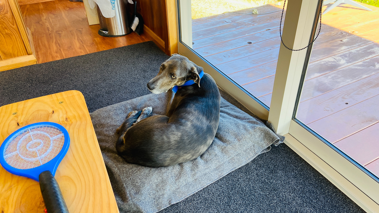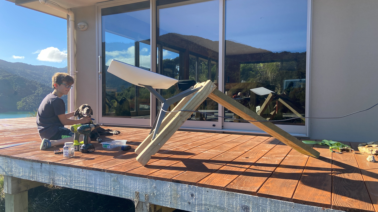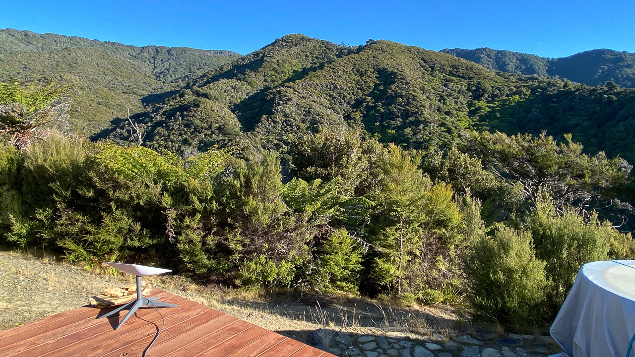 10. Notre ancienne antenne Starlink a cesse de fonctionner, et il nous faut utiliser la nouvelle, plus petite et plus agile. Pour l'instant, elle est installee sur le deck, avant de trouver sa place definitive, probablement sur le toit du shed. Mais ce sera apres que le nouveau systeme electrique a ete installe.