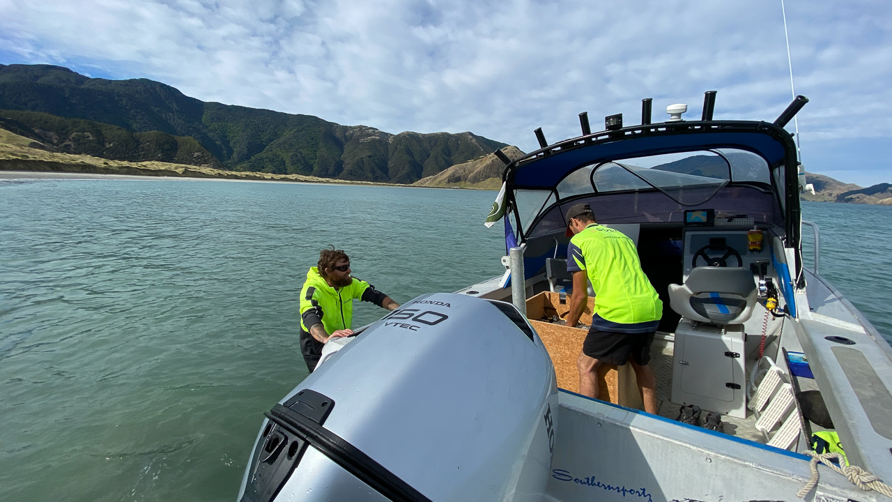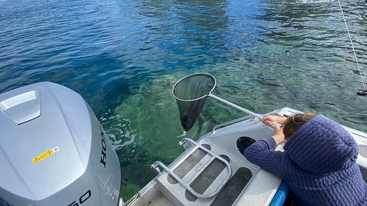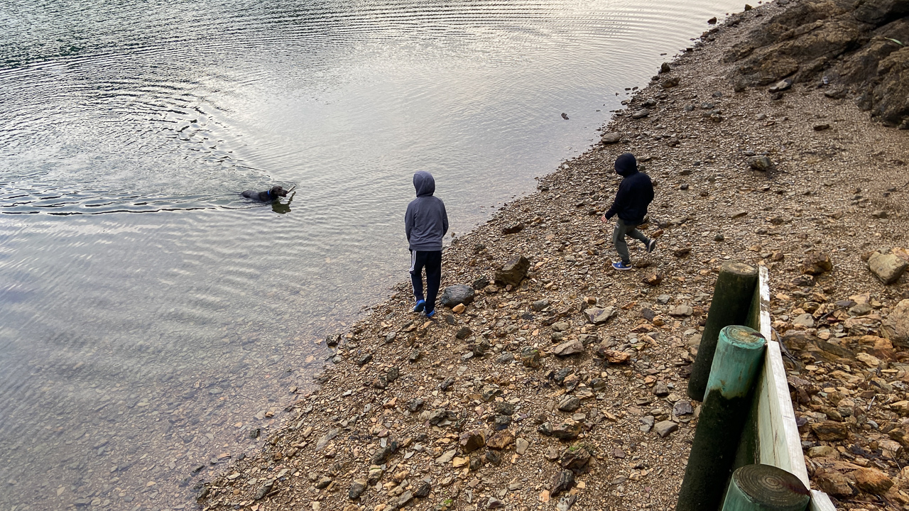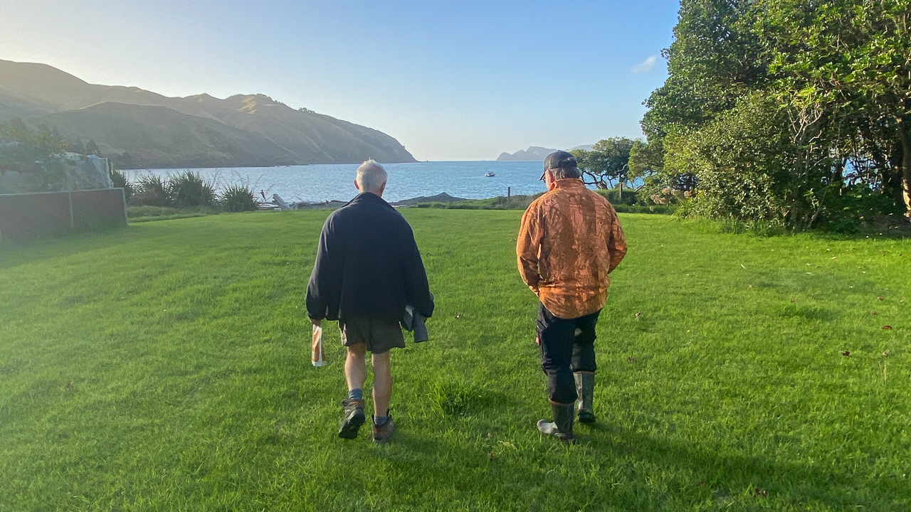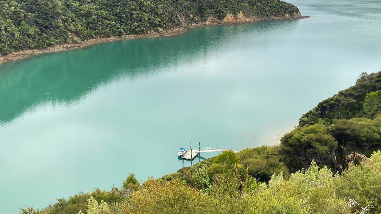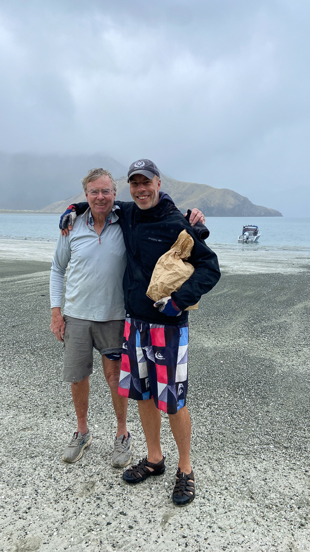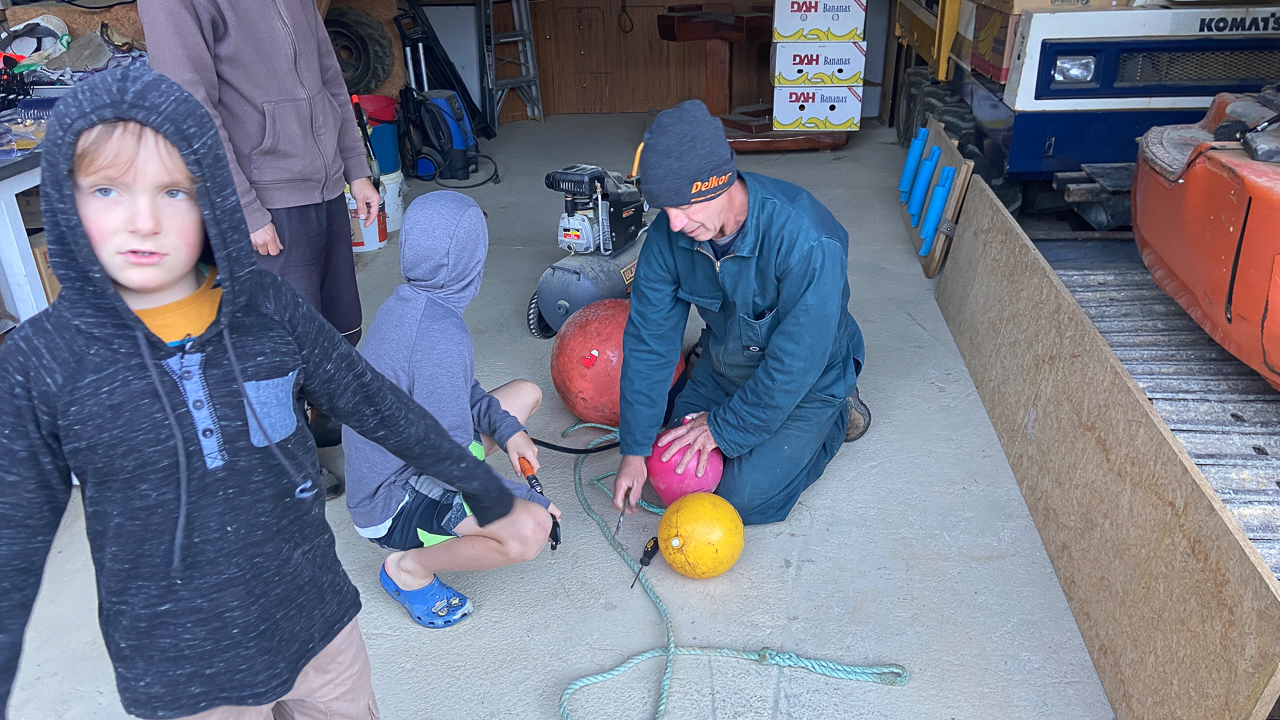 202. De retour au ponton, coincidence, un banc de kahawai fait fretiller la surface en chassant leur petit dej'. Graeme emmene Cosmo et Adan sur son annexe ...