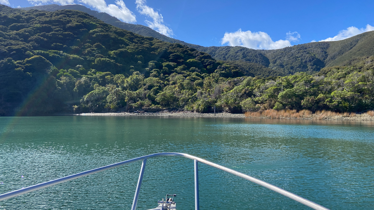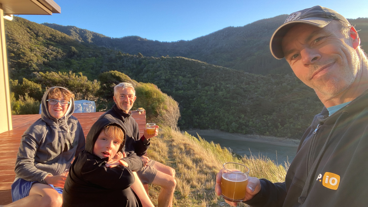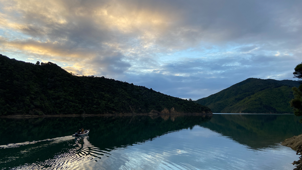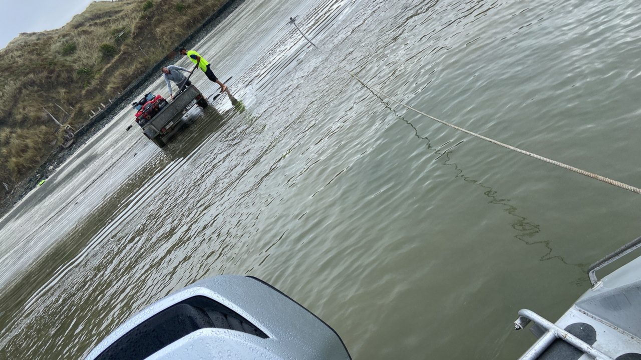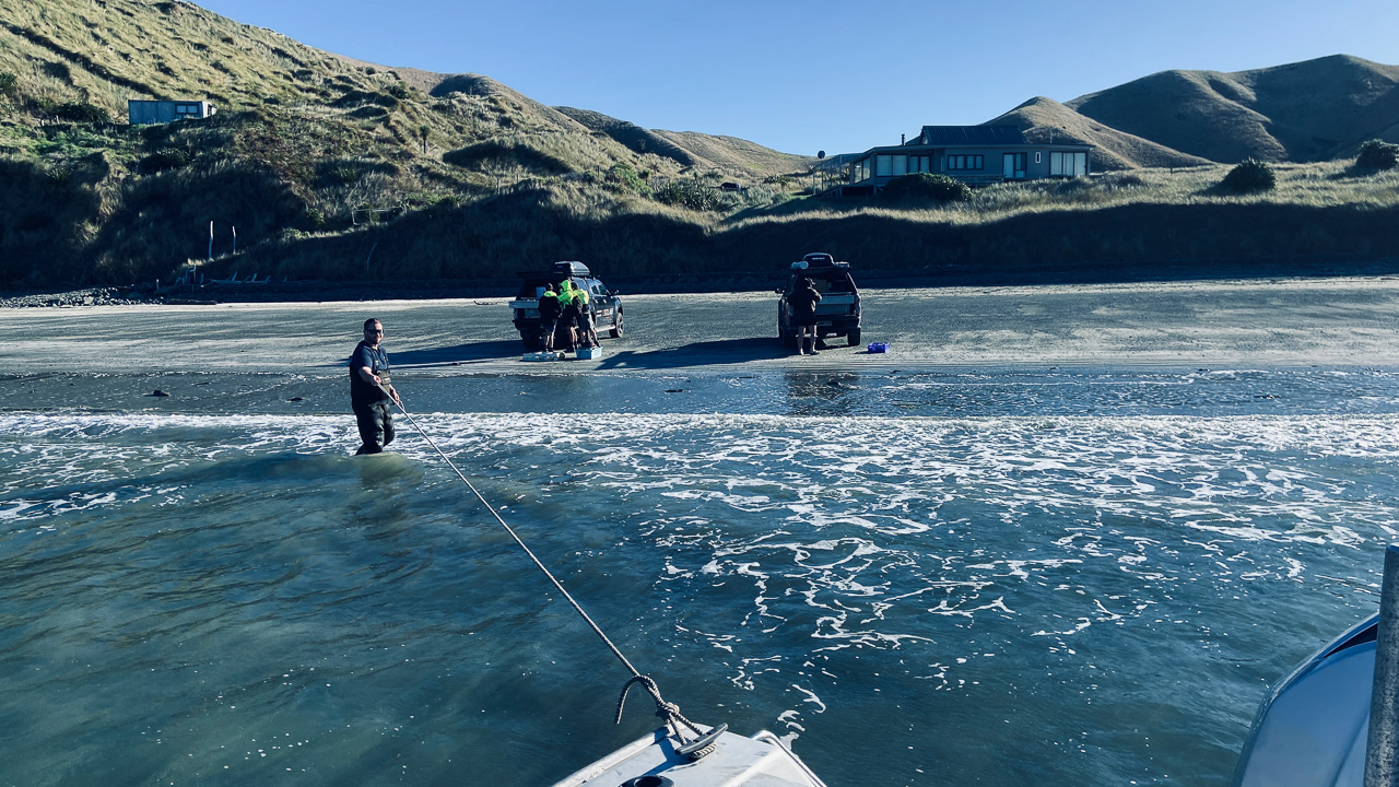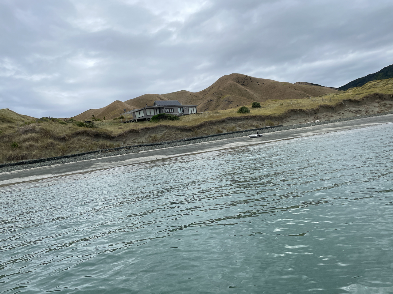 202. De retour au ponton, coincidence, un banc de kahawai fait fretiller la surface en chassant leur petit dej'. Graeme emmene Cosmo et Adan sur son annexe ...