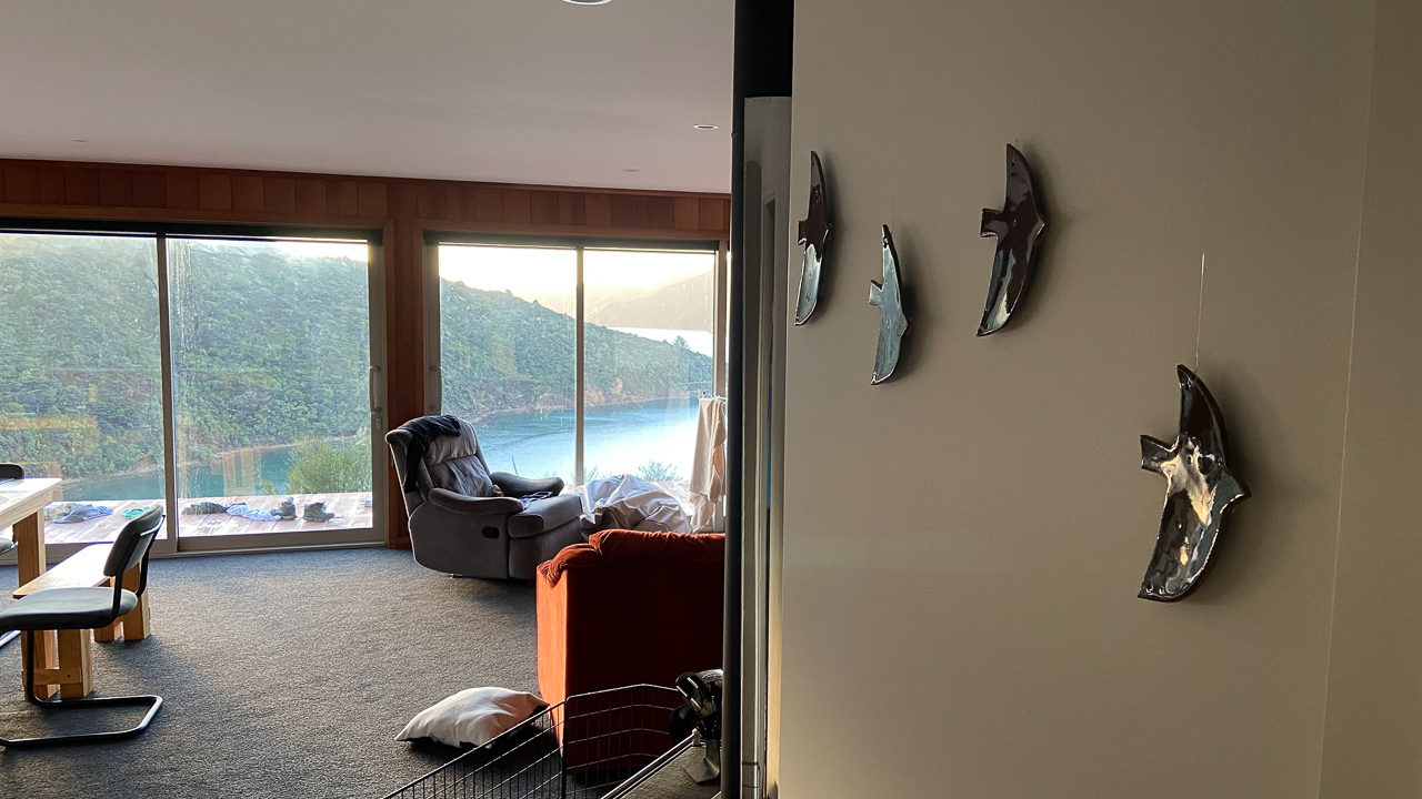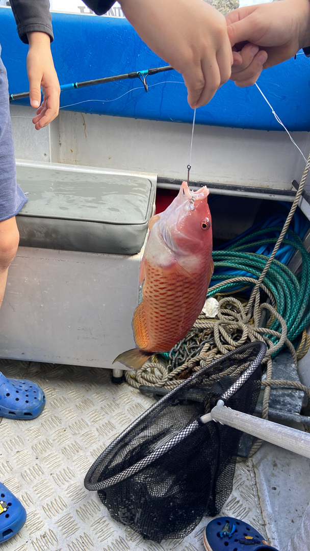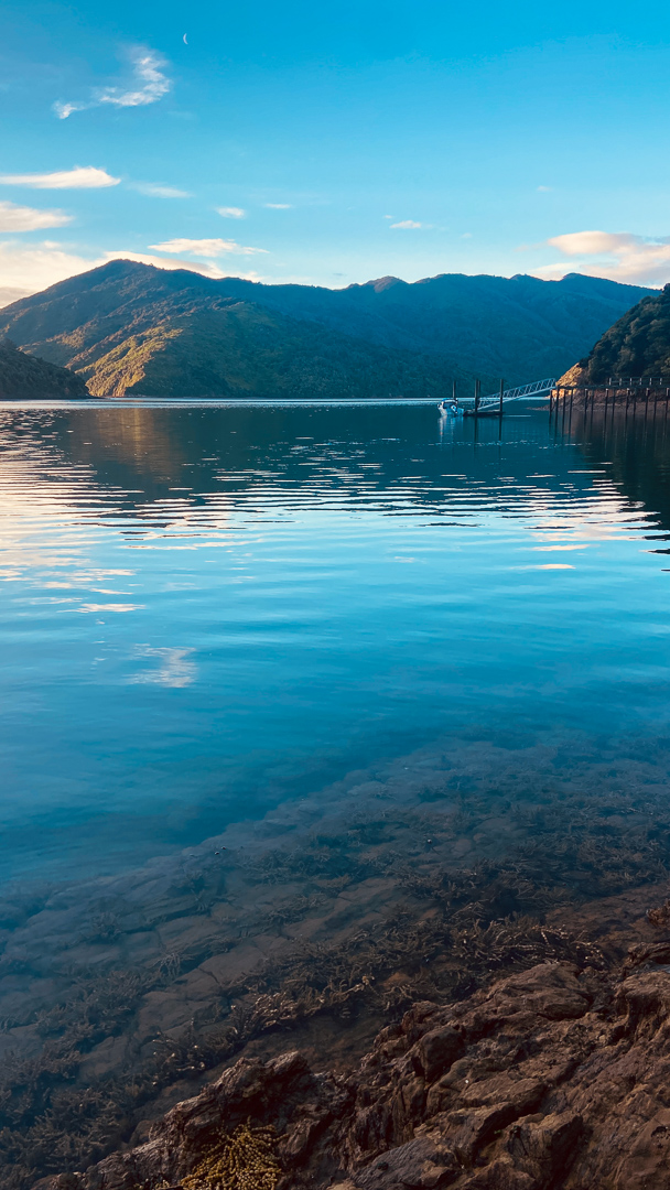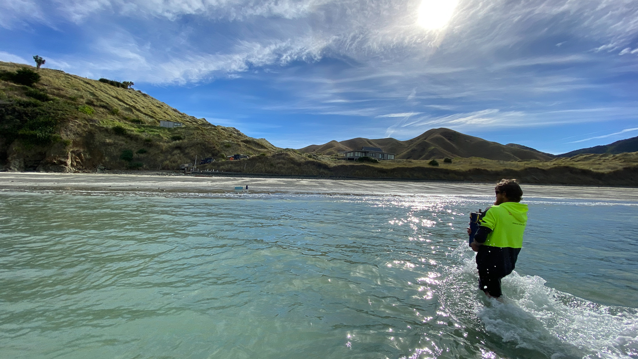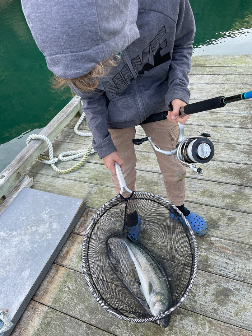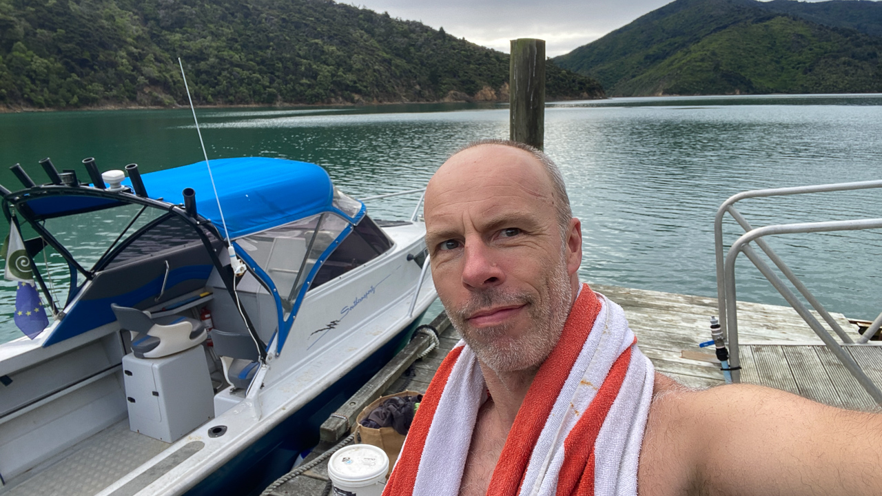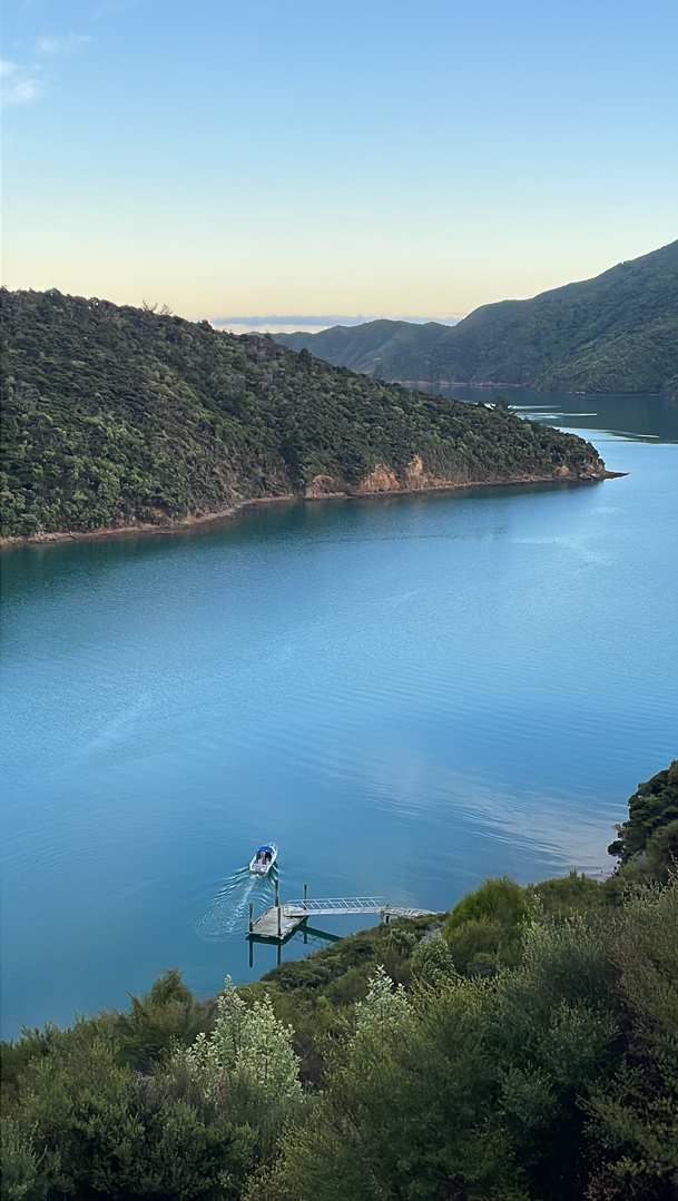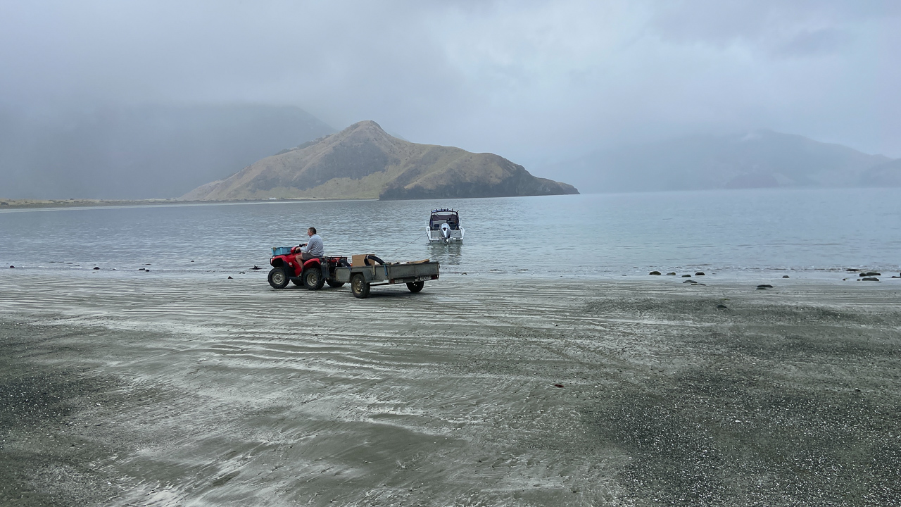 202. De retour au ponton, coincidence, un banc de kahawai fait fretiller la surface en chassant leur petit dej'. Graeme emmene Cosmo et Adan sur son annexe ...