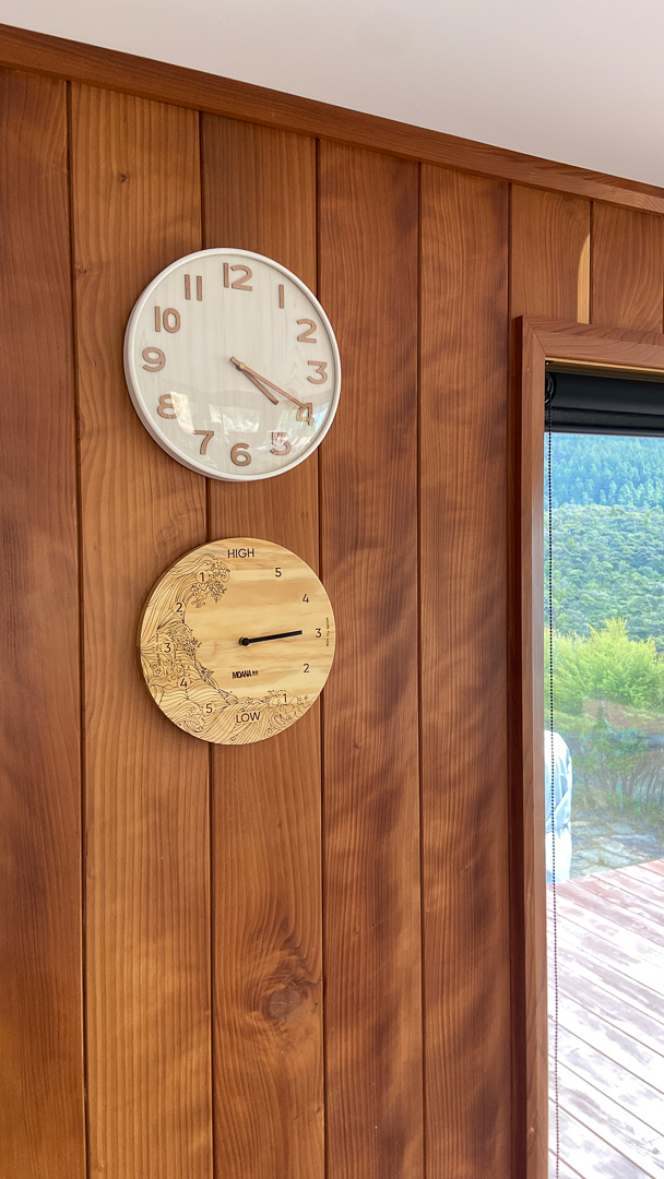20. Seb, pour son anniversaire, a eu une horloge des marees, qui trouve sa place tout naturellement sous l'horloge classique.