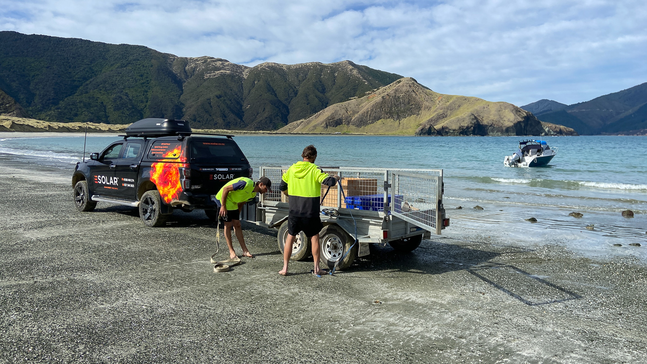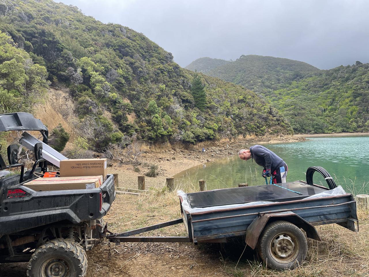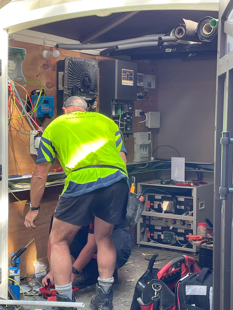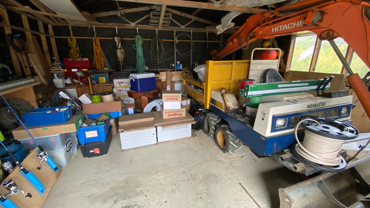 65. Entre temps, et avant de repartir a Nelson, eSolar m'a refile encore du materiel. Un bateau rempli de cables, goulottes, lumieres et autres. Le garage commence a se remplir!