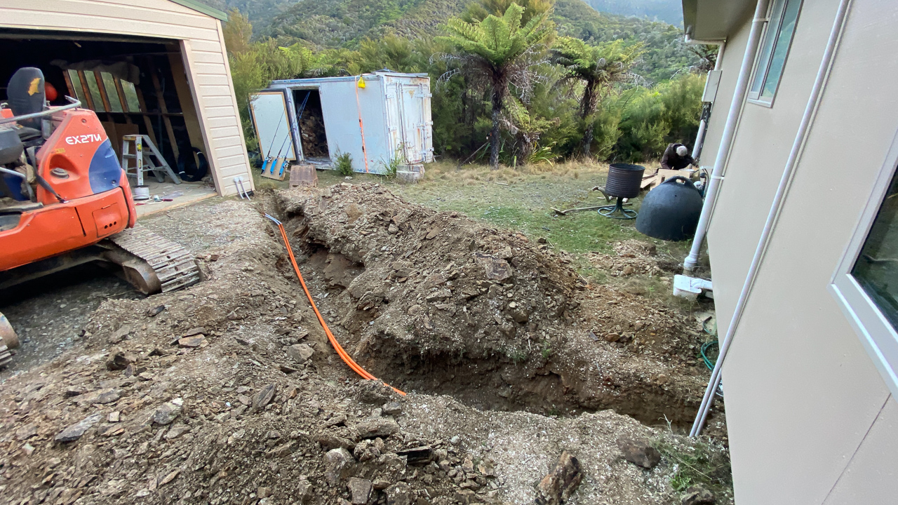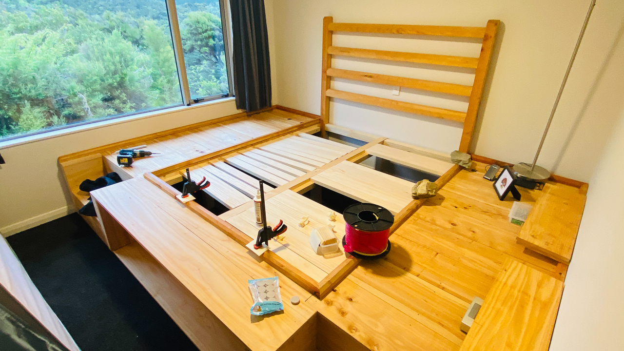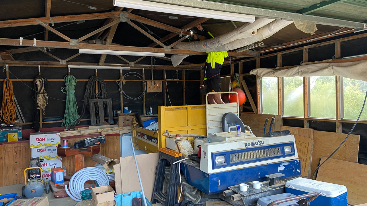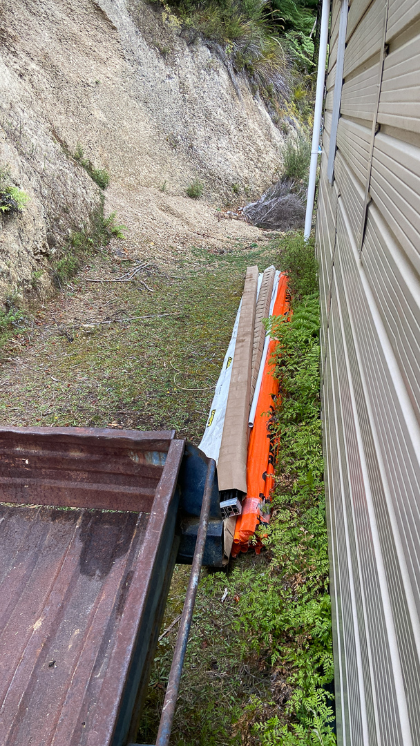 65. Entre temps, et avant de repartir a Nelson, eSolar m'a refile encore du materiel. Un bateau rempli de cables, goulottes, lumieres et autres. Le garage commence a se remplir!