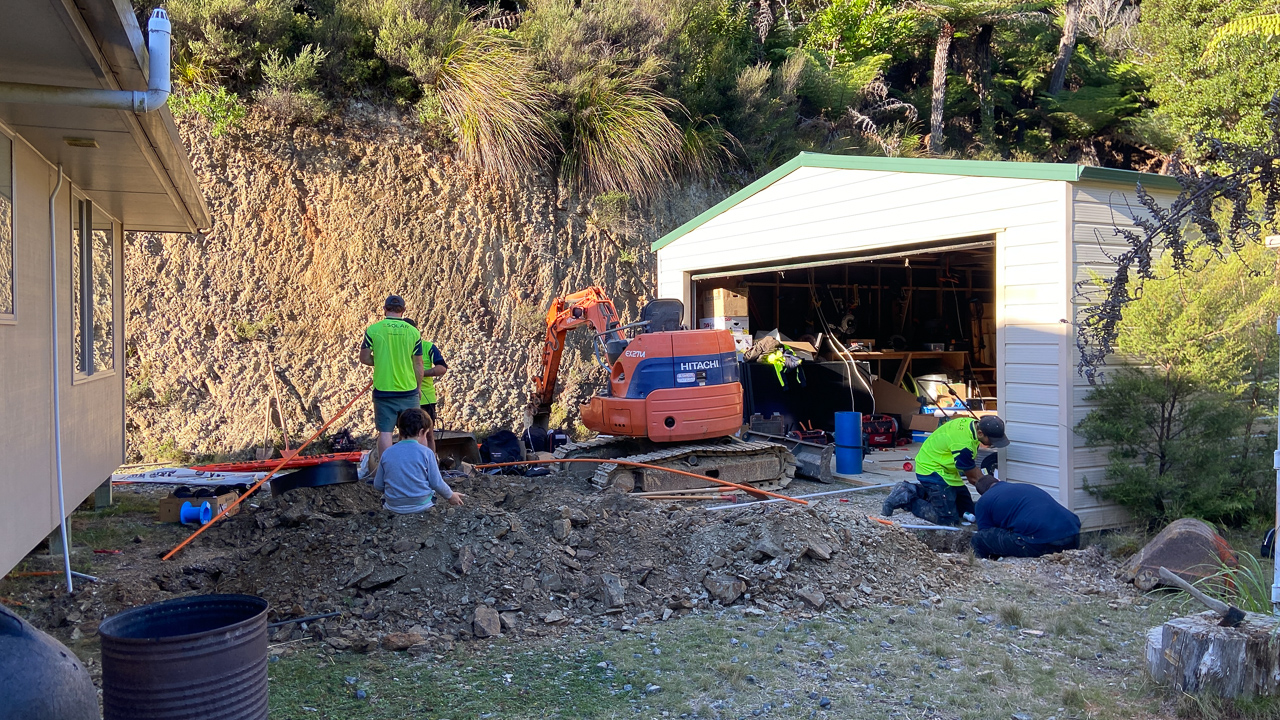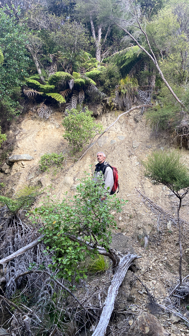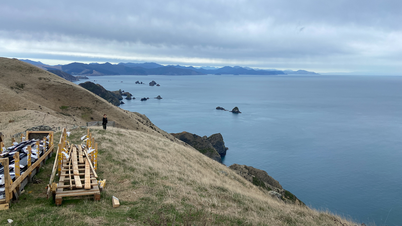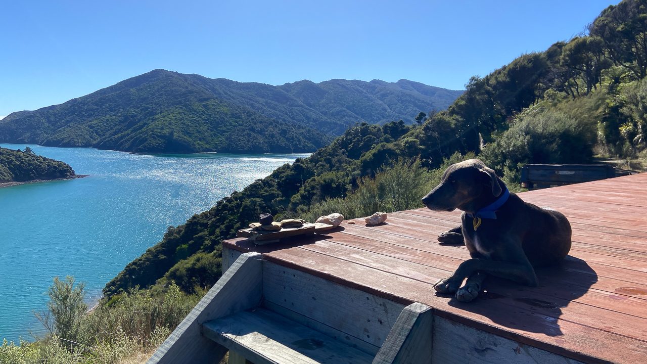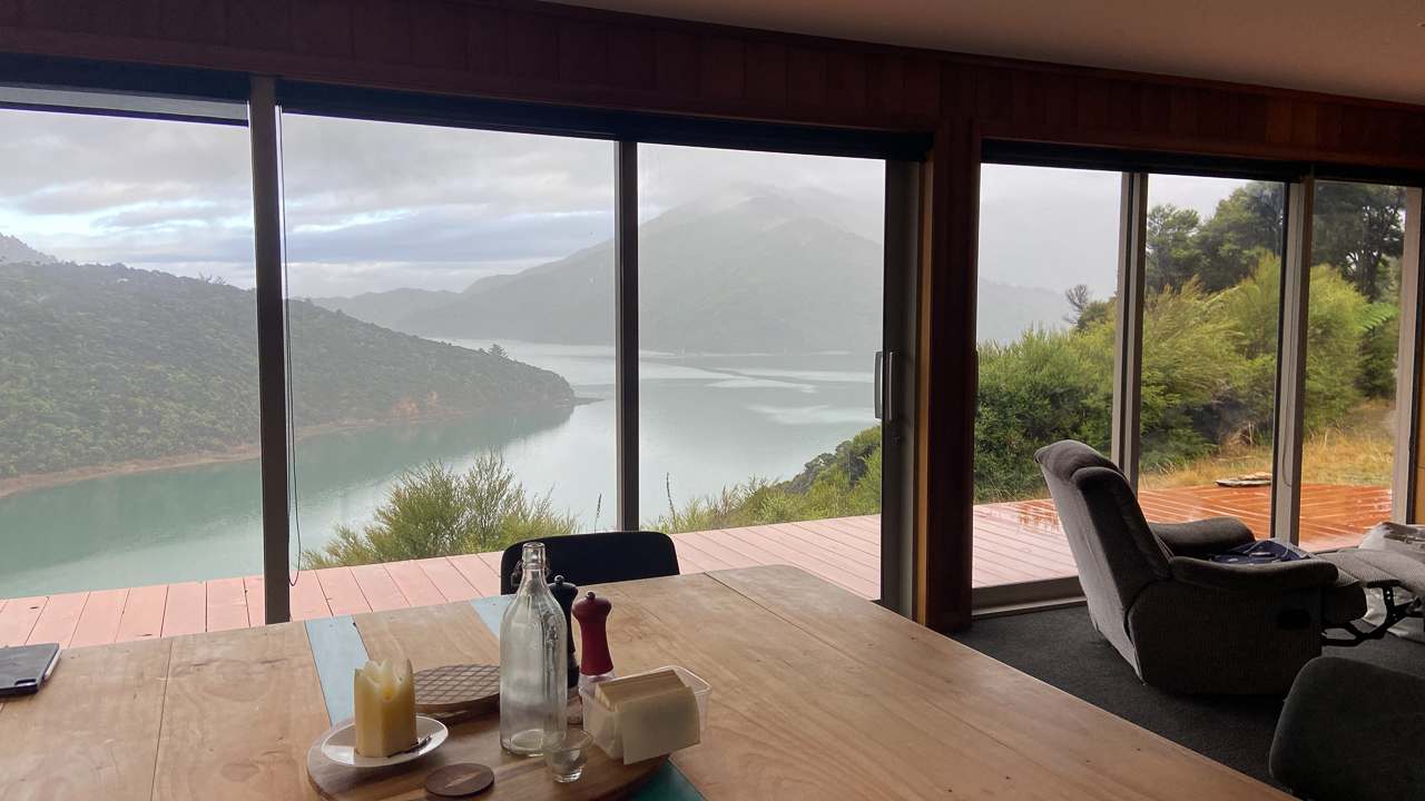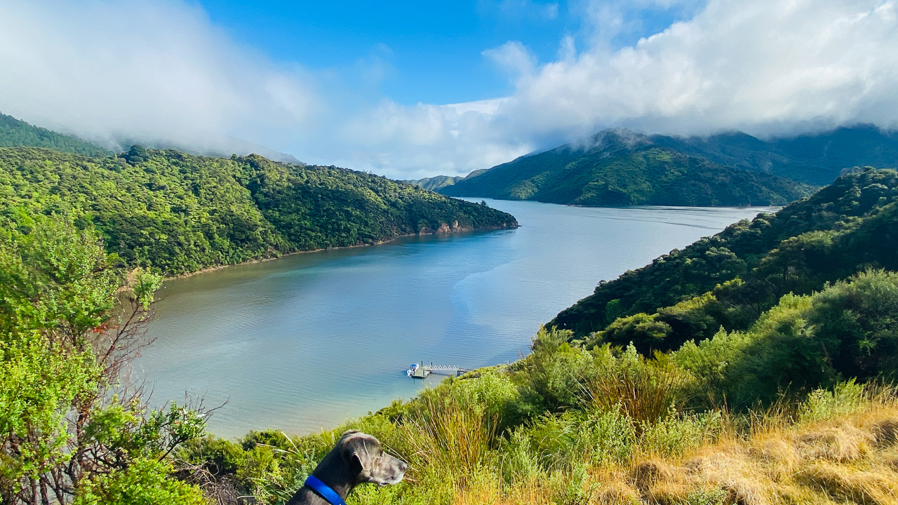 186. Samedi matin. Nous avons un cafe prevu avec Sanne (la femme de Ruben), qui nous fait visiter le site de leur future maison (un projet titanesque, commence 8 ans plus tot!!). C'est un panorama a 360 degres a couper le souffle. On y voit le Taranaki, le Farewell Spit, Abel Tasman, et bien sur, toute la chaine du Pelorus Sound.
