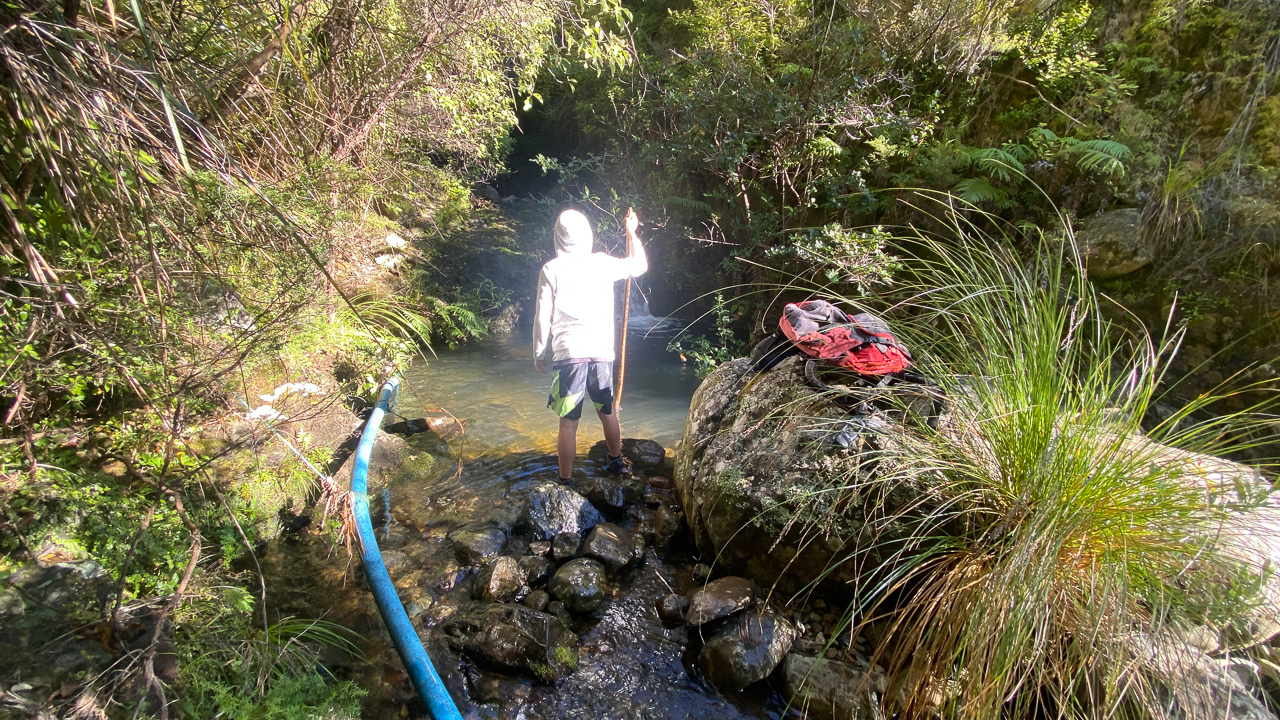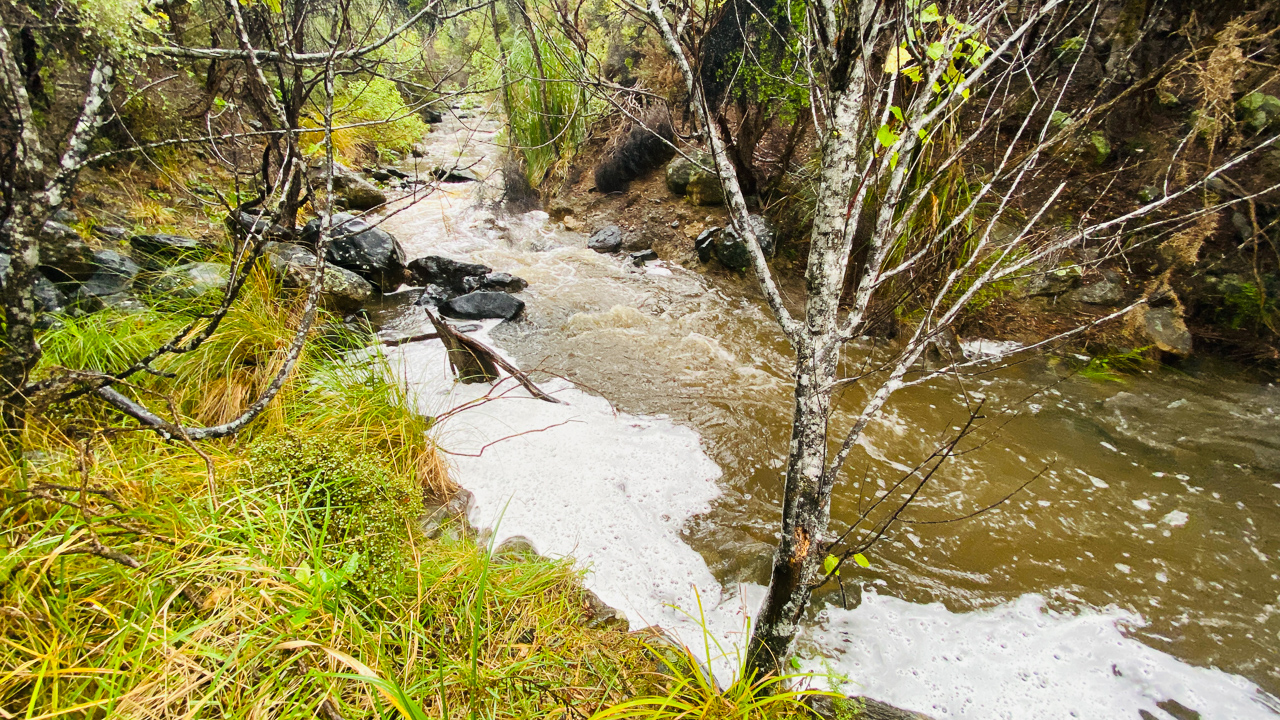 83. Les jours passent, et depuis avant hier, il pleut des trombes, sans discontinuer. Ici, les nuages s'ecartent un court instant. L'hydro a aussi cesse de fonctionner, ce qui est tres inquietant: eSolar n'a pas prevu de venir avant plusieurs jours. Je pars avec Romy verifier la prise d'eau et le bloc pour voir si je peux resoudre le probleme moi meme.