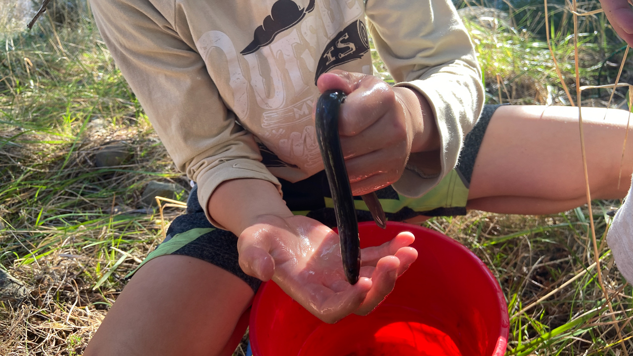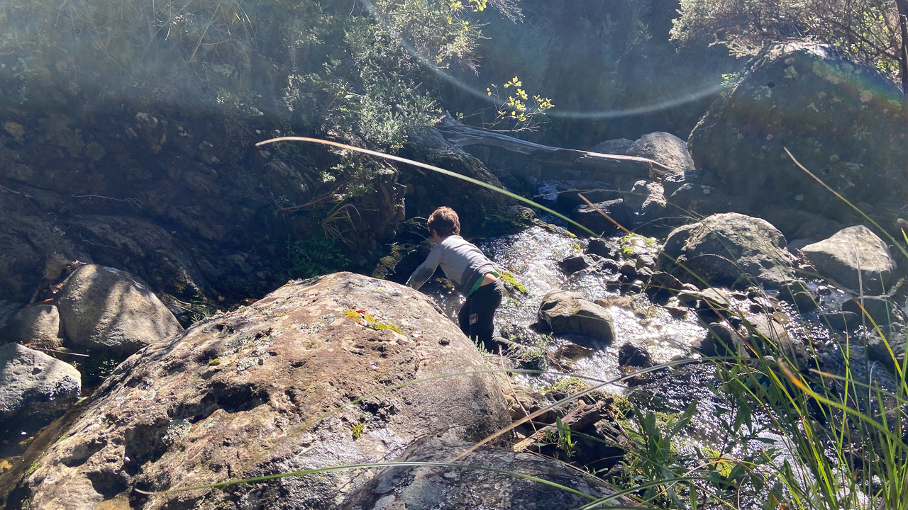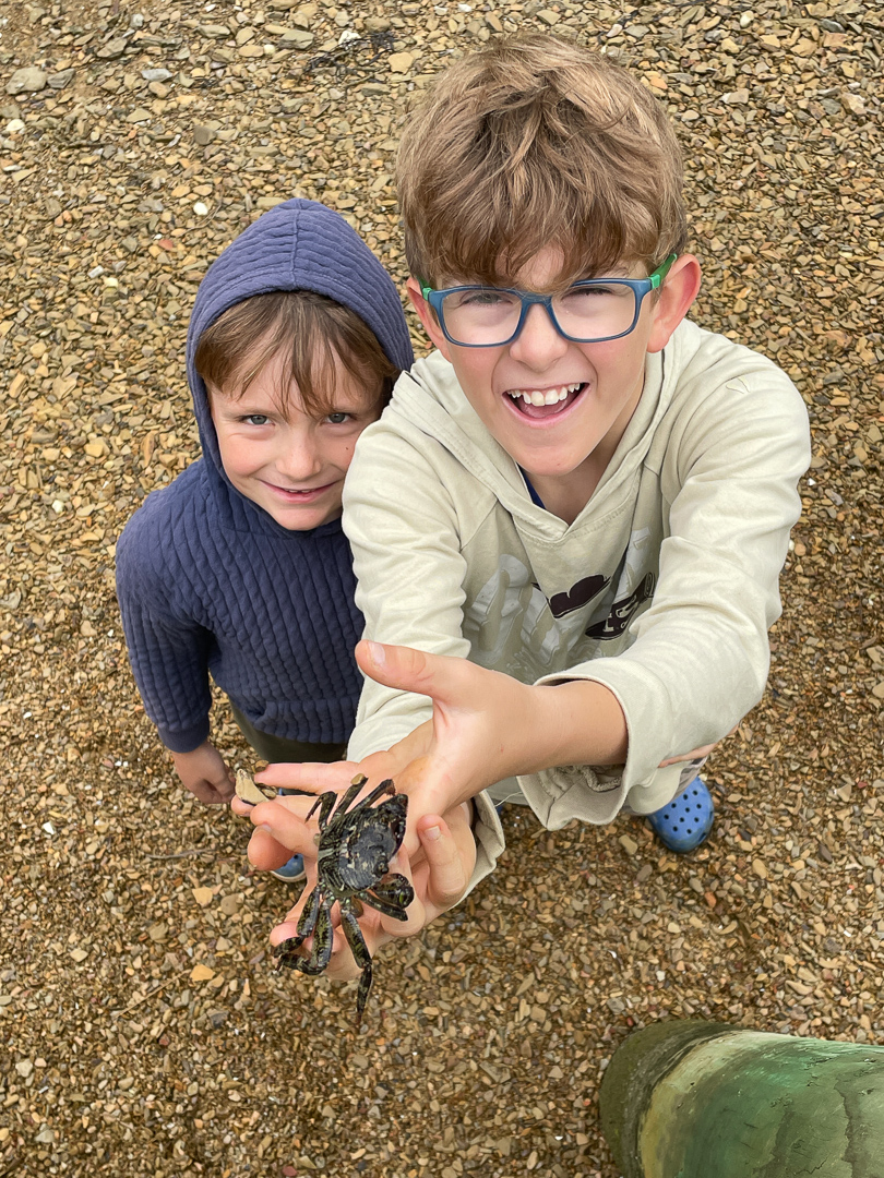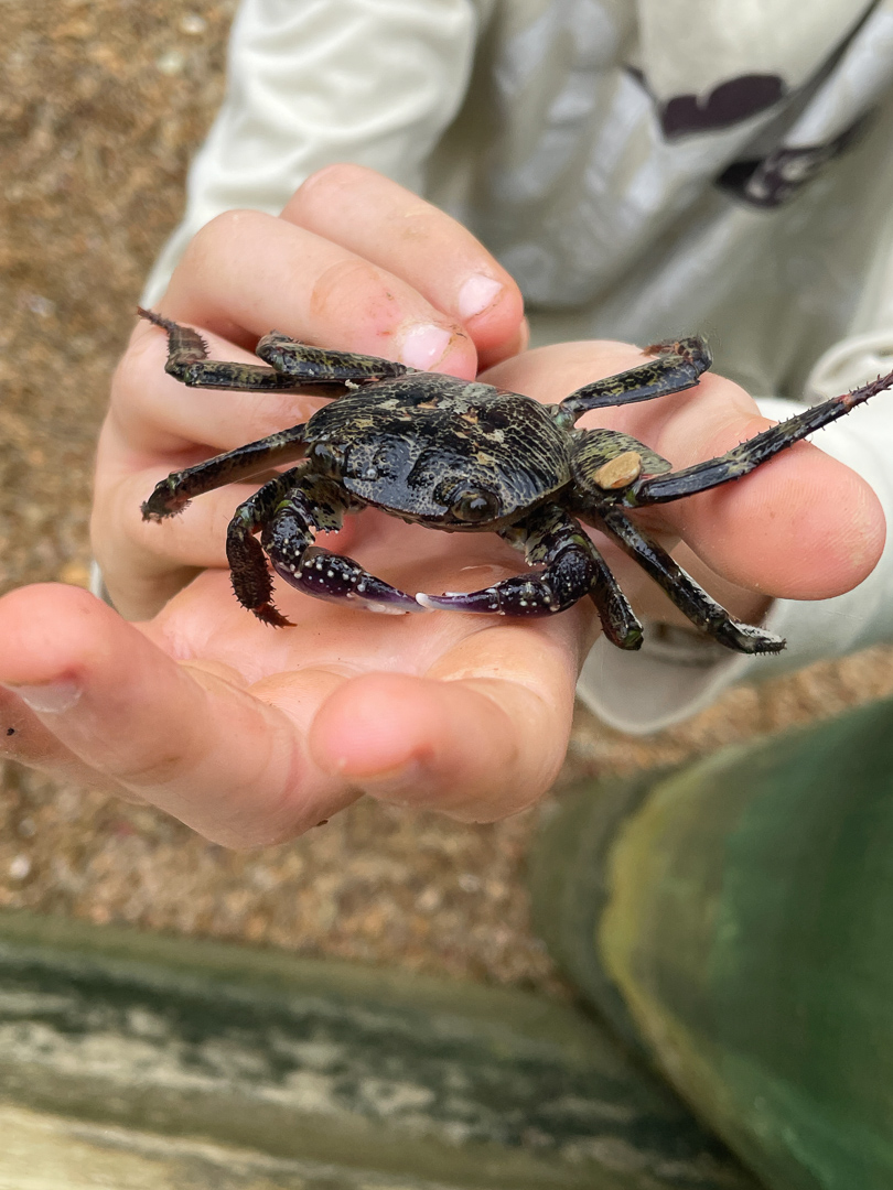 189. Tous les 4 descendent a la riviere avec Romy. Les crabes ont 5 minutes pour bien se cacher. Apres, il sera trop tard.