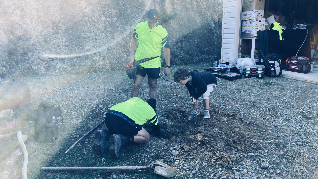 33. Nous avons jumele notre installation solaire avec celle de Rupert, un "voisin". Comme il passe premier, nous allons lui rendre visite pour dire bonjour et finaliser les derniers details logistiques.