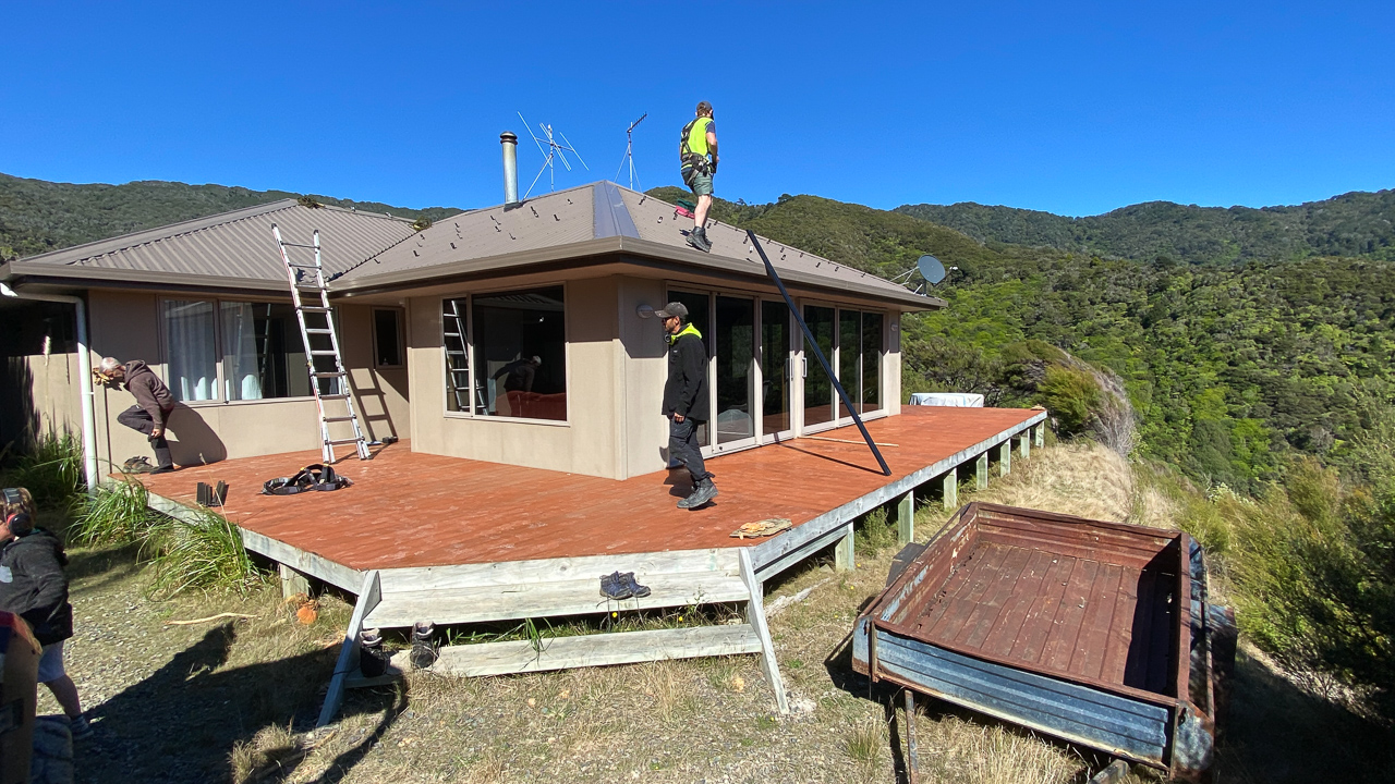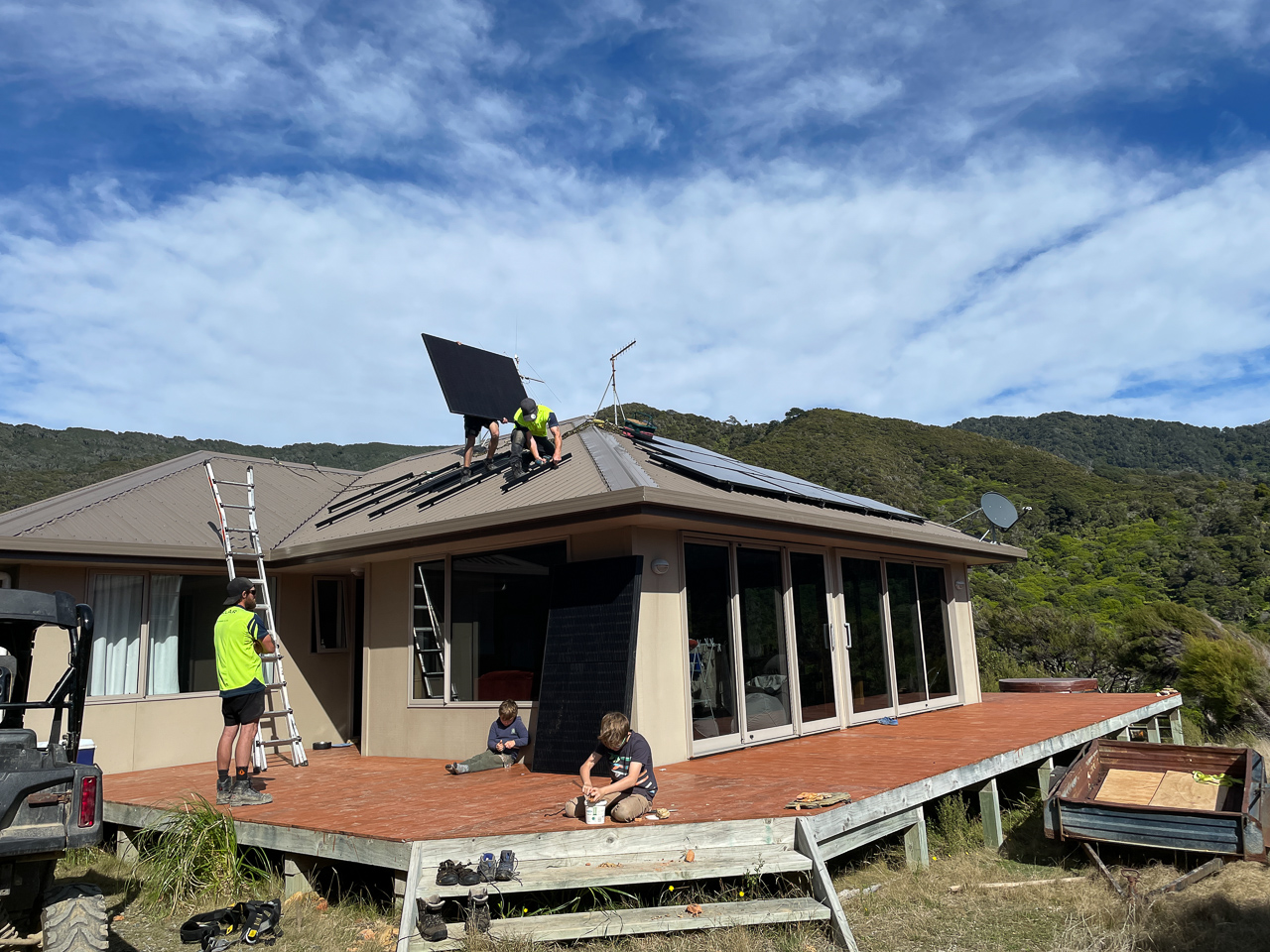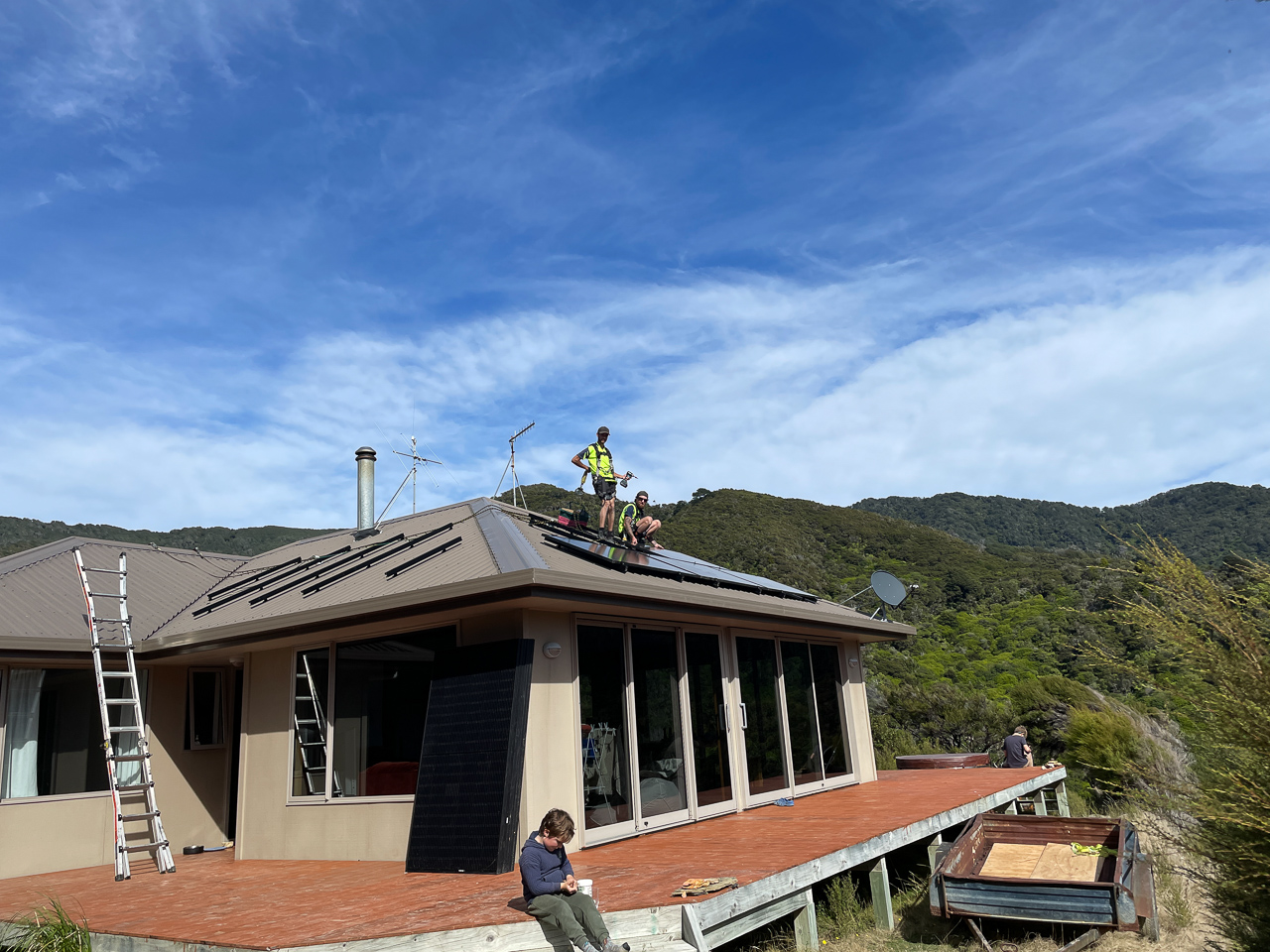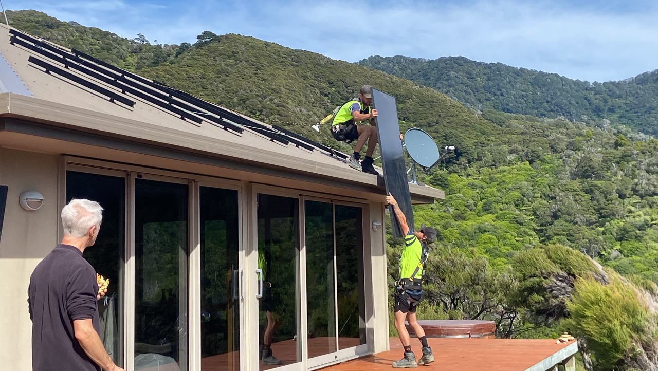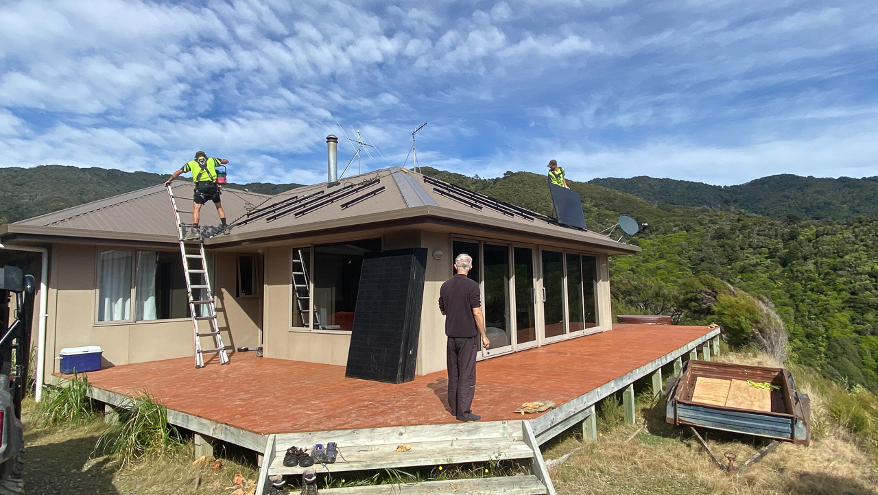 163. Puis, pas de repos pour les gars: il faut charger les panneaux solaires sur le toit, et les fixer.