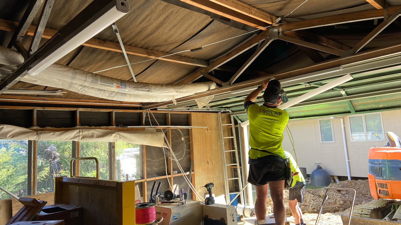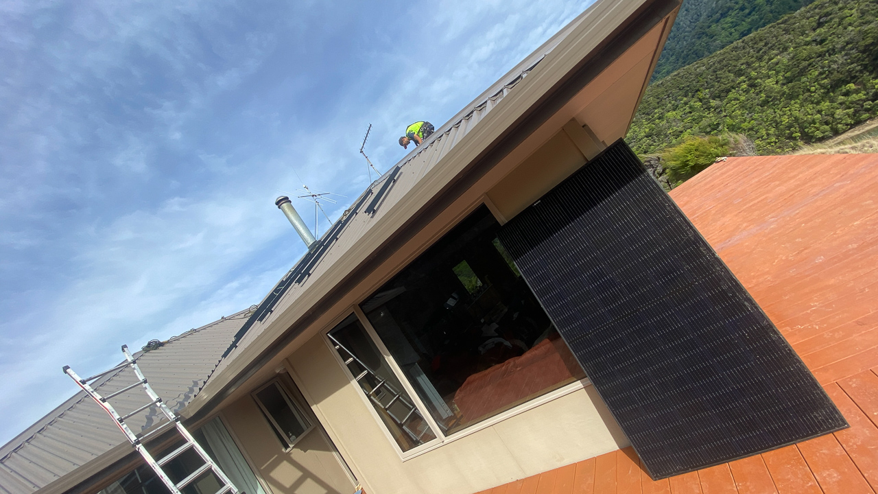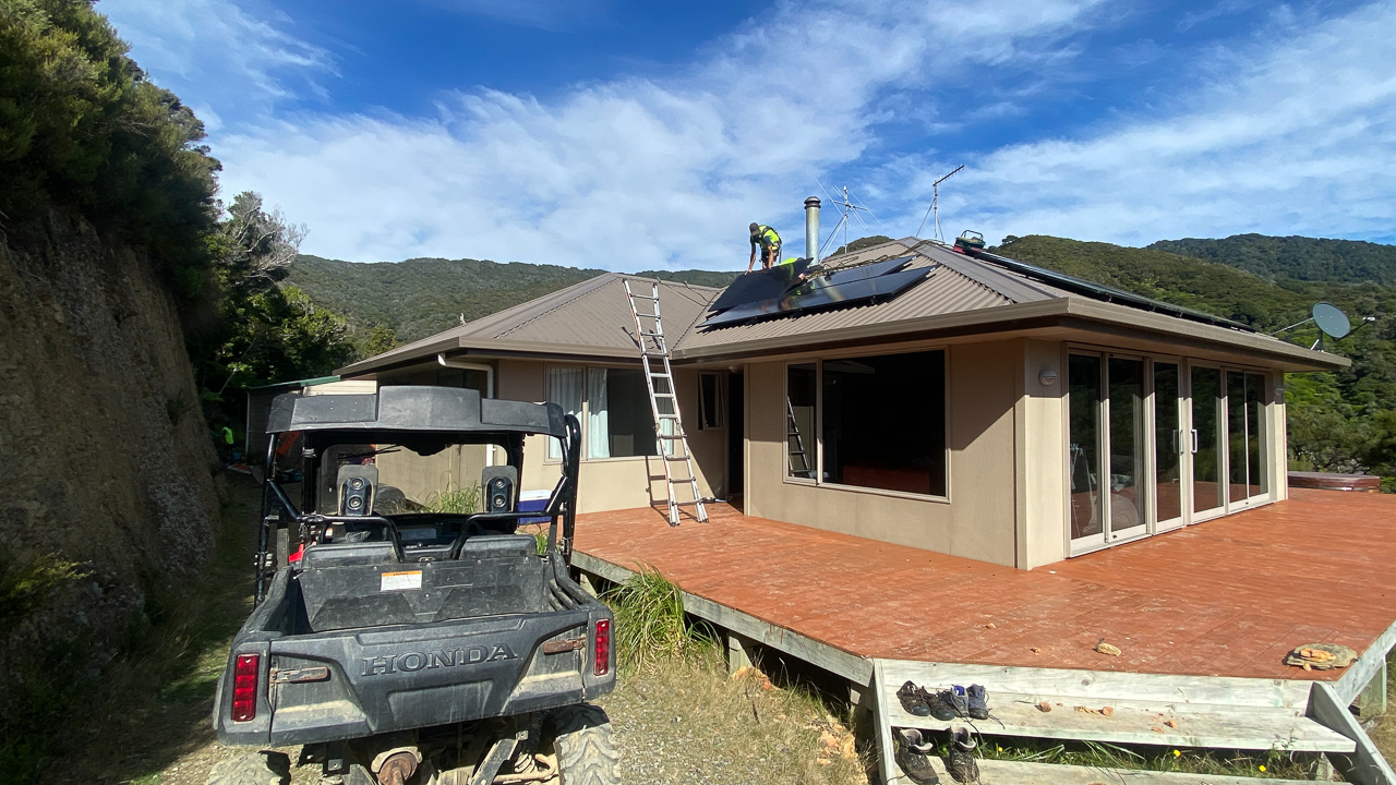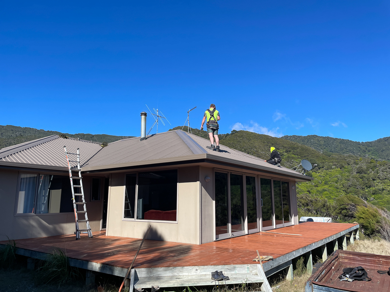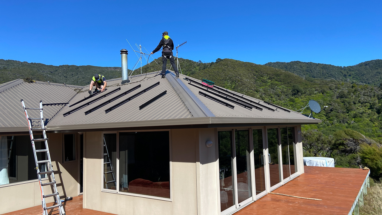 163. Puis, pas de repos pour les gars: il faut charger les panneaux solaires sur le toit, et les fixer.