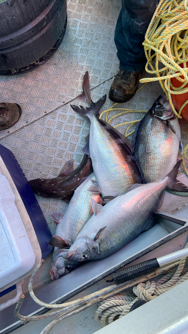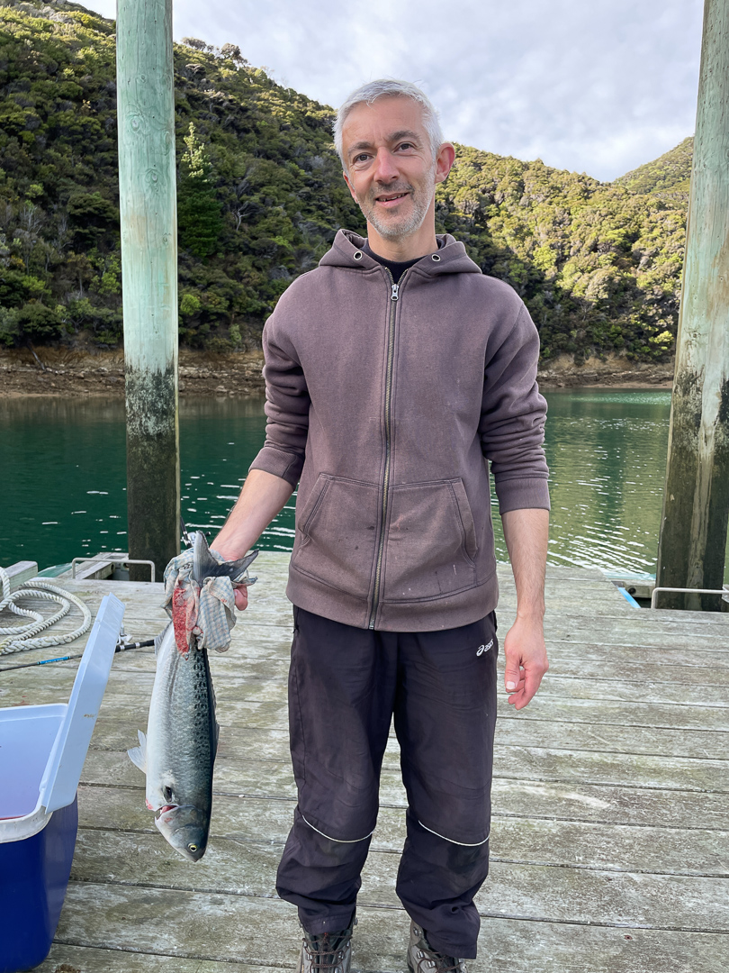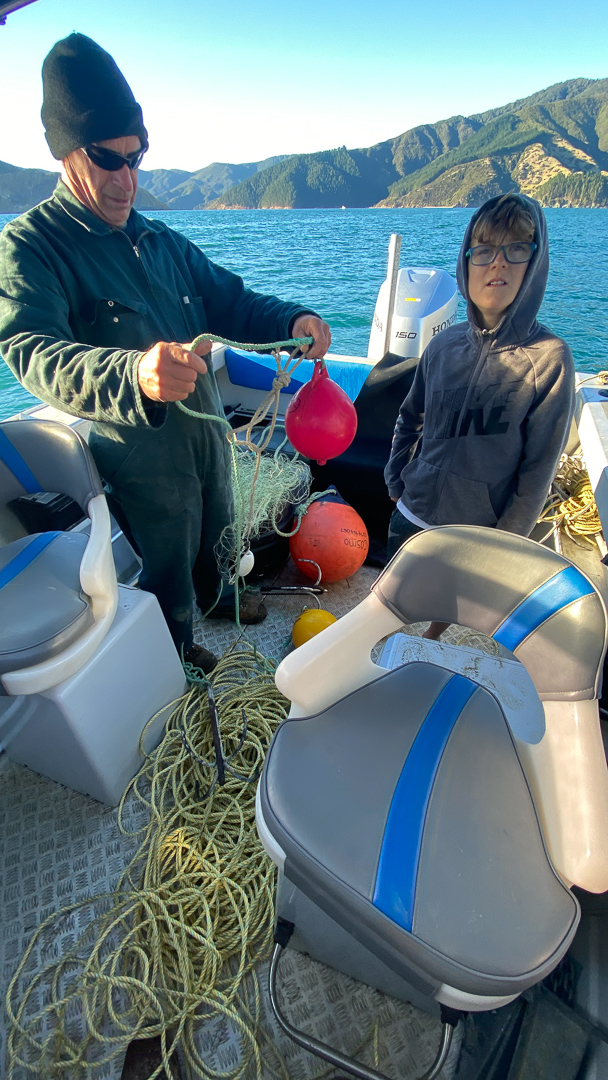 210. Le soir, a la collecte du filet, la prise est incroyable. Graeme s'attendait a 1, voire 2 prises maximum ... mais on remonte 13 mokis (on relache ceux qui vivent encore), des requins, un blue cod, etc....