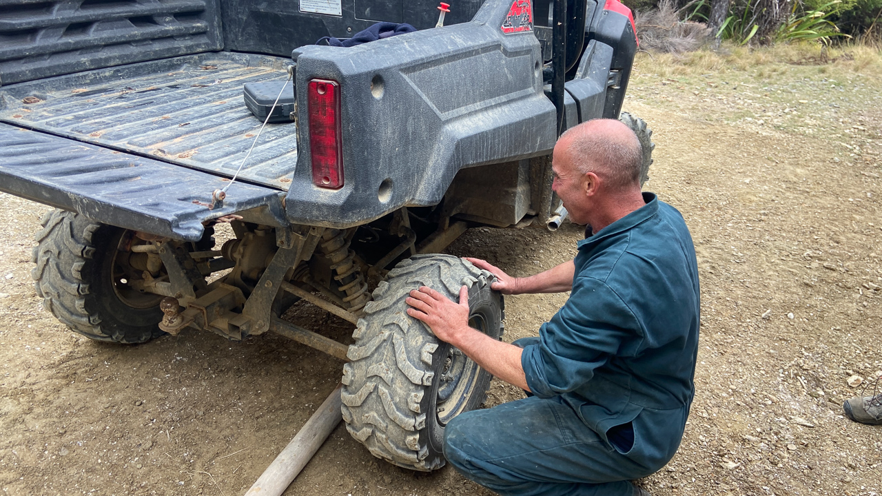 215. Graeme est aussi venu avec des nouveaux freins pour le quad, dont on sentait bien qu'ils etaient fatigues. Il fait le changement, et je prends des notes!