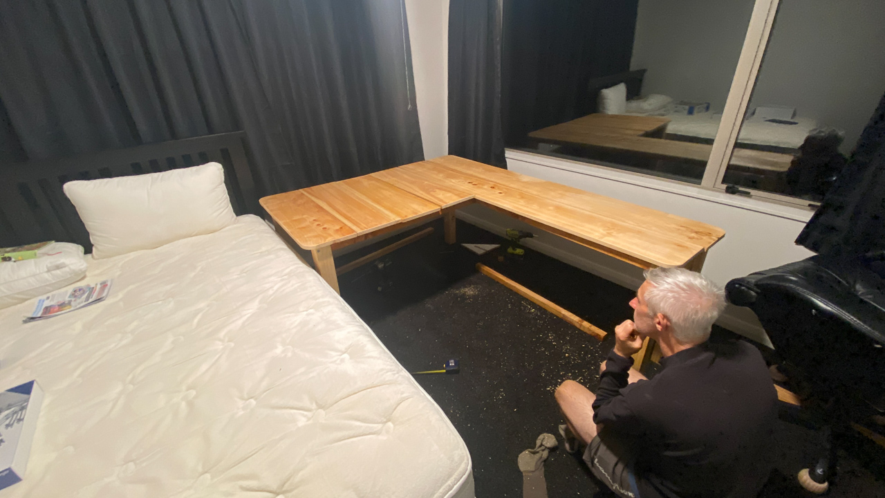 222. Le bureau que je tente de construire. Ca nous evitera de devoir bosser sur la table de la salle a manger.