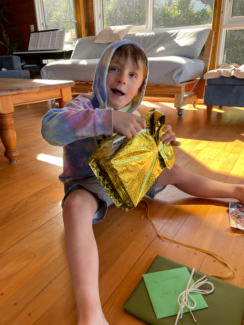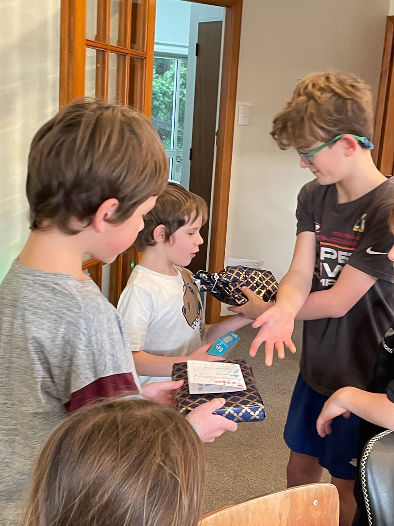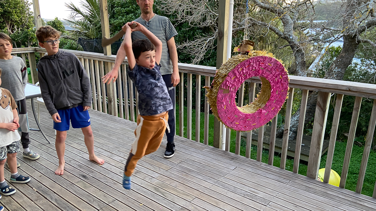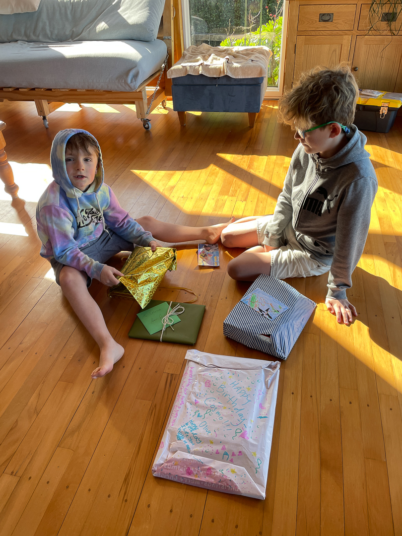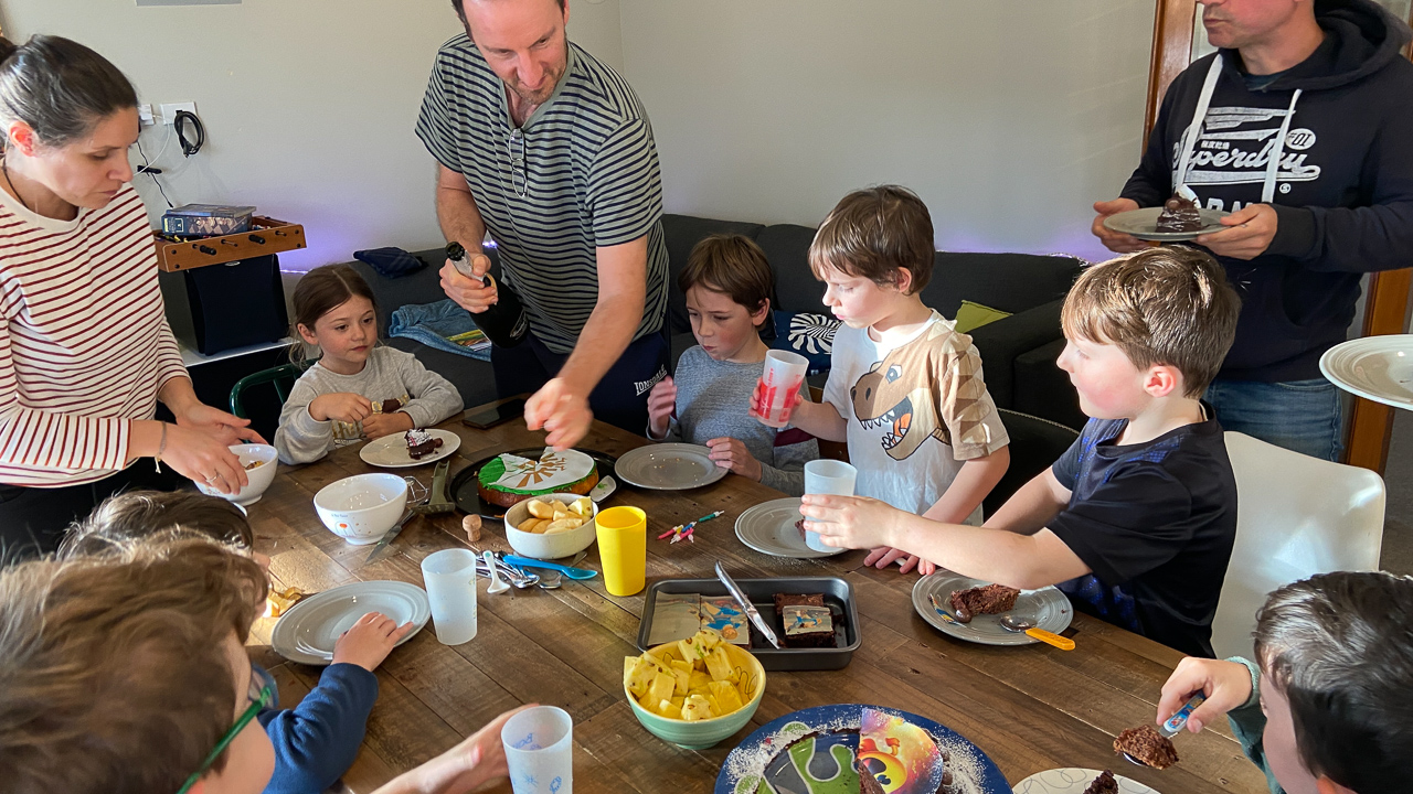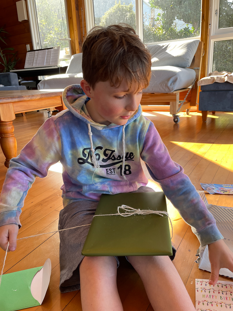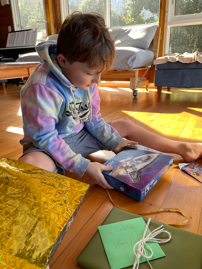 4. Pour Cosmo, c'est le debut des festivites: il est attache a avoir comme son frere qui avait eu une fete avec ses ami.e.s, ses cousin.e.s et sa famille!