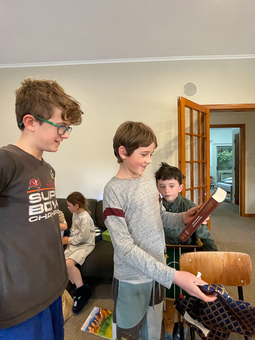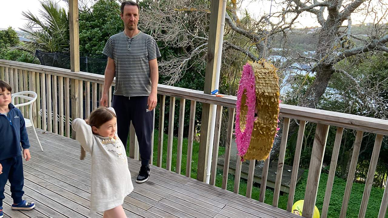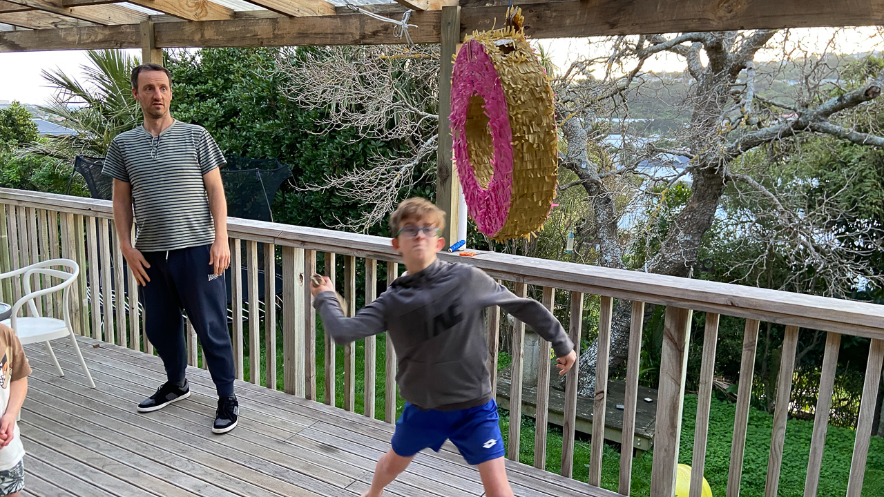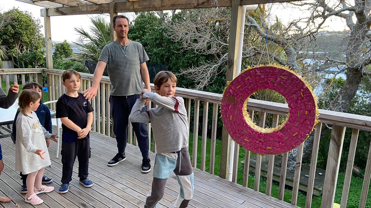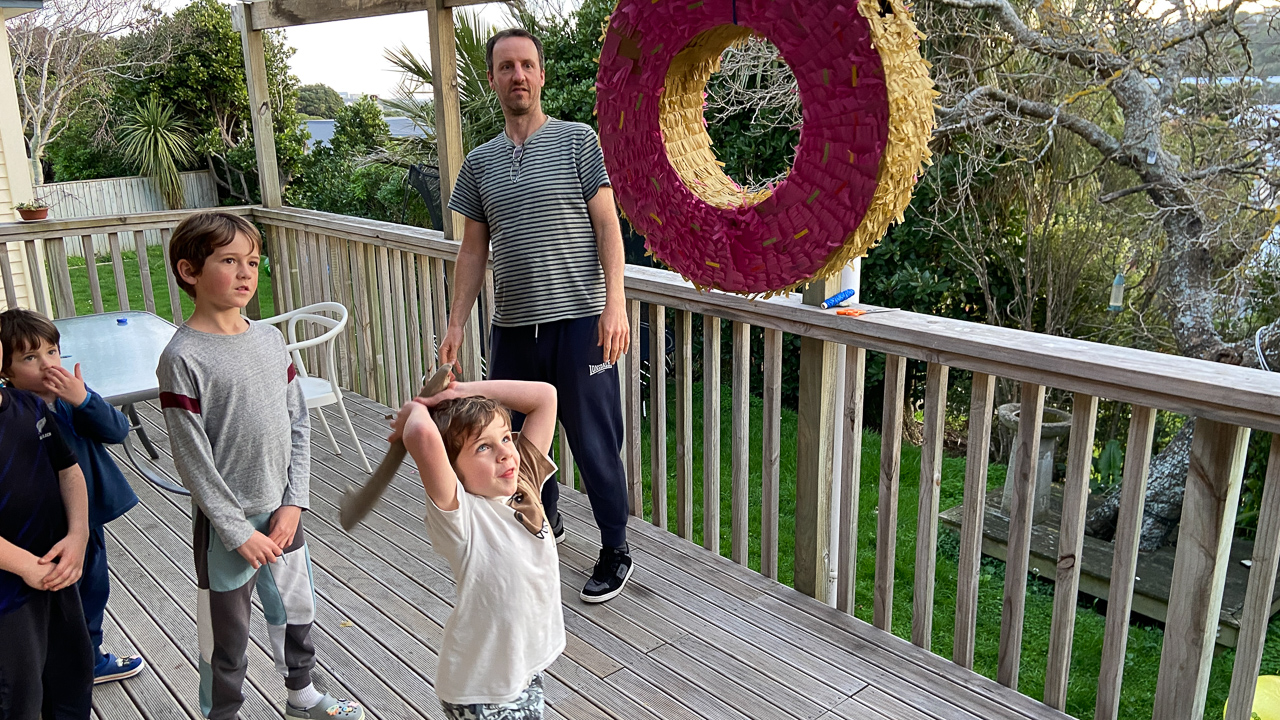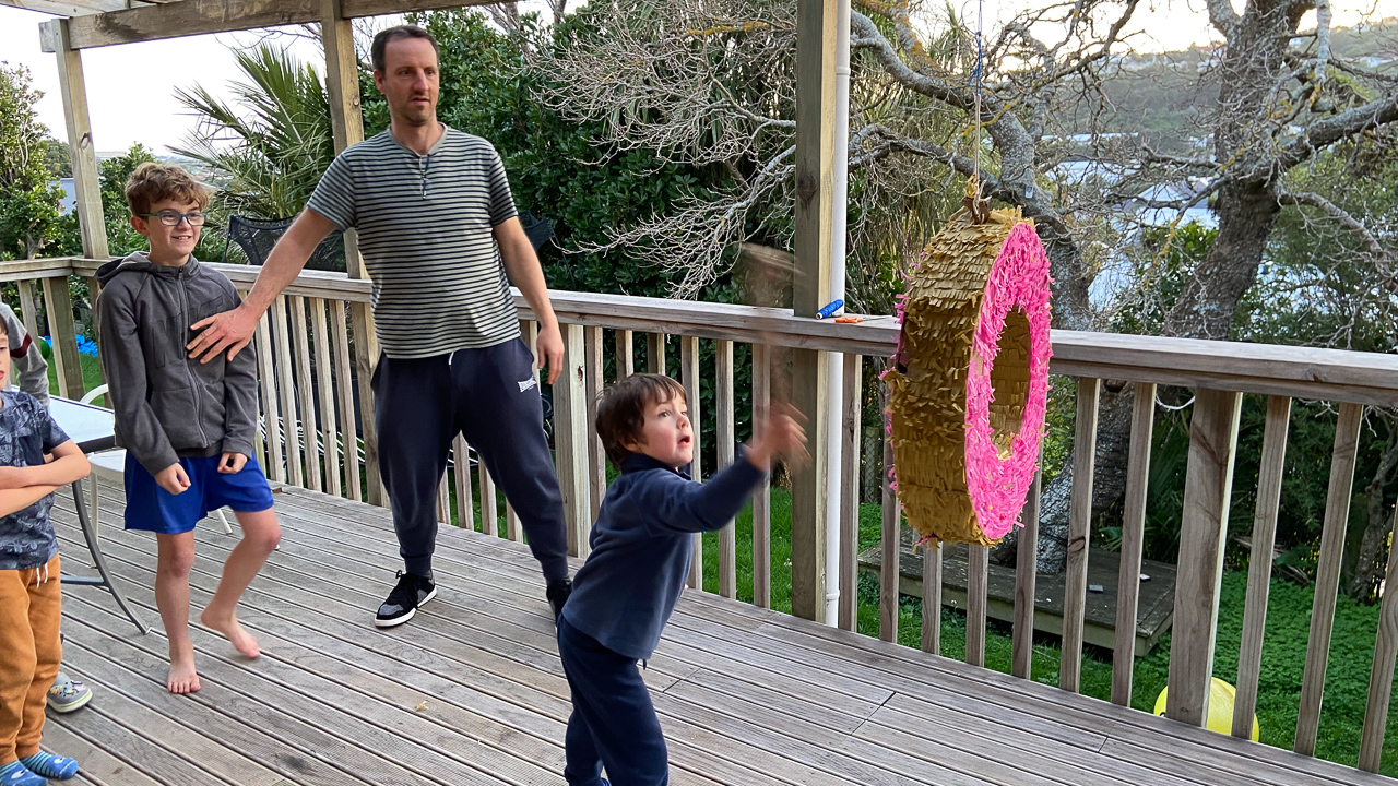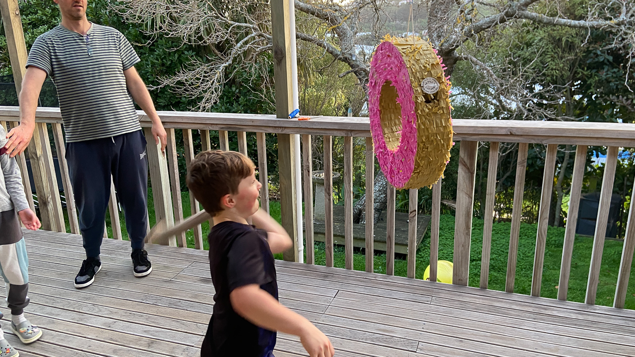 4. Pour Cosmo, c'est le debut des festivites: il est attache a avoir comme son frere qui avait eu une fete avec ses ami.e.s, ses cousin.e.s et sa famille!