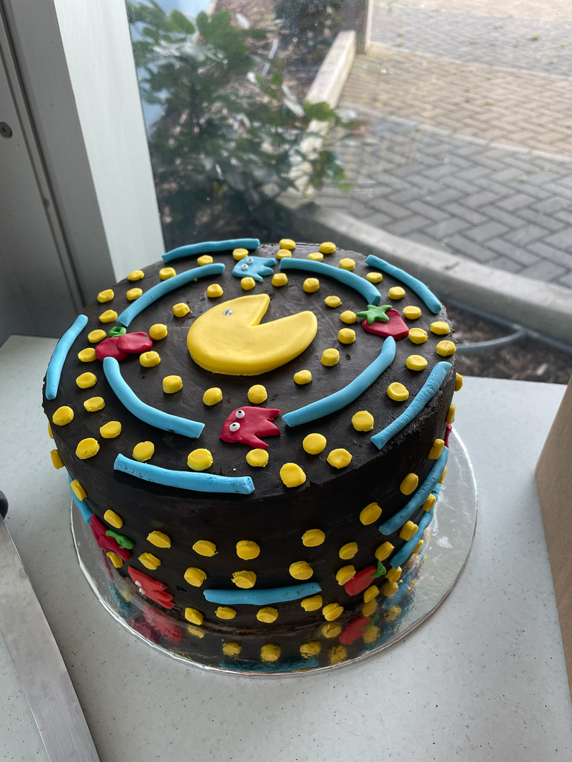 25. ... et le gateau, au theme de l'annee: Pacman!