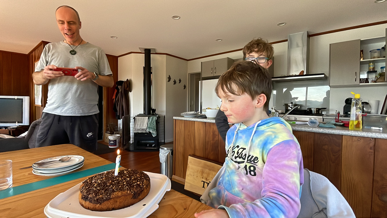 53. Enfin, il y a l'anniversaire "famille", qui se passe, hasard du calendrier, a d'Urville, comme pour Adan au mois d'Avril. Ca commence par un chocolat chaud au lit!