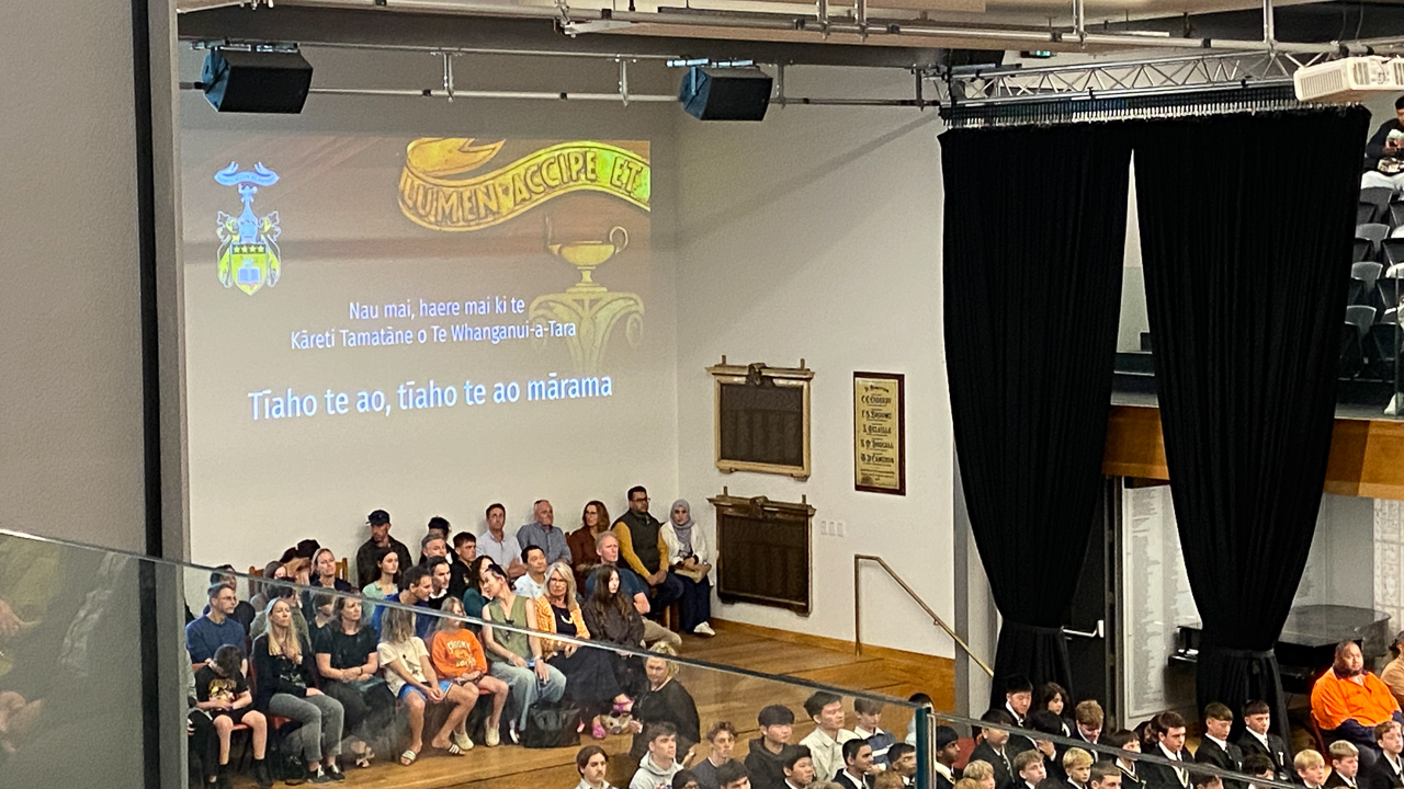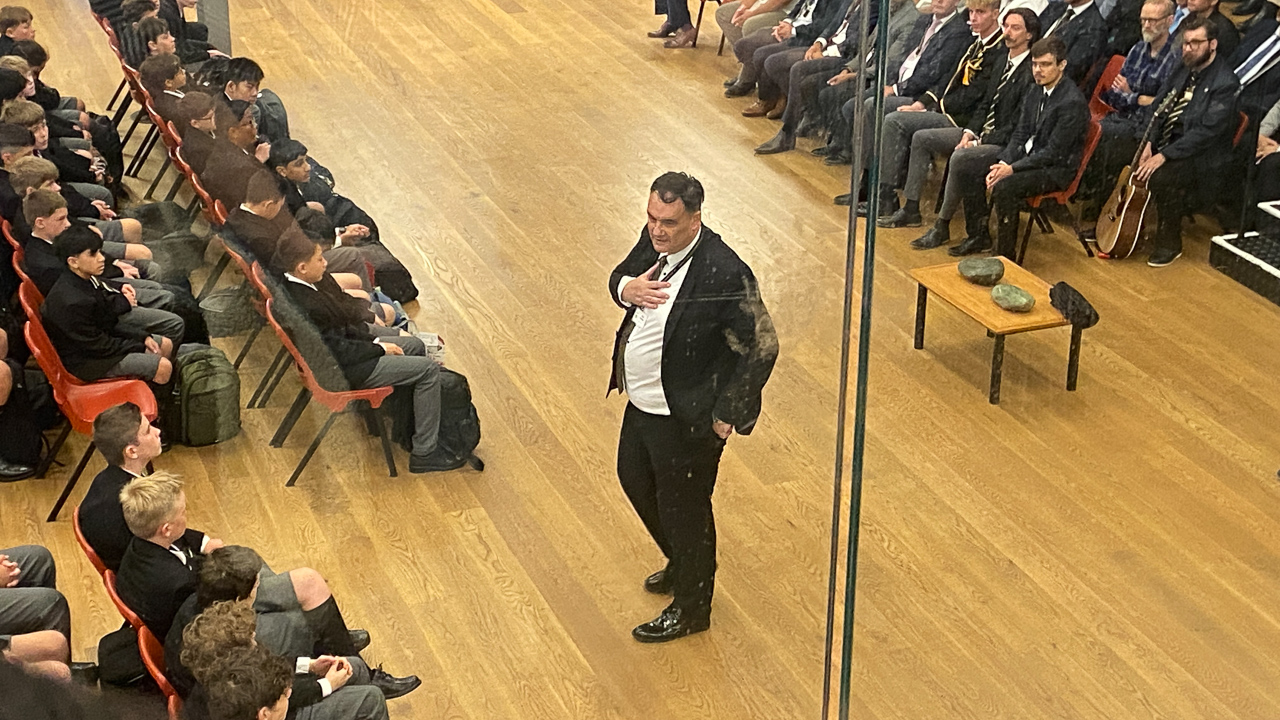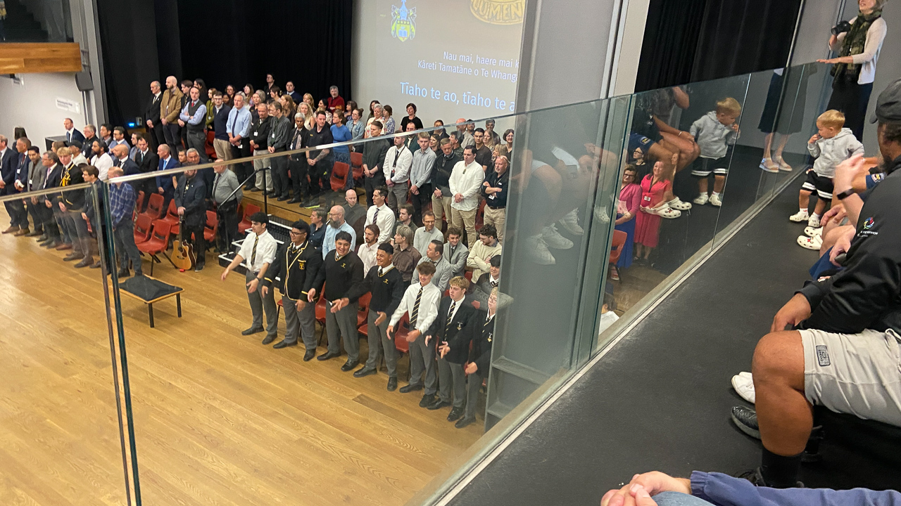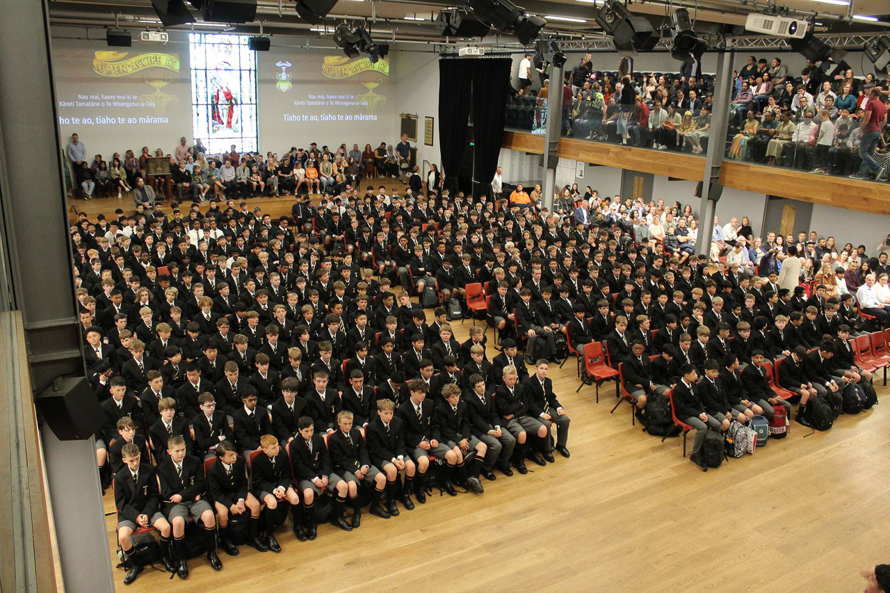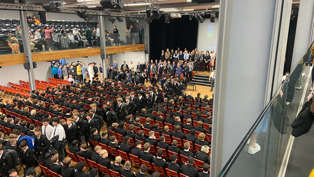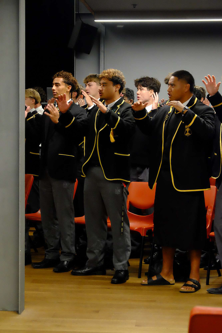 16. Des eleves plus ages chantent un haka perpetuel a mesure que la salle se remplit.