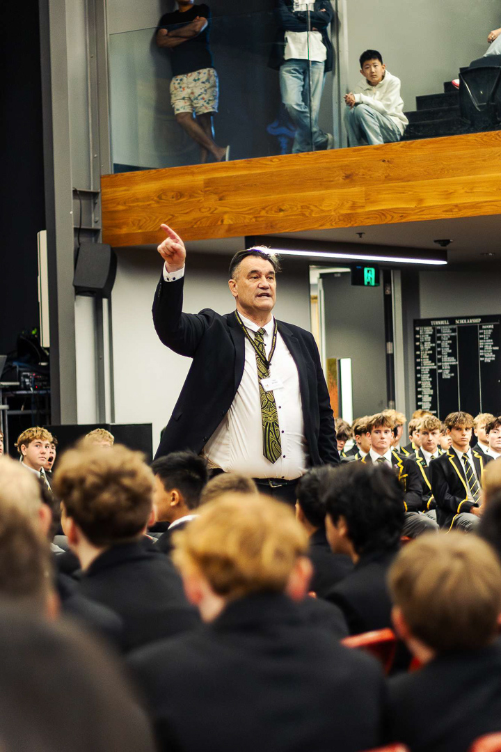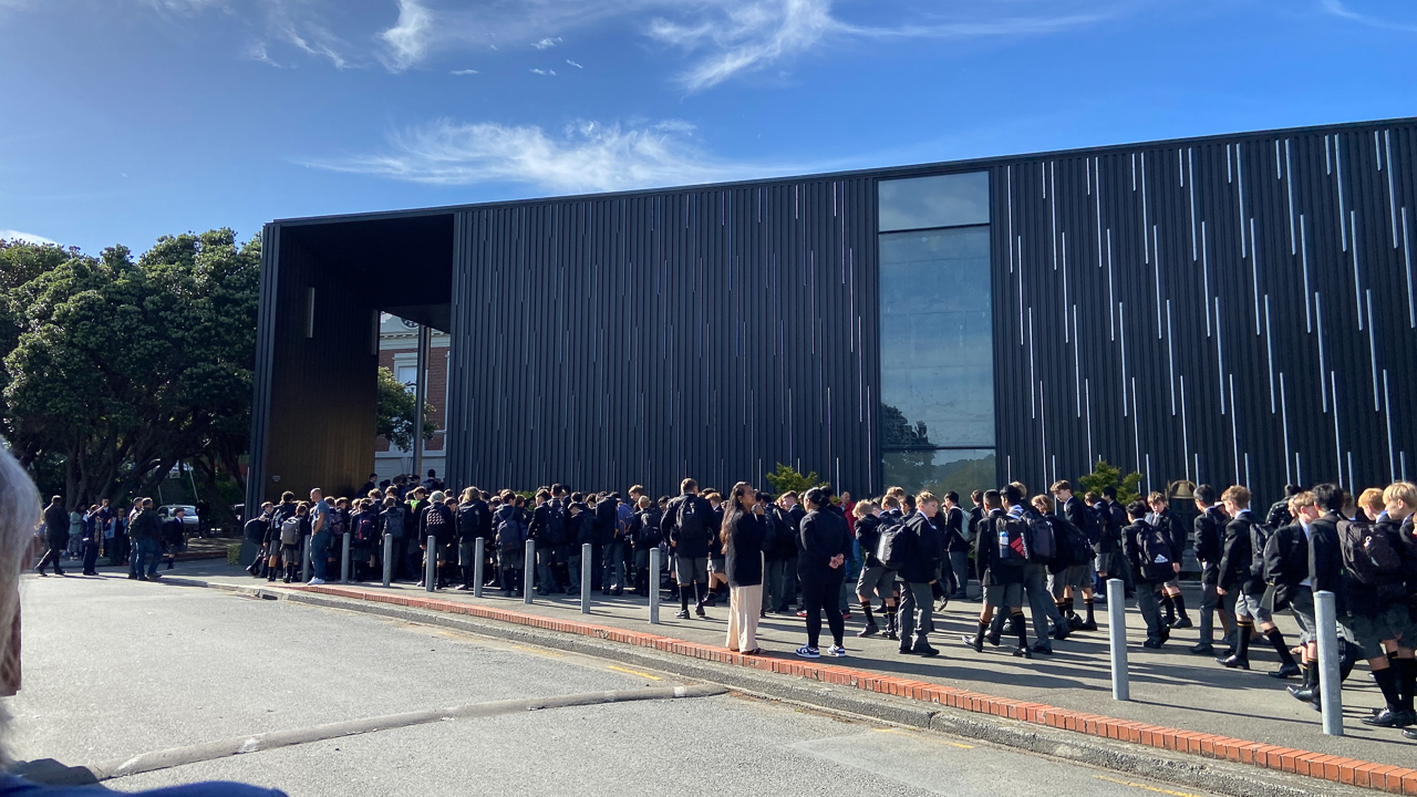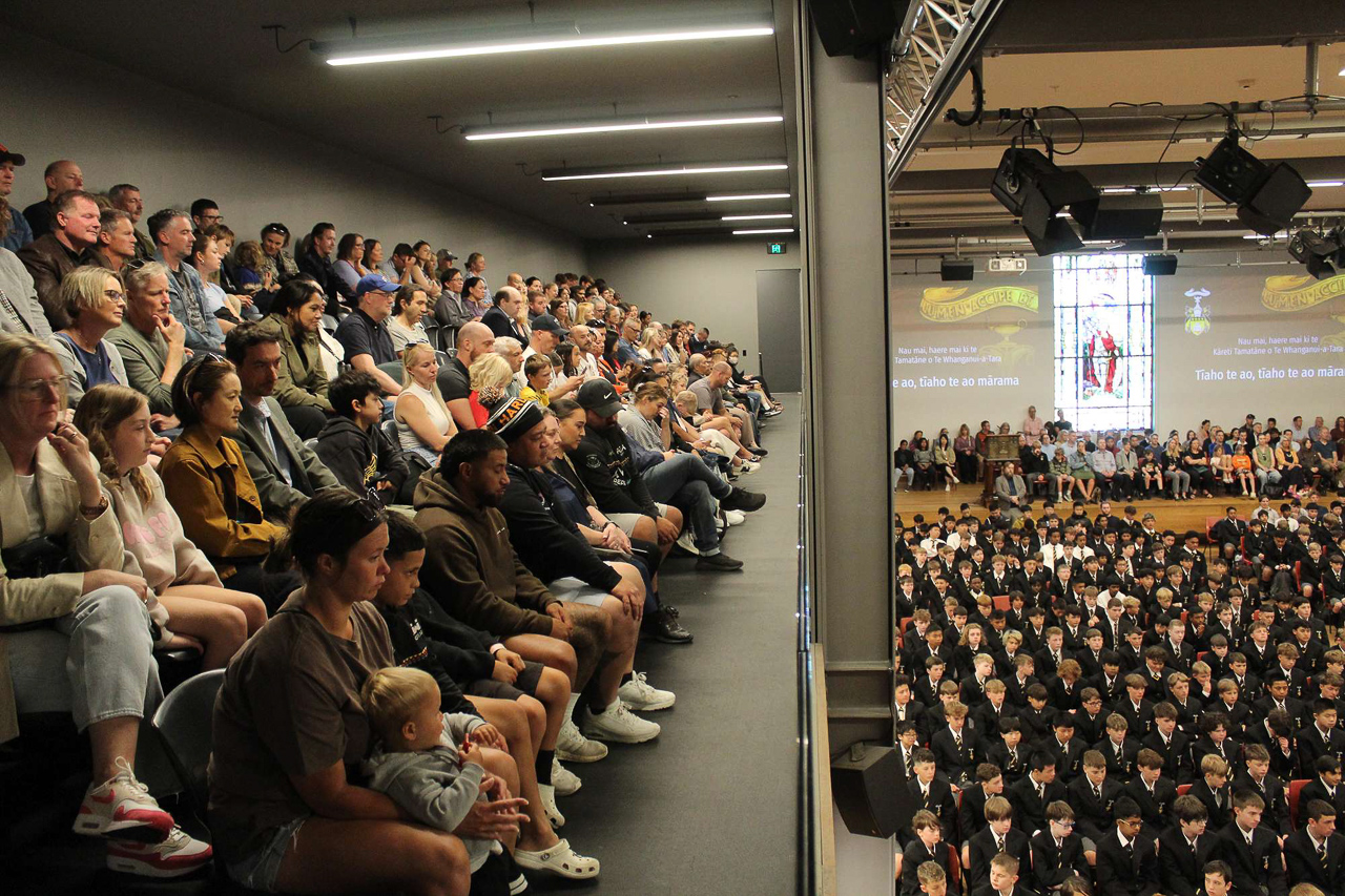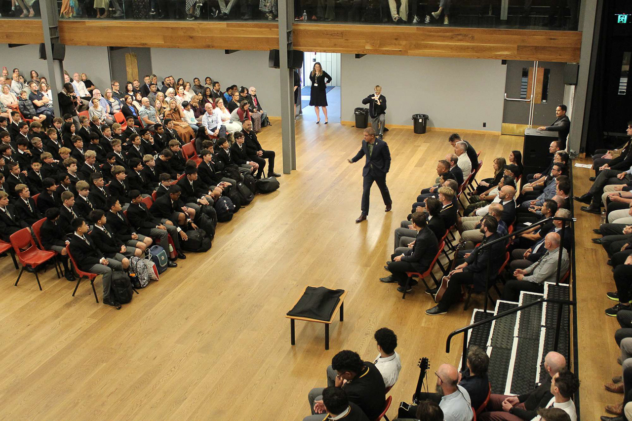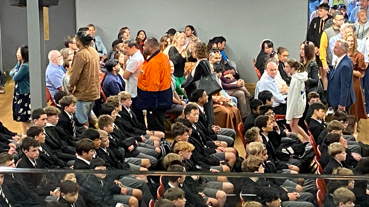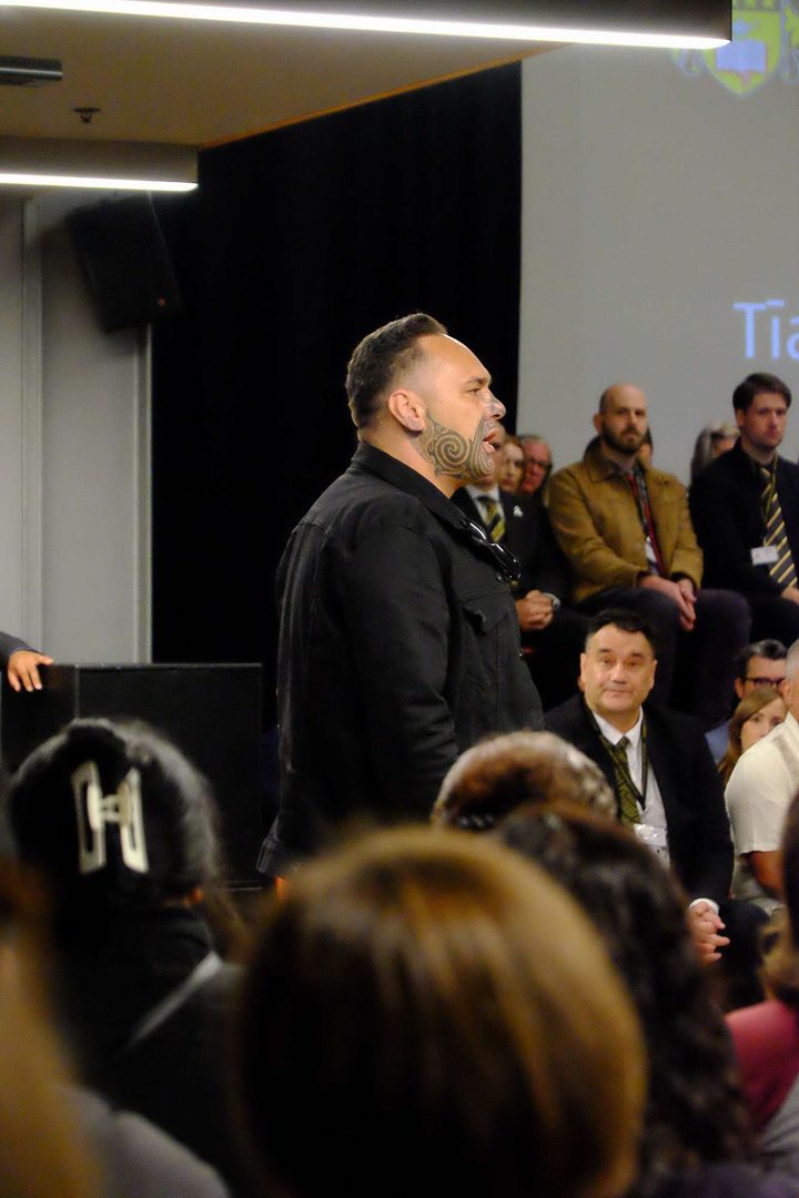 16. Des eleves plus ages chantent un haka perpetuel a mesure que la salle se remplit.