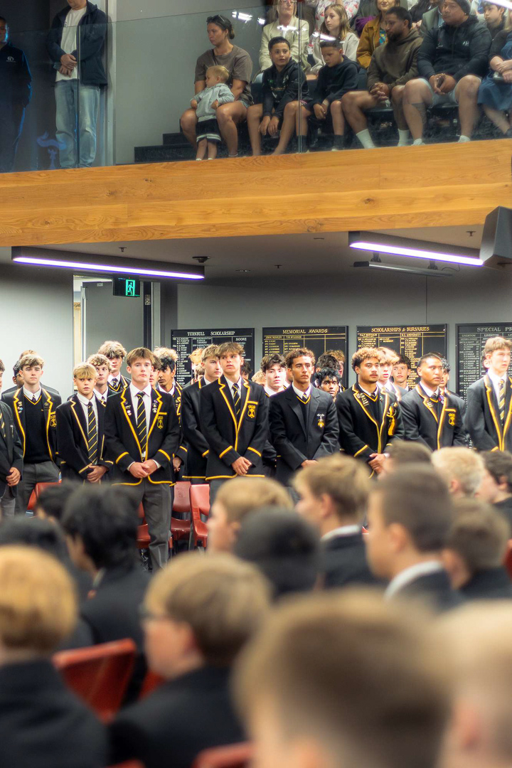 29. La ceremonie se poursuit, et je comprends qu'elle reprend le protocole de deux iwis (tribus) qui se rencontrent sur un marae: le premier discours etait celui d'accueil. C'est maintenant un maori, place parmi les Year 9, qui s'est leve pour recevoir l'invitation et demander "l'hospitalite" au nom des eleves fraichement arrives.