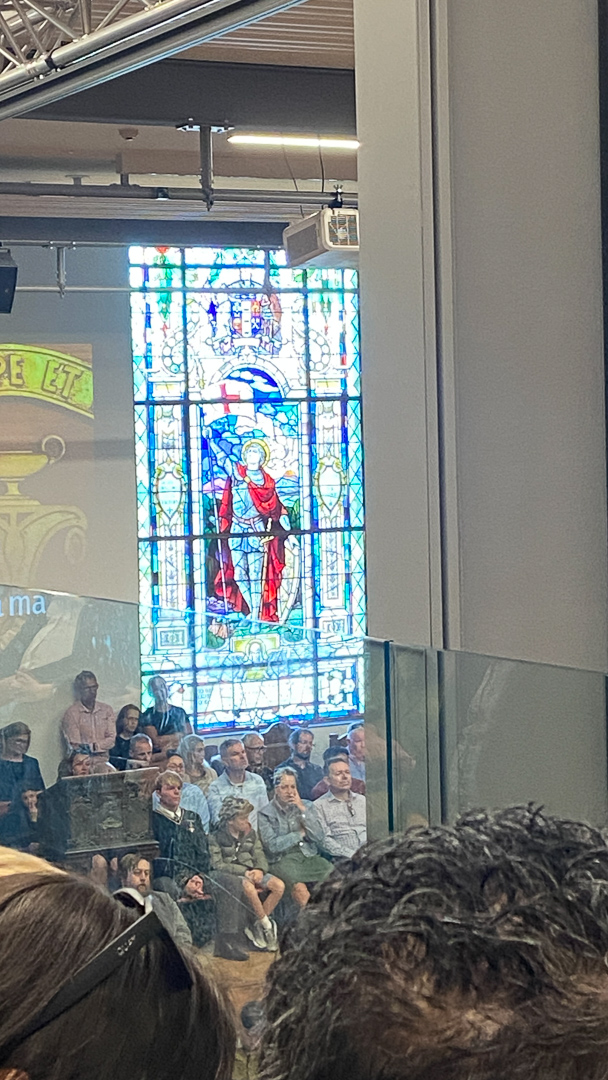 37. Au terme d ela ceremonie, les parents sont invites a rencontrer les profs autour d'un the/cafe. Victor nous y rejoint pour nous presenter ses collegues. Pendant ce temps, certainement a bout de leurs emotions, les enfants sont dispatches dans ce qui sera leur classe principale pour les 5 prochaines annees.