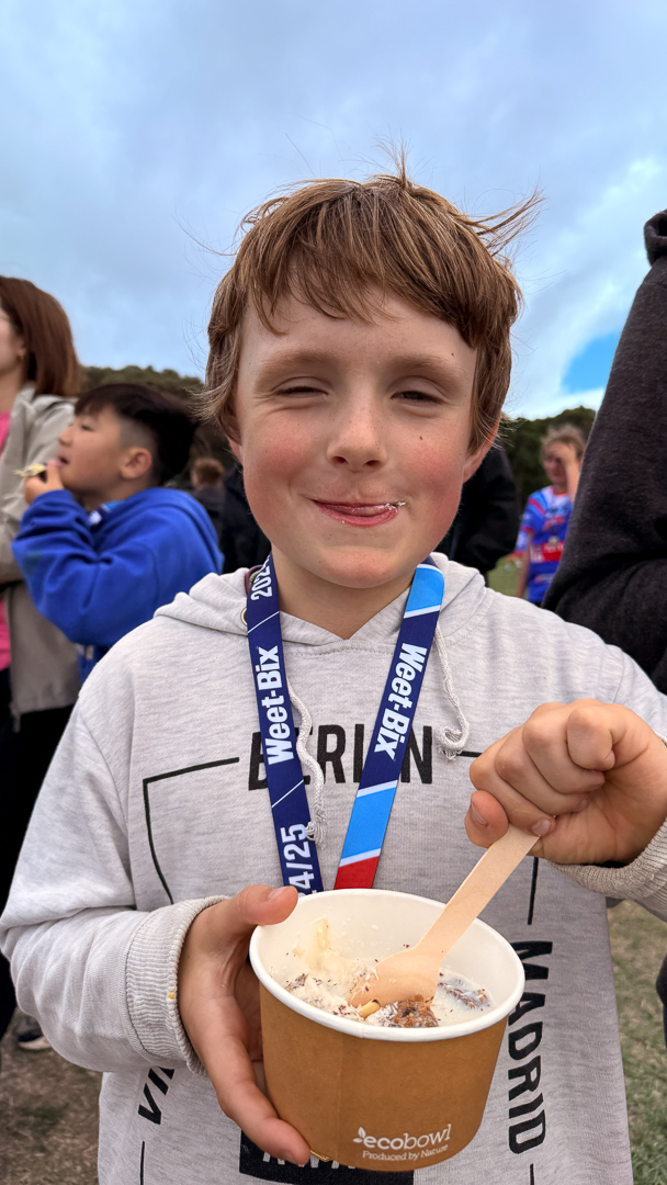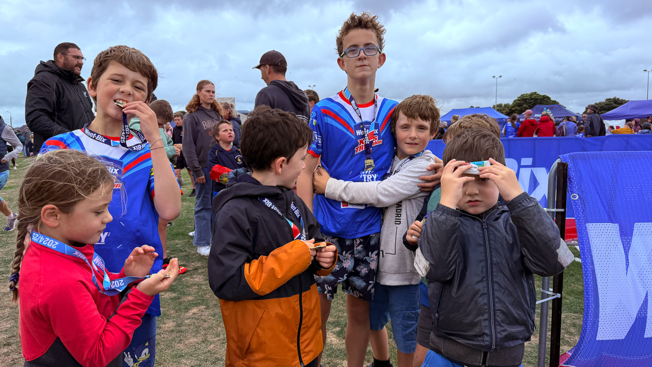 Le 16 mars 2025, malgré un ciel chargé, un vent particulièrement froid et une heure tres matinale, nos jeunes sportifs – les cousins Adan, Augustin, Gabriel, Cosmo, Leonard, Louise et Guillaume – se sont élancés avec enthousiasme dans l'aventure du triathlon Weetbix. Avec courage, détermination et une belle complicité, ils ont affronté les éléments et relevé chaque défi dans la bonne humeur, faisant de cette journée une magnifique célébration du sport en famille. Voici en images les meilleurs moments de cette course mémorable !