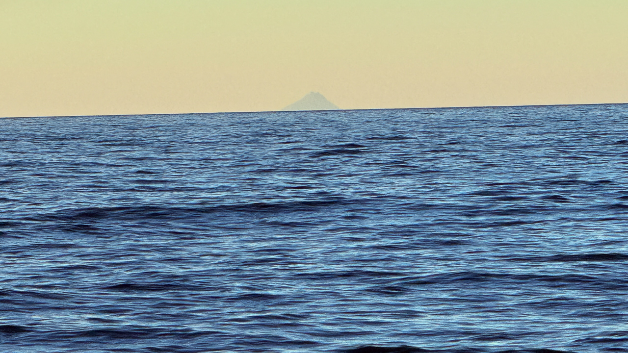165. De retour a la maison, tout le monde rentre, sauf moi: je veux quand meme faire mon plongeon quotidien dans la mer. En redescendant, j'apercois Fin Rock, au loin.