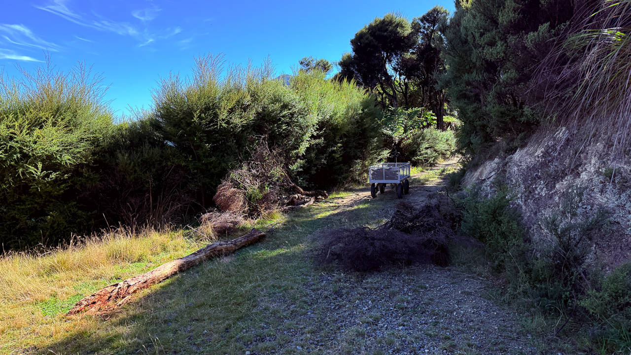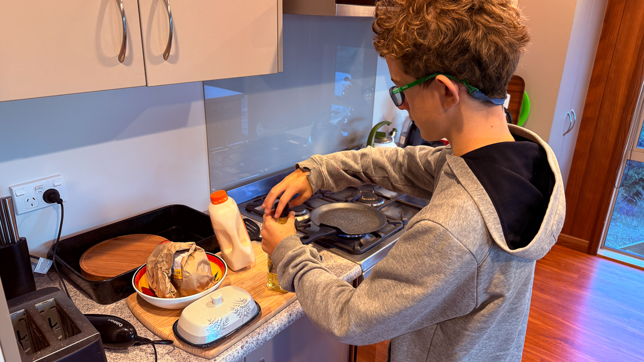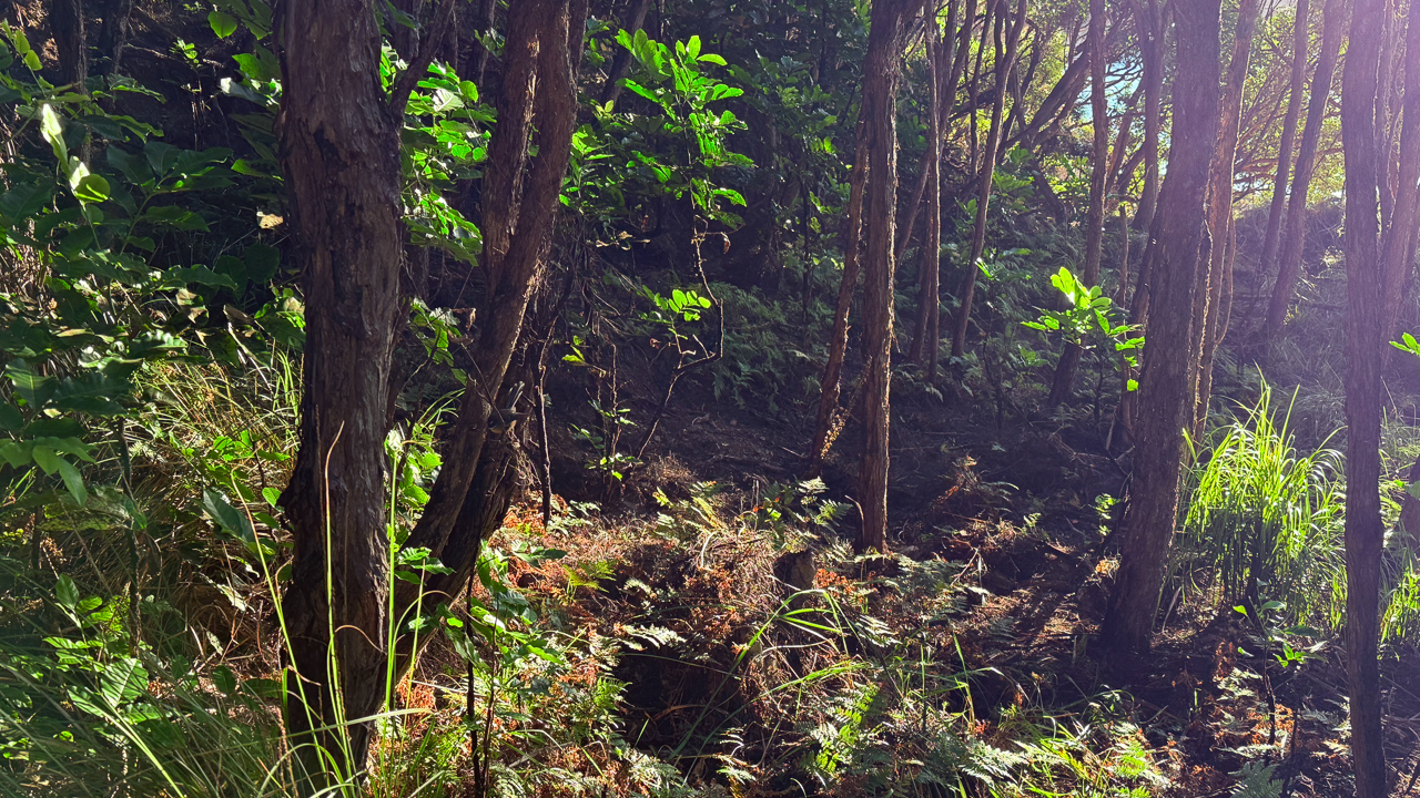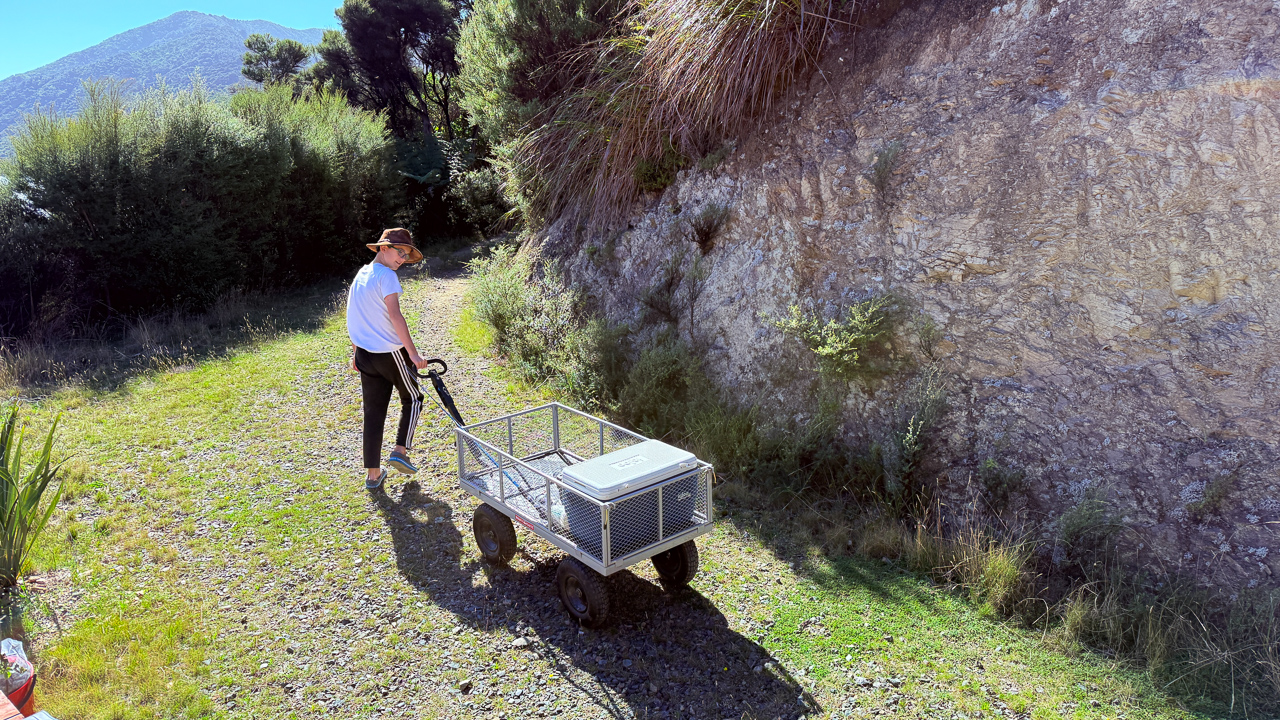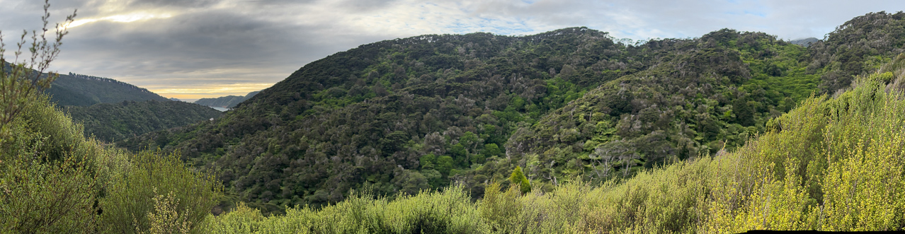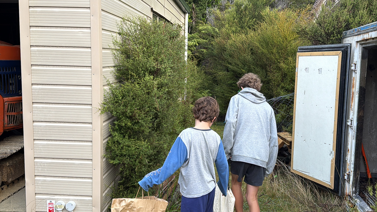 168. Aujourd'hui, nous avons ete invites par Gil et Guy pour faire une marche sur leur terrain. Ils ont pas mal de pistes et ca devrait nous permettre de nous donner d'autres points de vue sur l'ile. On a besoin d'un pique-nique et ca tombe bien: Wellington College a demande a ses etudiants de cuisiner un menu pour leur famille! C'est donc Adan qui s'y colle!