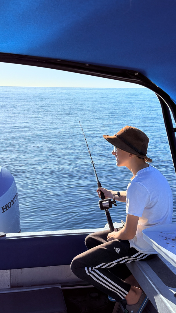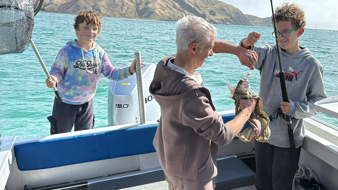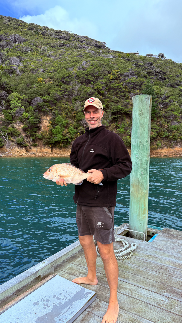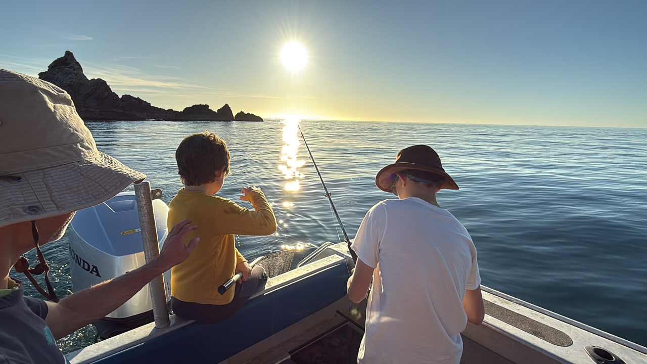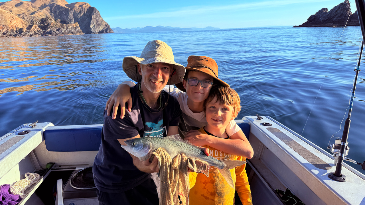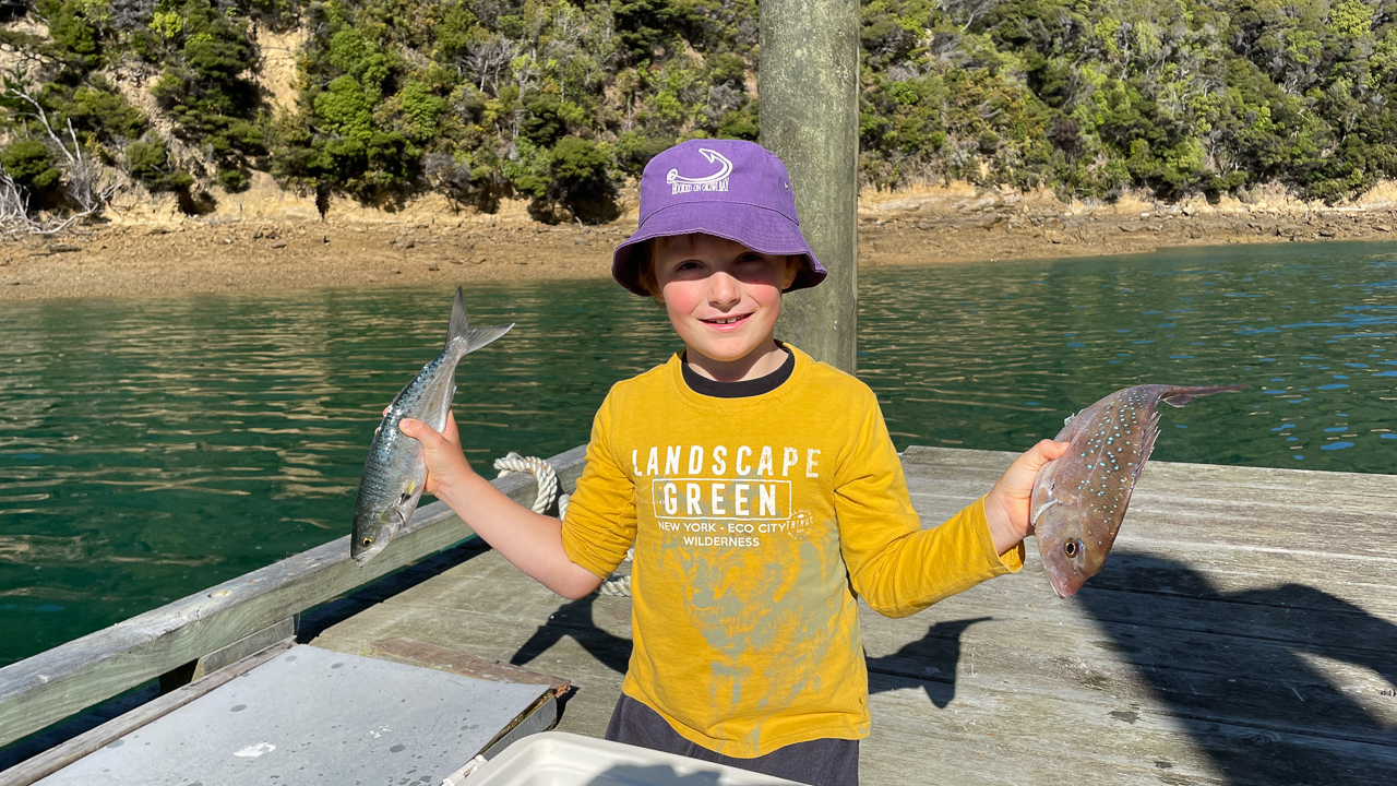 21. Plus tard, on part tous ensemble pecher a Fin Rock. On remonte 5 blue cods.