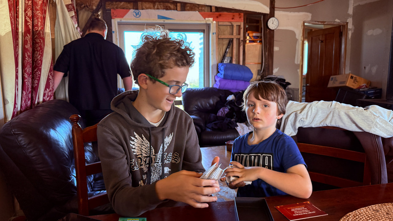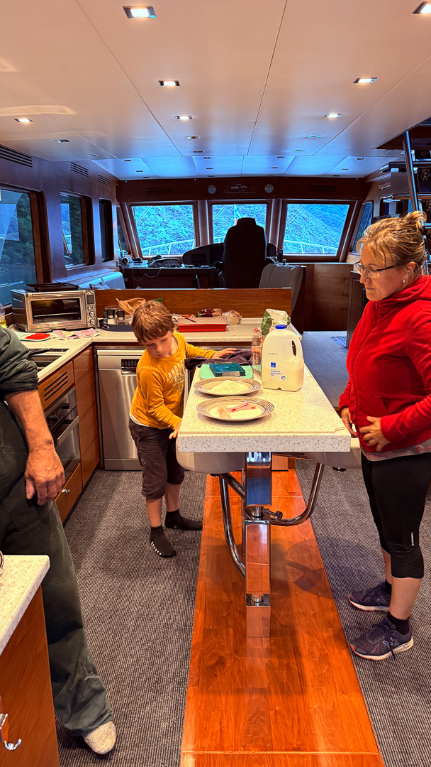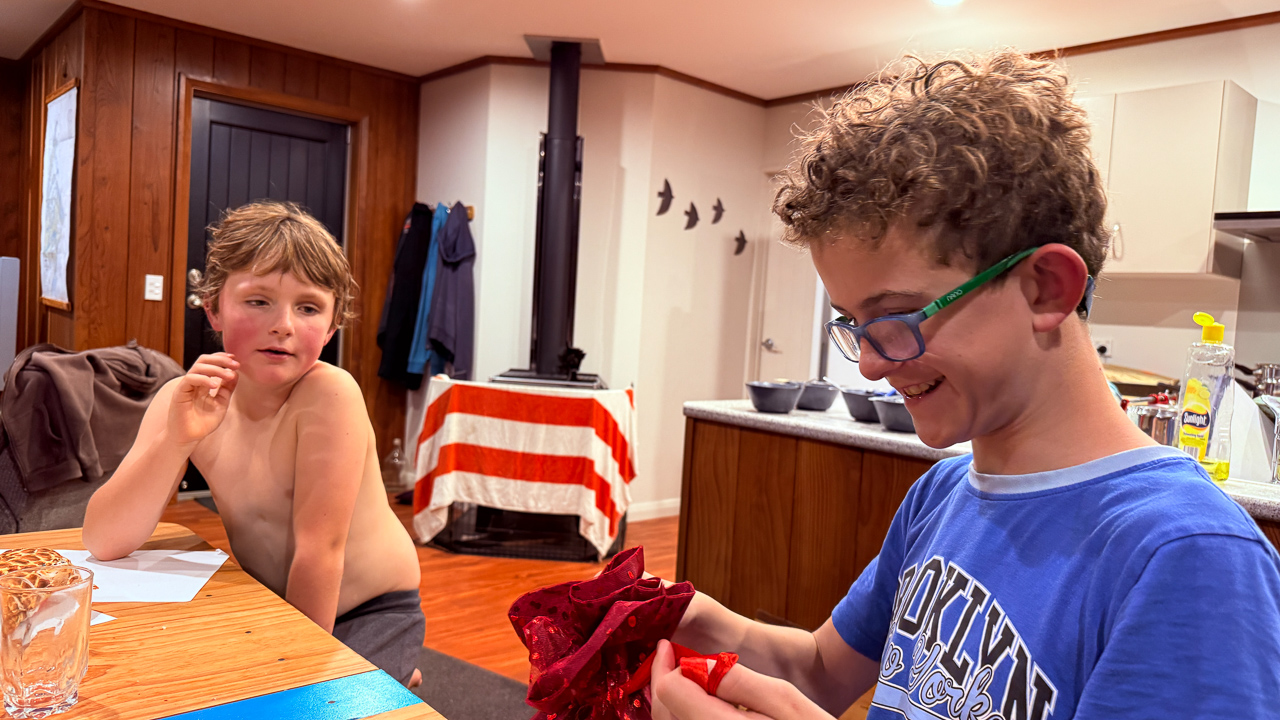 87. Avec la meteo qui se degrade, on honore une promesse faite aux enfants: les crepes avec la cheminee et un film! Autant dire qu'ils attendaient ca avec impatience!