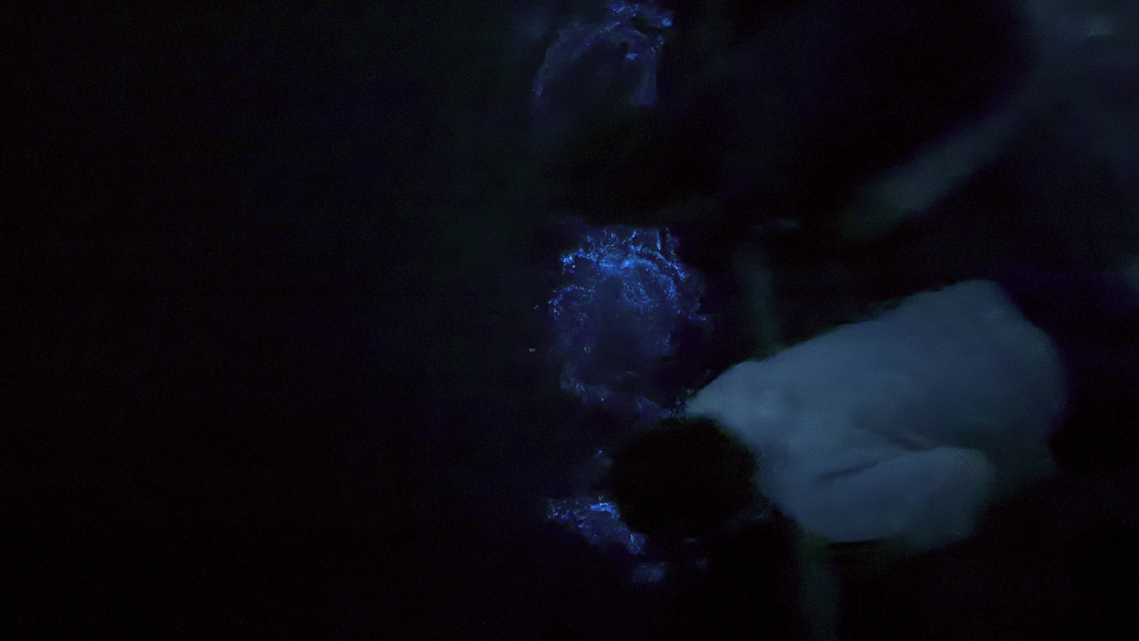 62. Les enfants decouvrent les planctons bioluminescents et sont ebahis par la beaute des effets sur l'eau.