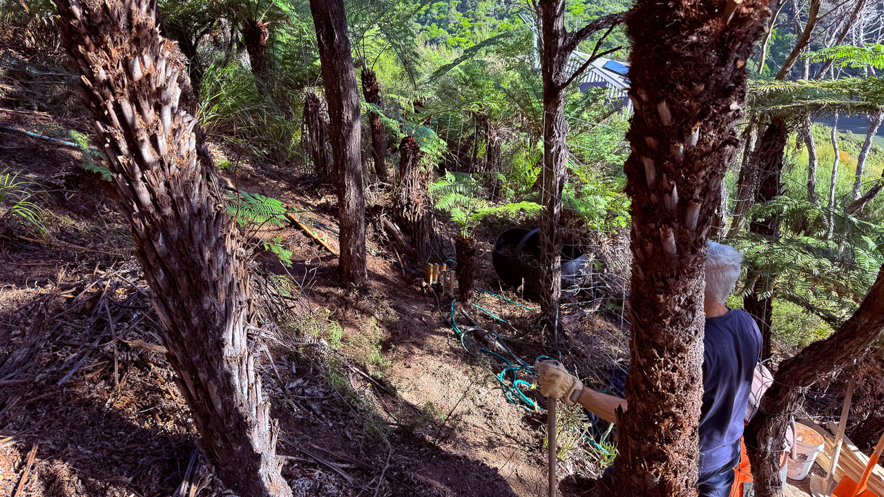 66. ... et on amenage un peu, notamment en construisant un petit sentier. Les enfants aident.